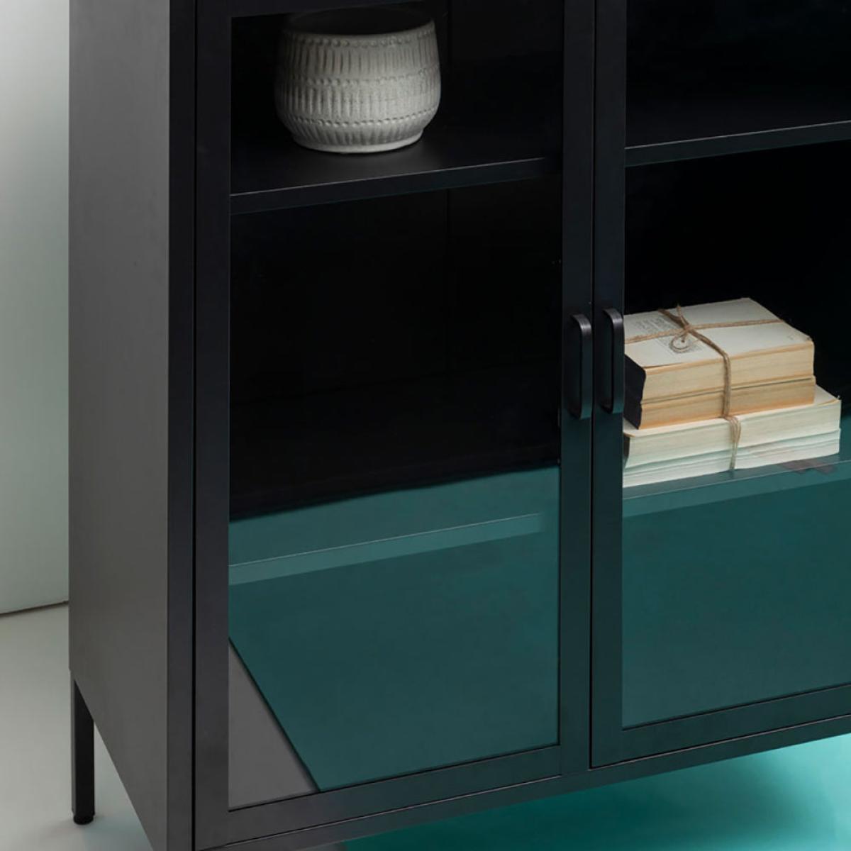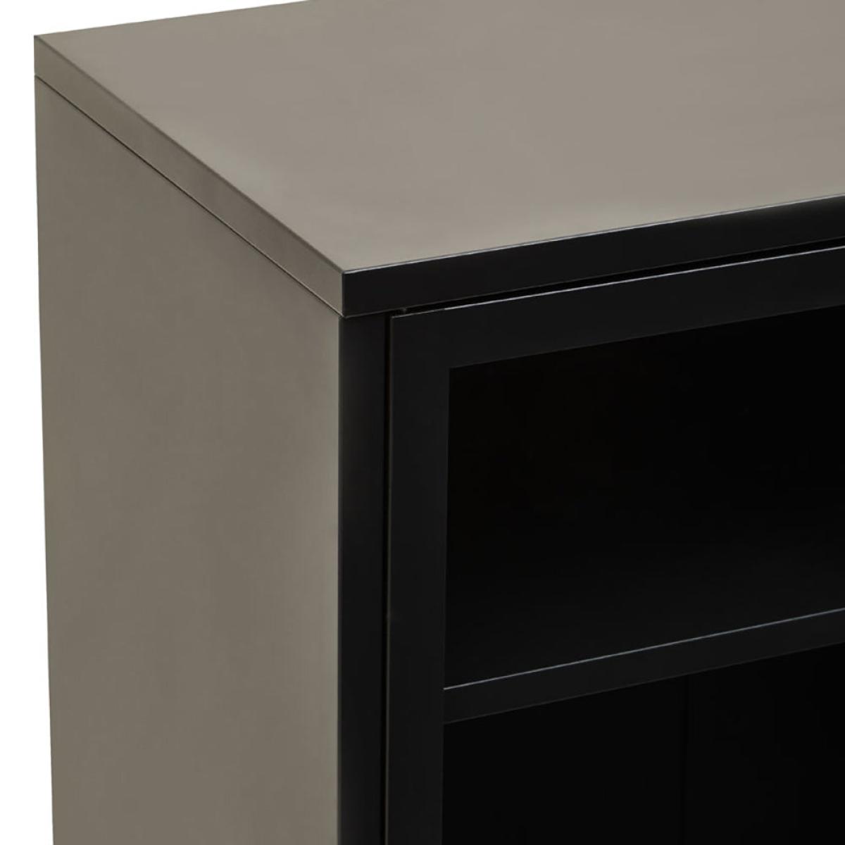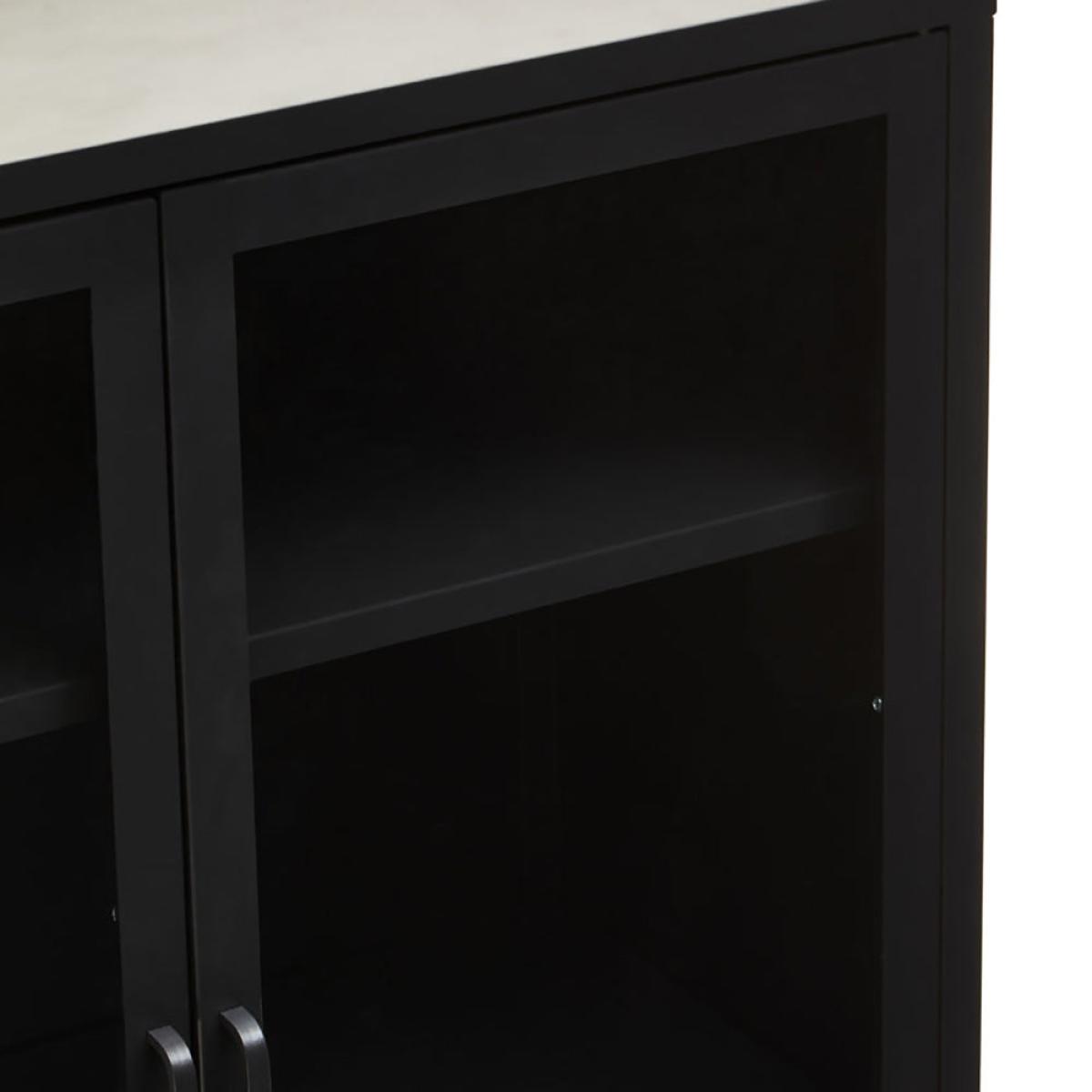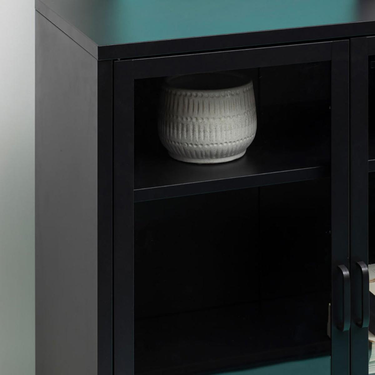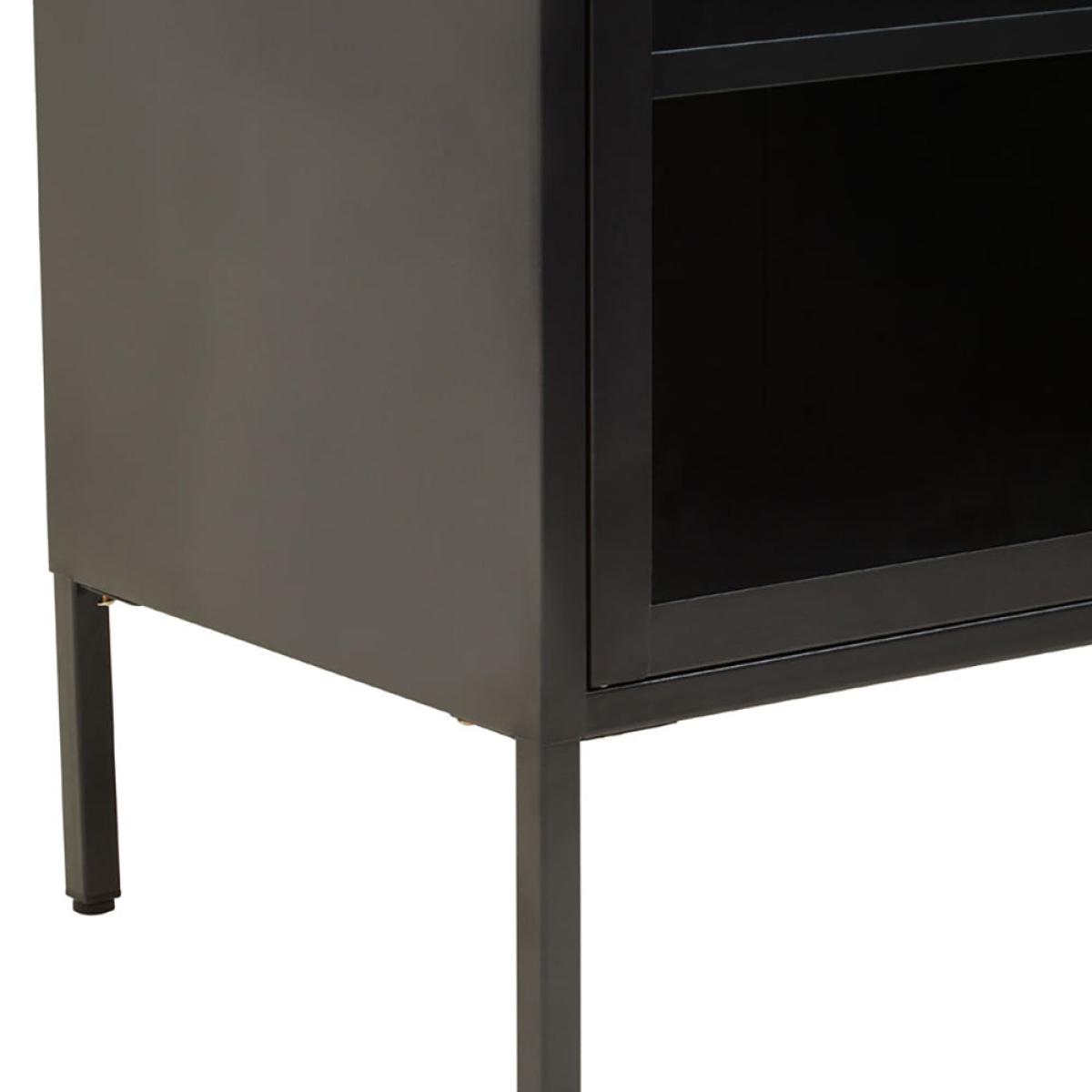 The Ariella Two Door Cabinet in black is a sleek and stylish choice from Olivia's Soft Industrial Collection. It measures 102cm tall, 80cm wide, and 40cm deep, so there's plenty of storage space within and lots of display space on top. It is also hugely versatile and can enhance anywhere from a luxe lounge to an industrial-inspired dining room. This cabinet boasts quality construction to ensure sturdiness and durability, but this certainly does not mean it compromises on style. It is an impactful choice that can add depth to neutral interior design schemes or create a great base for bold colour choices. Dimensions: H: 102 x W: 80 x D: 40 cm Materials: Metal Assembly Required: No Care Instructions:Wipe clean with a soft cloth