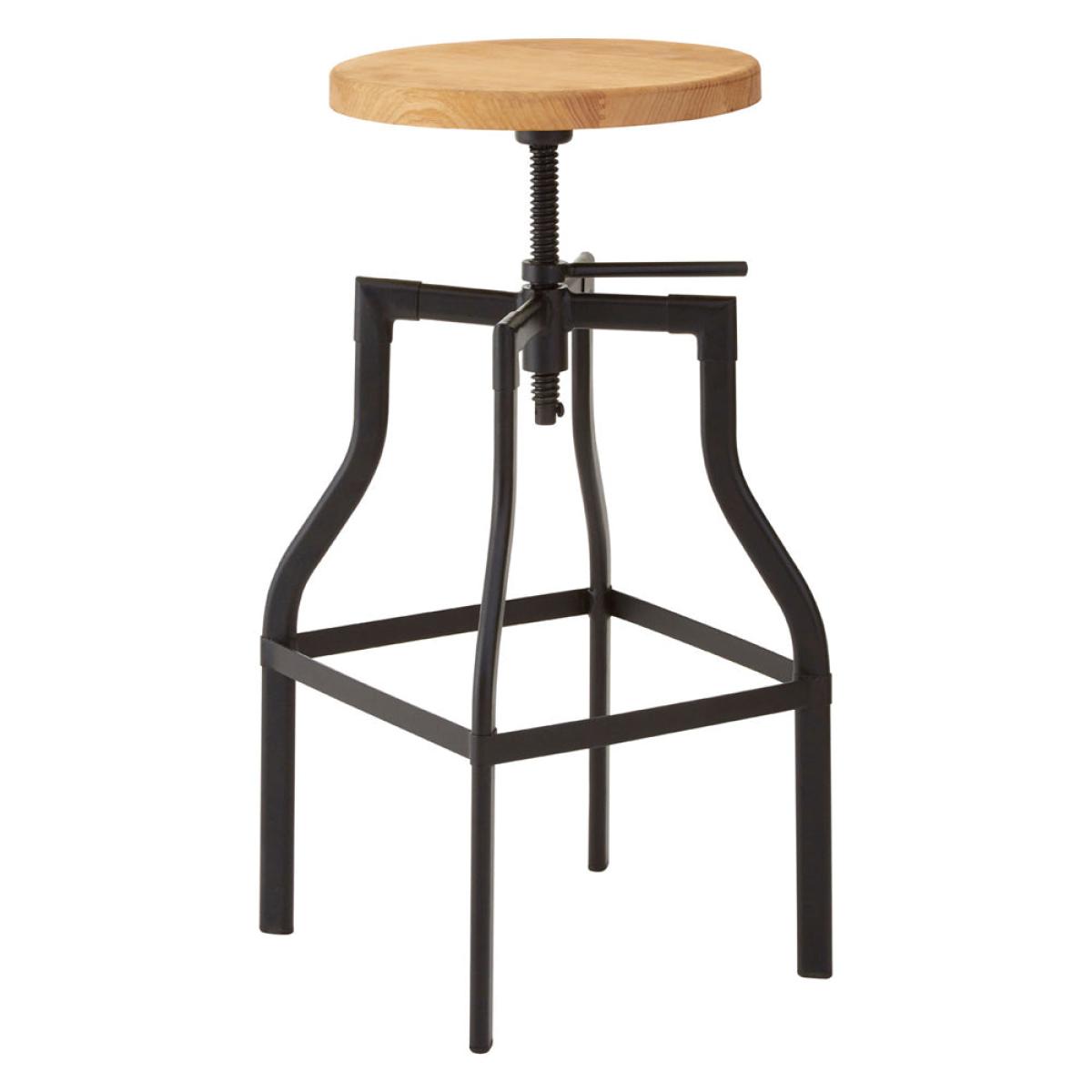Create an unusual and stylish look for your dining area with this stylish modern bar stool from Olivia’s. The bar stool has a great modern industrial look with square metal legs and a square wooden seat. To complete the industrial style the seat is height adjustable and has a large screw effect pole and a handle to adjust the height. The stool measures 76cm high, 35cm wide and 35cm deep. Stylish and practical, as you can use it as a high bar stool or lower it to suit your needs. Use around the breakfast bar or kitchen island for a stylish modern dining area. Dimensions: H: 76 x W: 35 x D: 35 cm Materials: Wood Assembly Required: No Care Instructions:Wipe clean with a soft cloth. Do not use abrasive cleaners Additional Information: Please note, this product composition contains natural wood, variations in colour may apply.
