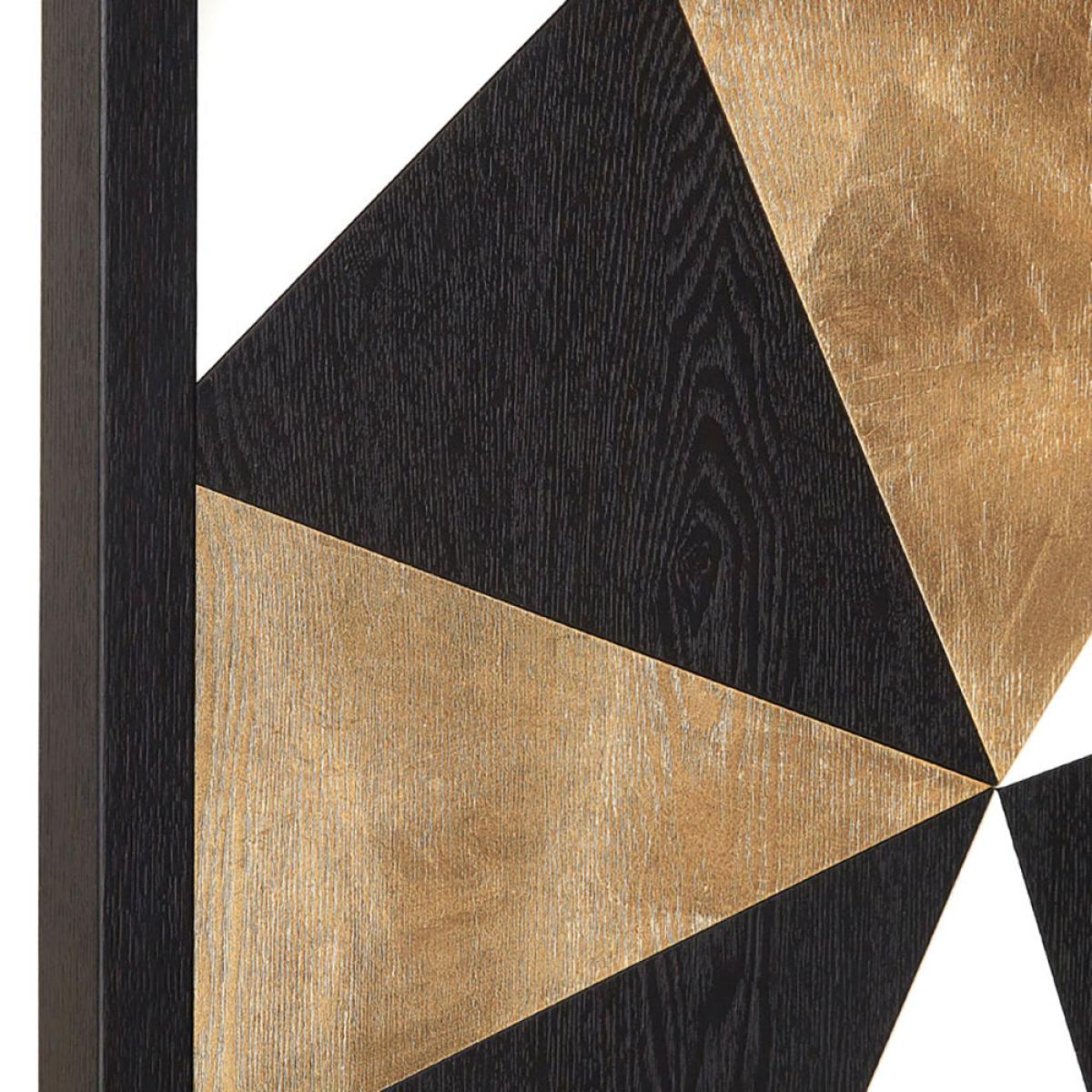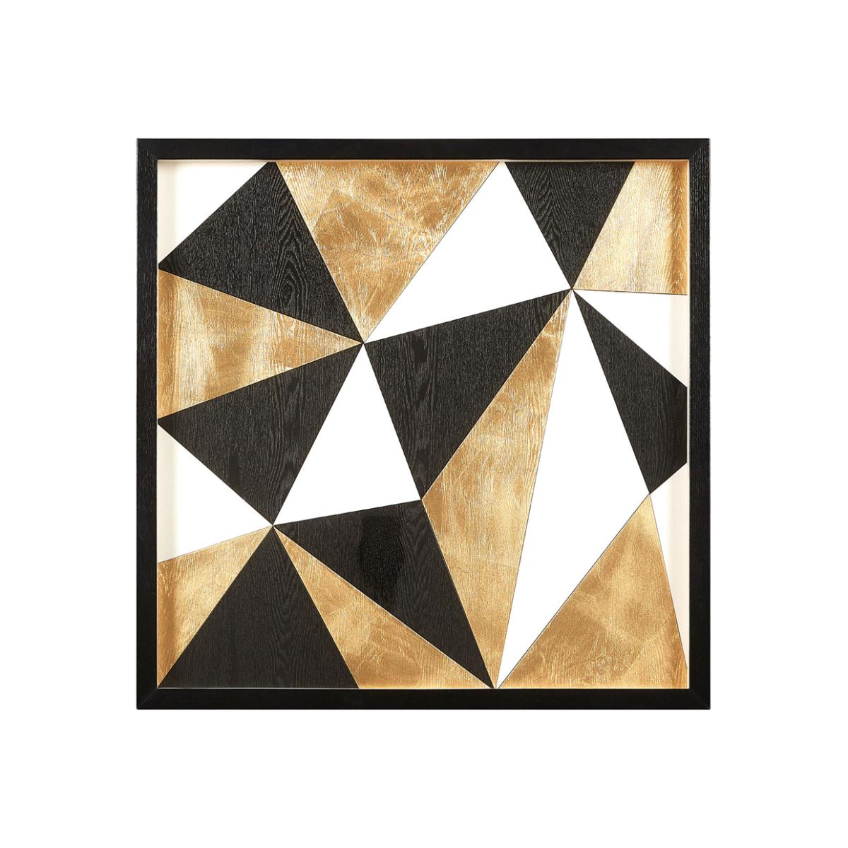 The Modello multi geo wall art is a beautiful piece from the soft industrial collection, perfectly suited to add interest to your décor. Made from the highest-quality natural pine and glass, this bold, modern and contemporary piece encompasses the on-trend shades of black, neutral and natural wood. Sporting a geometric triangular design, this piece is a style statement and is sure to add a talking point to any room. Measuring H63cm x W63cm x D4cm, this artwork is bold enough to add a stylish focal point to your home. Place above a sideboard or as a backdrop to a dining set. Dimensions: H: 63 x W: 63 x D: 4 cm Materials: Glass, Pine Wood Assembly Required: No Care Instructions: Clean the dust regularly. Additional Information: Avoid direct sunlight and humid environment. Please note, this product composition contains natural wood, variations in colour may apply.