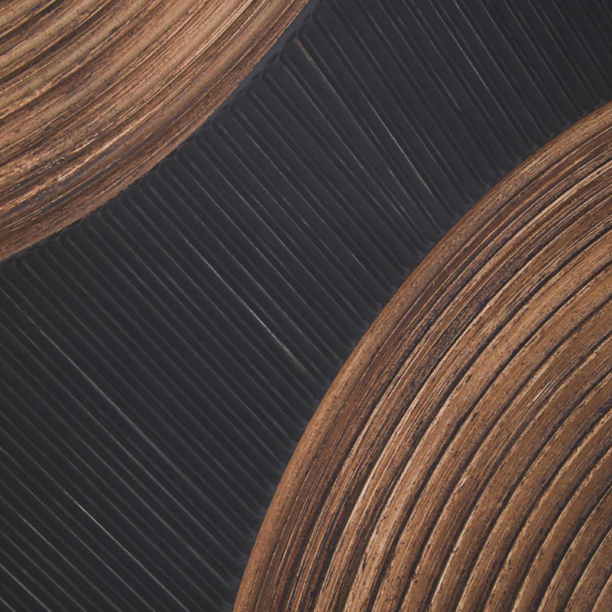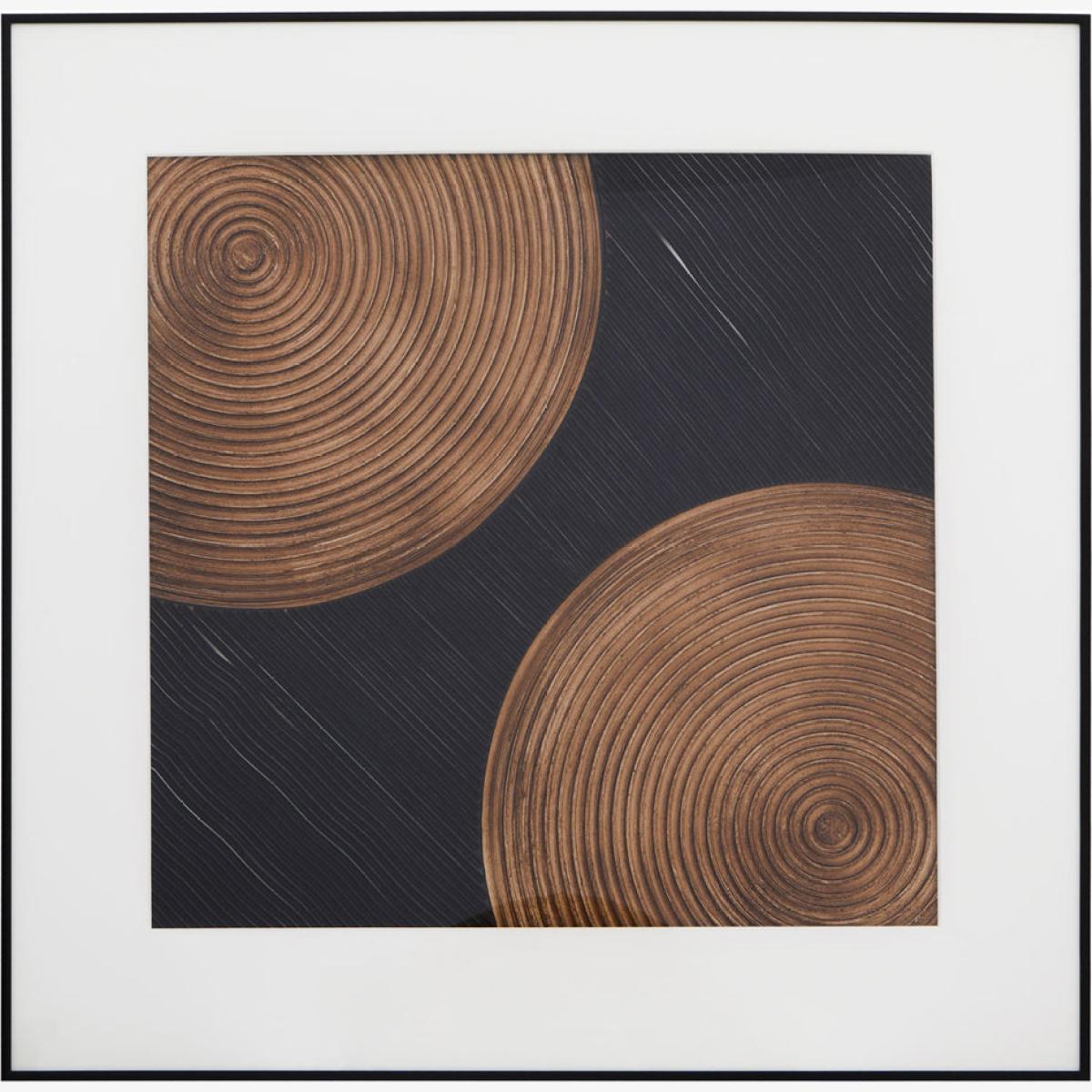 Part of the Olivia’s Soft Industrial collection, the Neavah wall art in black and brown delivers on both style and impact. Set inside a slim black 80cm square wall-hung frame, the eye is instantly drawn to the image at the centre of the frame which consists of two partial concentric circles, separated by a textured black surface which creates the impression of movement. The circles are antique bronze in appearance and deliver a depth of colour and texture. The piece consists of a range of textures and colours, created by the careful use of multiple materials including aluminium, glass and linen. Dimensions: H: 80 x W: 80 x D: 4 cm Materials: 70% MDF, 5% Linen, 5% Glass, 20% Aluminium Assembly Required: No Care Instructions: Clean with a soft cloth, do not use abrasive cleaners