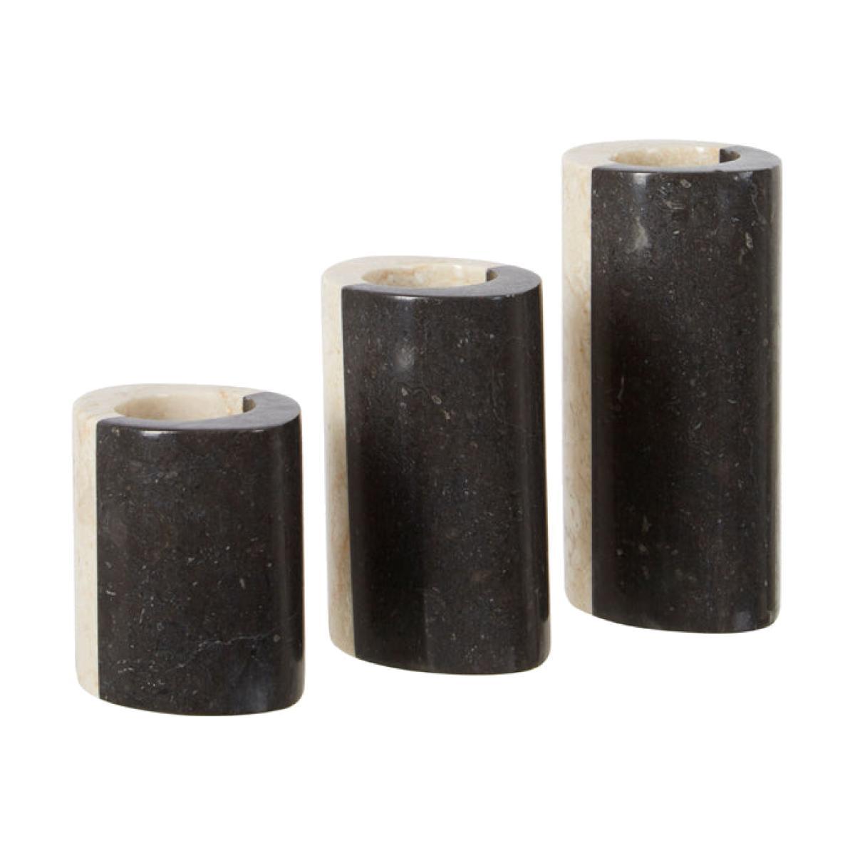 Change the feel of any room with a set of these Suki candle holders. Carved from stunning cream and black marble, they will sit well in any room of your home. Although the cylindrical design is vintage and minimalistic, their sublime natural veining creates deep aesthetic interest. Each set contains three marble candle holders in different sizes. Their solidity would also allow them to be used as bookends or paperweights. Whether you insert candles or not, these stunning items will make great centre-pieces on a dining table, mantelpiece, display shelf or side table and a perfect addition to any living space, bedroom or dining area. *Moot Trading Ltd is not a lender and acts only as an introducer. The credit product is provided by Klarna Bank AB (publ). Credit is only available to permanent UK residents aged 18 and over, subject to status. Terms and conditions apply. Please note that the following products are not regulated by the FCA: Pay in 30 days and Pay in 3 instalments. Read More.