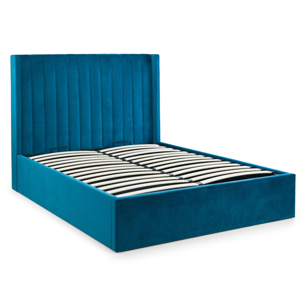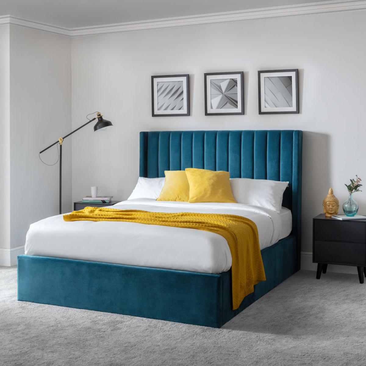 The Olivia's Storage Bed is designed with a luxurious scalloped headboard that would look perfect in various bedroom décor settings, alongside an ottoman base, which is perfect for those that need to maximise storage space in their bedroom. This stunning bed is both classy and practical – perfect for modern homes. Available in a gorgeous teal or elegant grey. Dimensions: H: 131 x W: 194 x D: 218 cm Materials: Hardwood Frame With Foam And Fabric Upholstery Assembly Required:Yes Care Instructions:Wipe with a clean damp cloth. Avoid household cleaners & abrasives