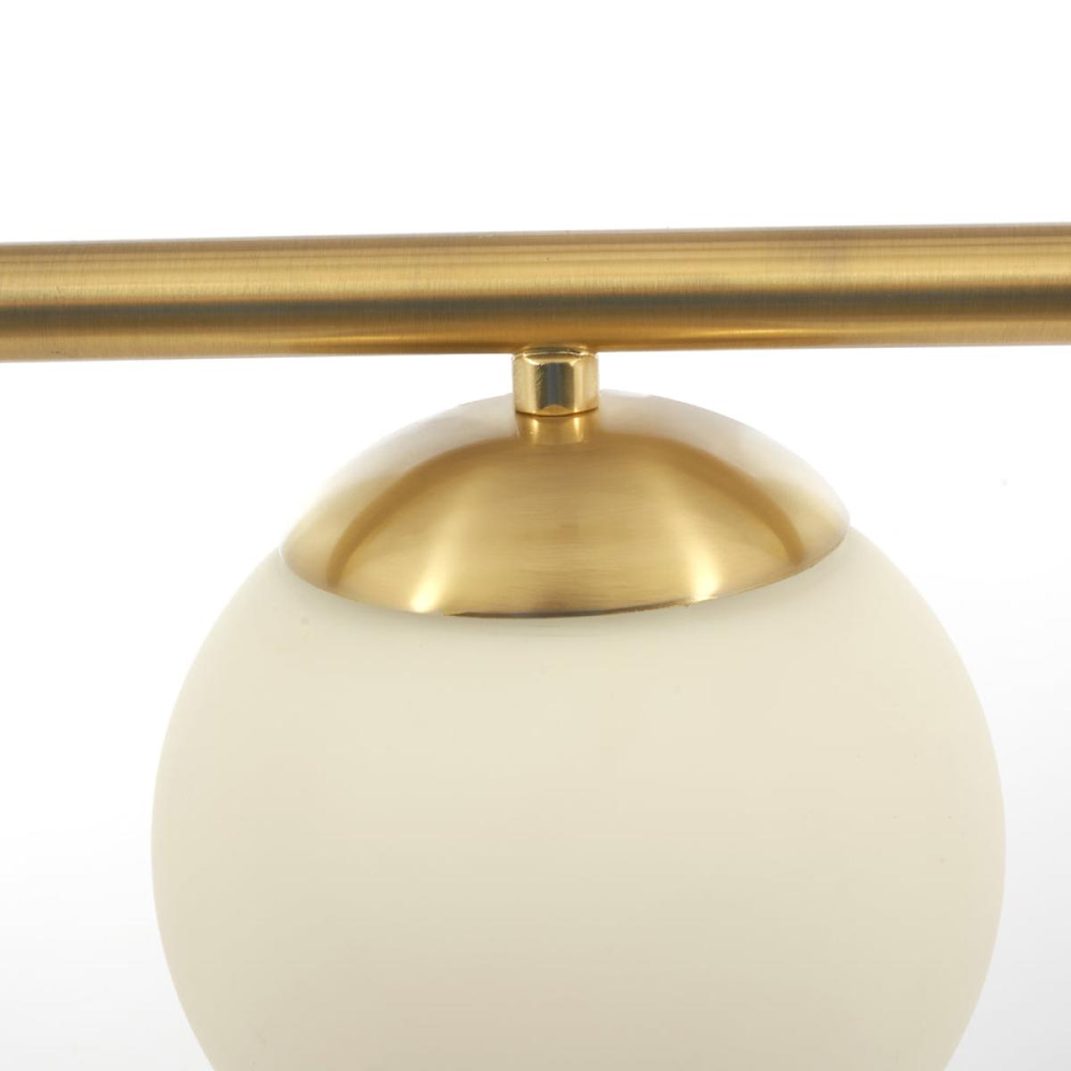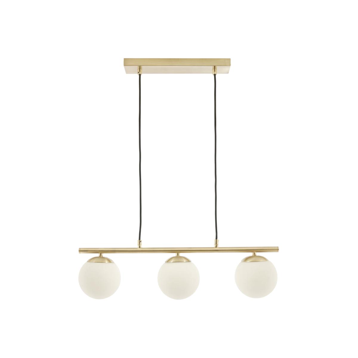 Bring some modern style i to your home with this three white orb and gold metal electrified pendant. This pendant will look stunning over any kitchen island or dining table. Also available in a floor lamp and table lamp.