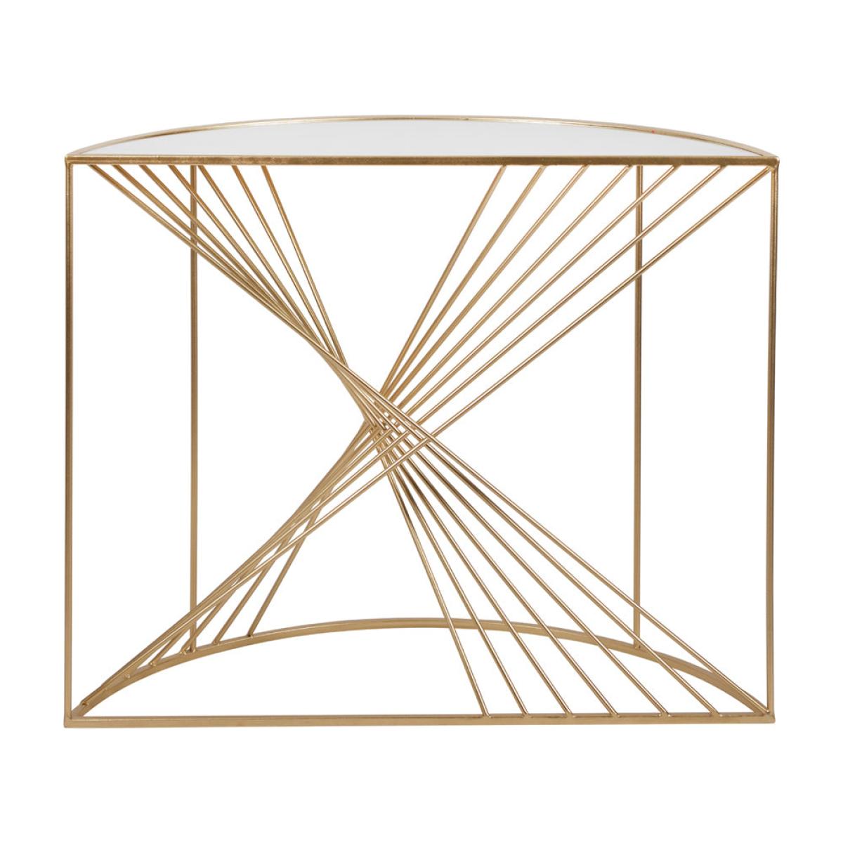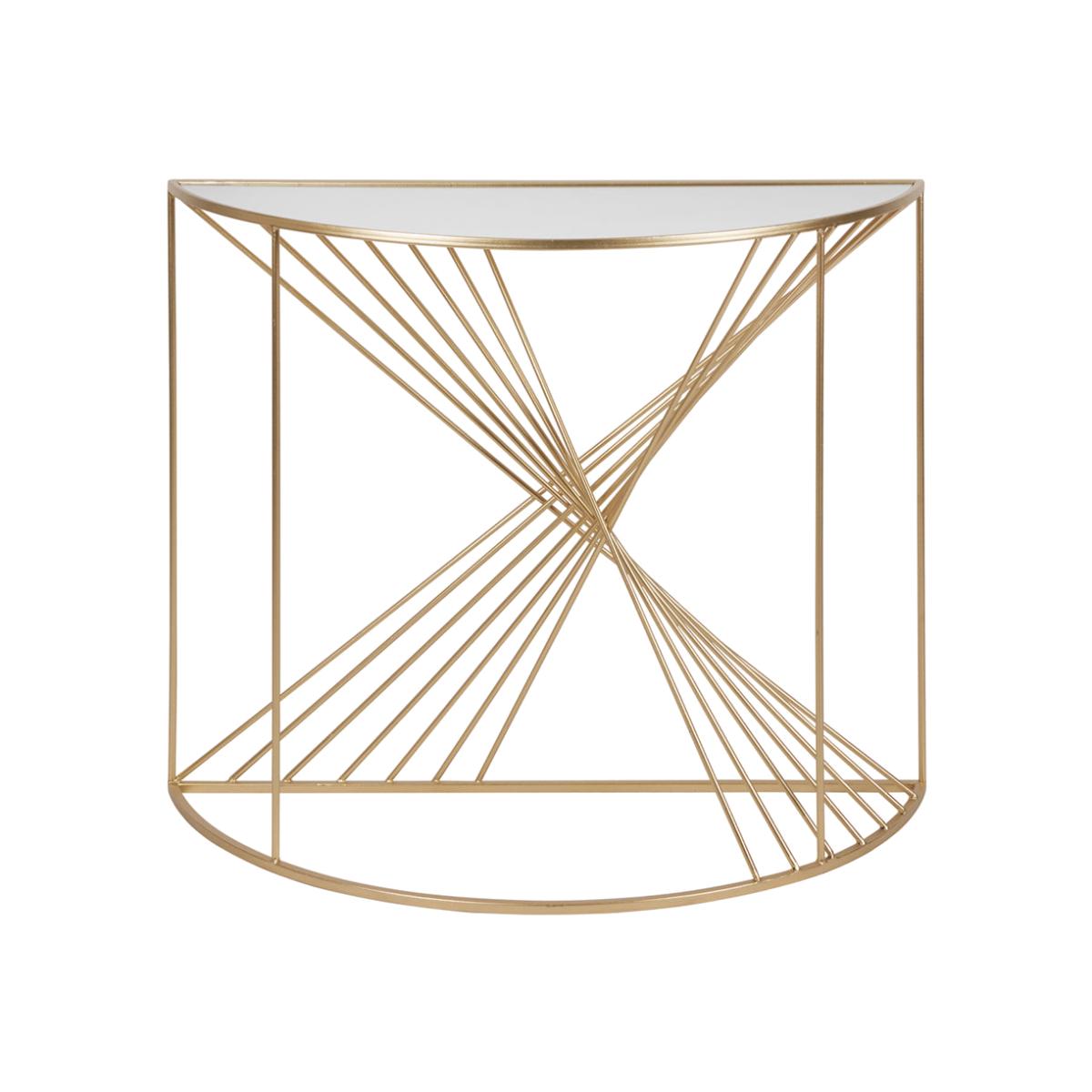 The gold metal framed console table with fabulous elaborate twisted design is the ultimate style statement. The glamourous glass-topped console offers style and functionality and can be used in a multitude of rooms in your home.