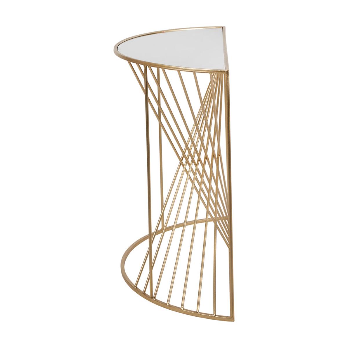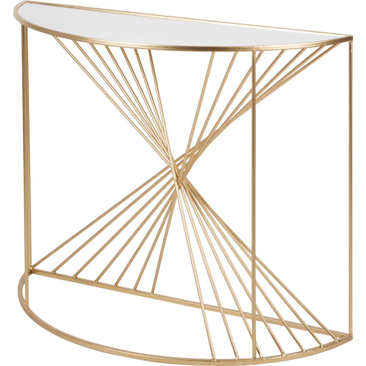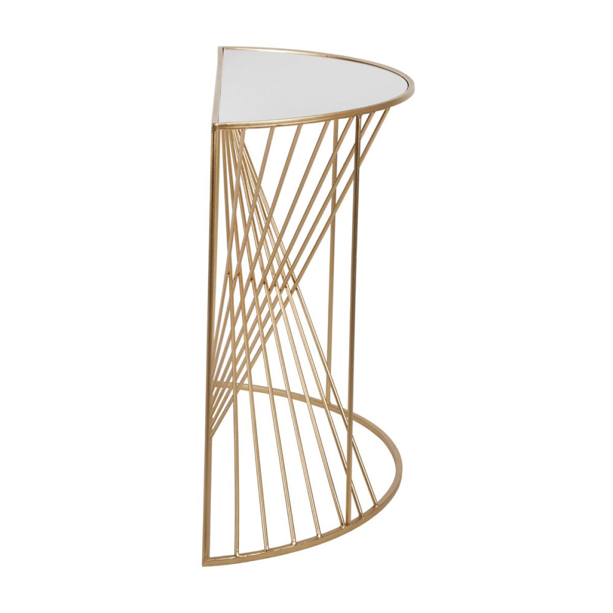 I love this for its bold yet sophisticated design-its semi-circular shape and geometric gold framework instantly elevate a space. It works particularly well in modern or contemporary interiors, adding a touch of glamour without overpowering the room. This console is versatile: place it in an entryway to create a striking first impression, or in a living area as a statement piece behind a sofa. Practical styling tips include keeping the surface clear for understated elegance, or displaying a few curated decorative items, like a statement lamp or a small sculpture. Its open structure also means it won’t feel bulky in smaller spaces, making it a stylish yet practical choice for both large and compact interiors.