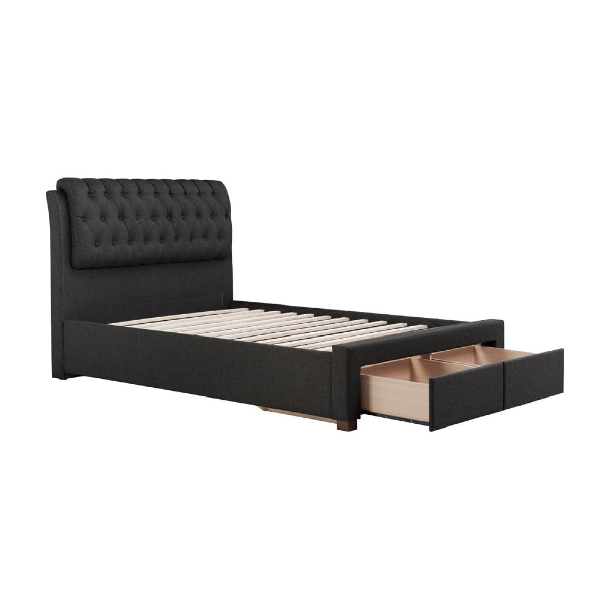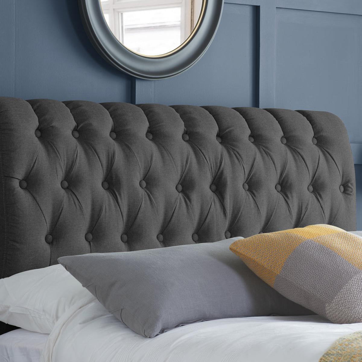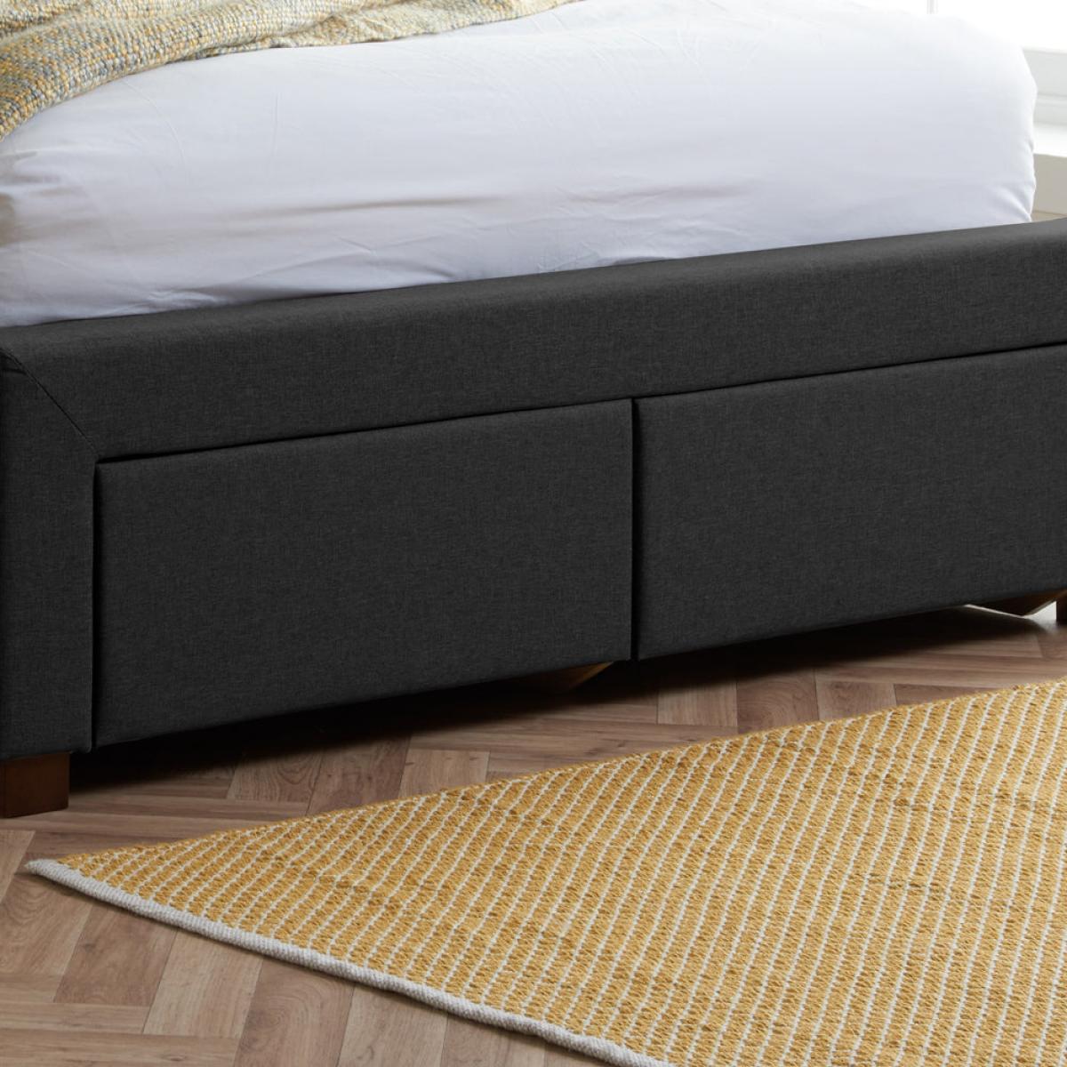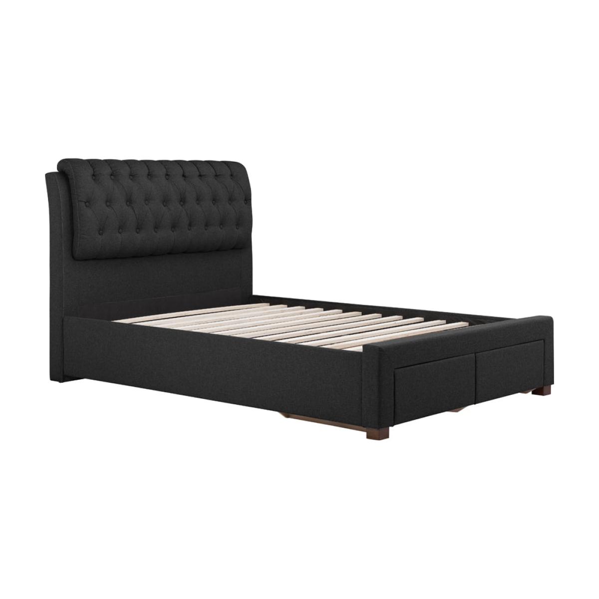 A delightfully upholstered bed that is really brought to life by a detailed buttoned headboard design, the Veronica not only looks great, but offers practicality with two spacious drawers built into the end of the bed. Available in either light dove grey, grey or charcoal polyester, the Veronica frame features a solid slatted base provides firmer support and allows air to circulate beneath the mattress. The maximum weight load for the 4"6 frame is 300 kg, and the 5" frame is 400 kg. Please note: Olivia's beds are only suitable for a UK standard size mattress and the recommended maximum mattress height is 305 mm. Dimensions: Double - H: 117.7 x W: 145 x D: 213.5 cm. Kingsize - H: 117.7 x W: 159 x D: 224.5 cm Materials: Polyester Assembly Required:Yes Care Instructions: Fabric can be gently brushed or lightly vacuumed to remove any dust. With any spillages, take immediate action to remove excess liquid. Do not rub or use any detergents. Always follow cleaning instructions included in the assembly instructions