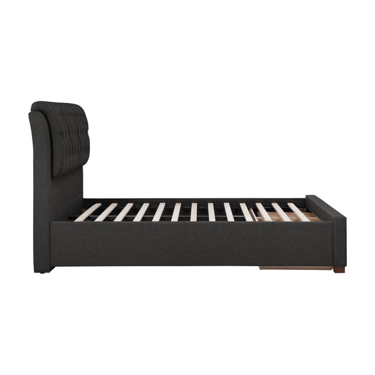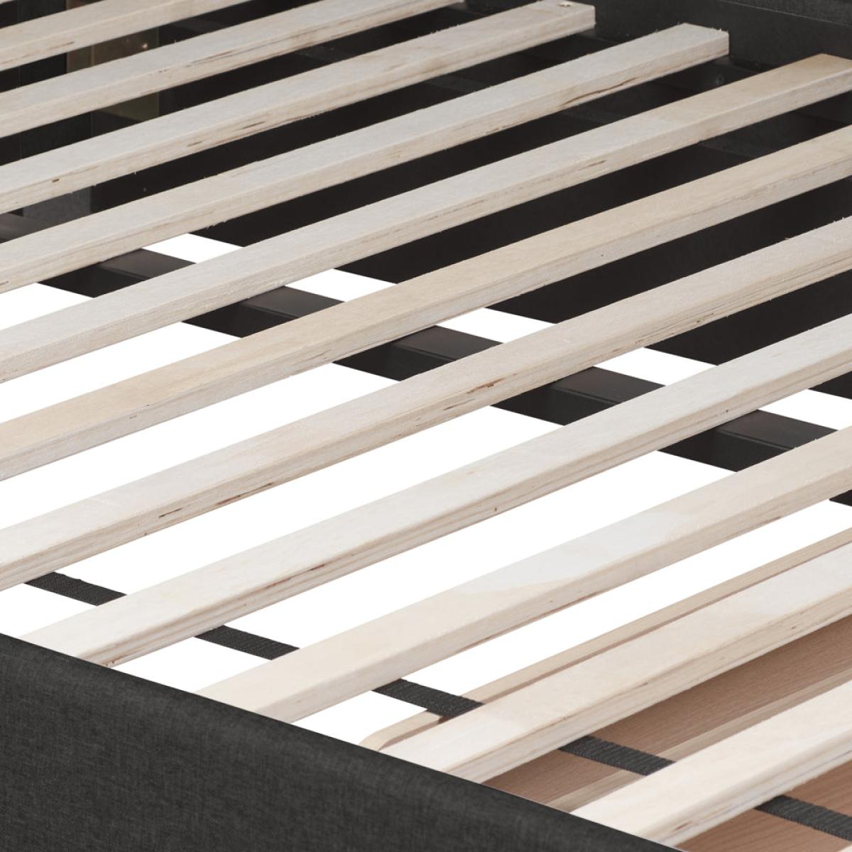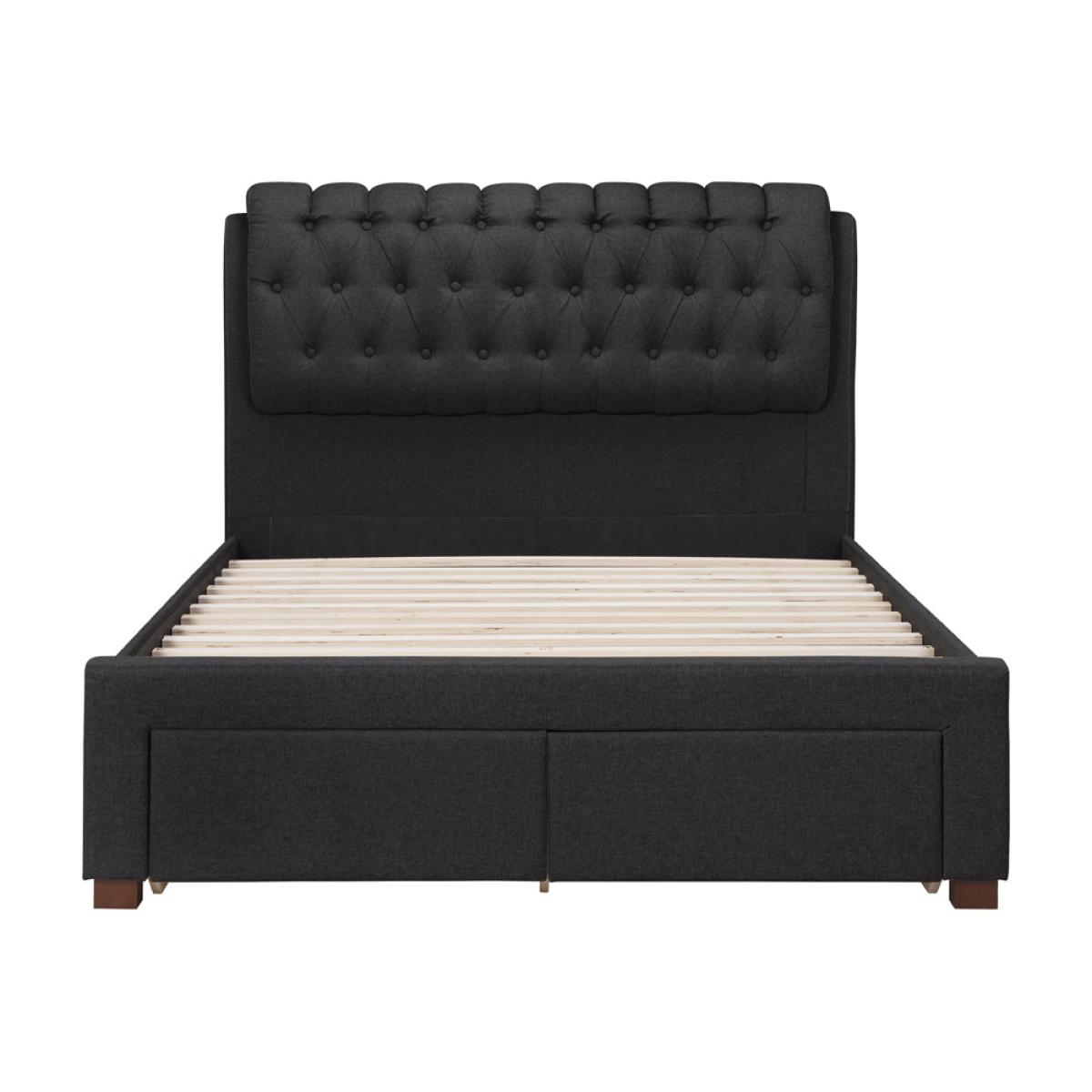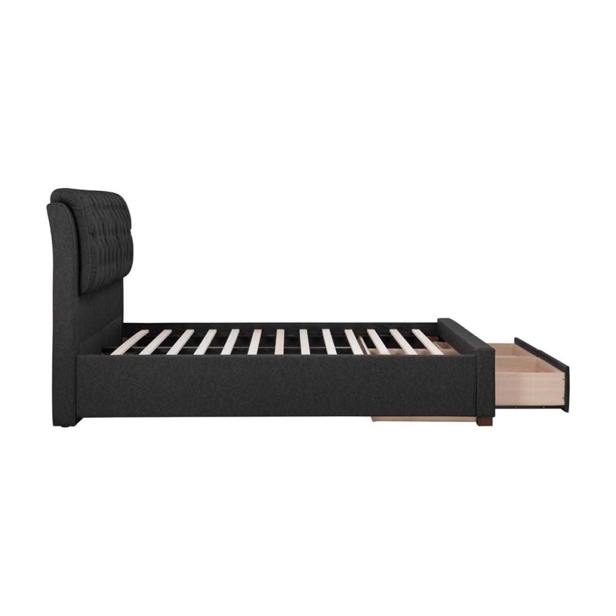 A delightfully upholstered bed that is really brought to life by a detailed buttoned headboard design, the Veronica not only looks great, but offers practicality with two spacious drawers built into the end of the bed. Available in either light dove grey, grey or charcoal polyester, the Veronica frame features a solid slatted base provides firmer support and allows air to circulate beneath the mattress. The maximum weight load for the 4"6 frame is 300 kg, and the 5" frame is 400 kg. Please note: Olivia's beds are only suitable for a UK standard size mattress and the recommended maximum mattress height is 305 mm. Dimensions: Double - H: 117.7 x W: 145 x D: 213.5 cm. Kingsize - H: 117.7 x W: 159 x D: 224.5 cm Materials: Polyester Assembly Required:Yes Care Instructions: Fabric can be gently brushed or lightly vacuumed to remove any dust. With any spillages, take immediate action to remove excess liquid. Do not rub or use any detergents. Always follow cleaning instructions included in the assembly instructions