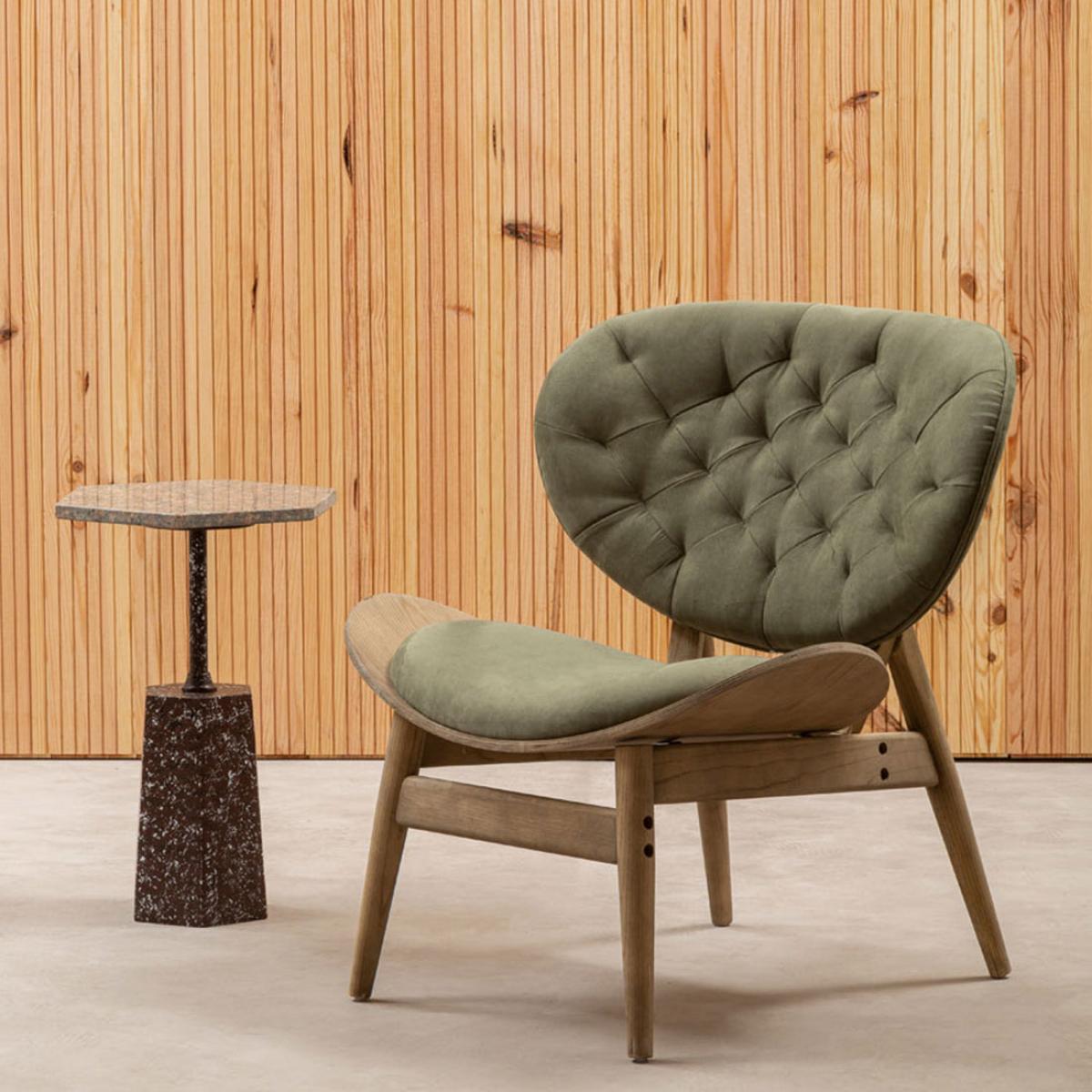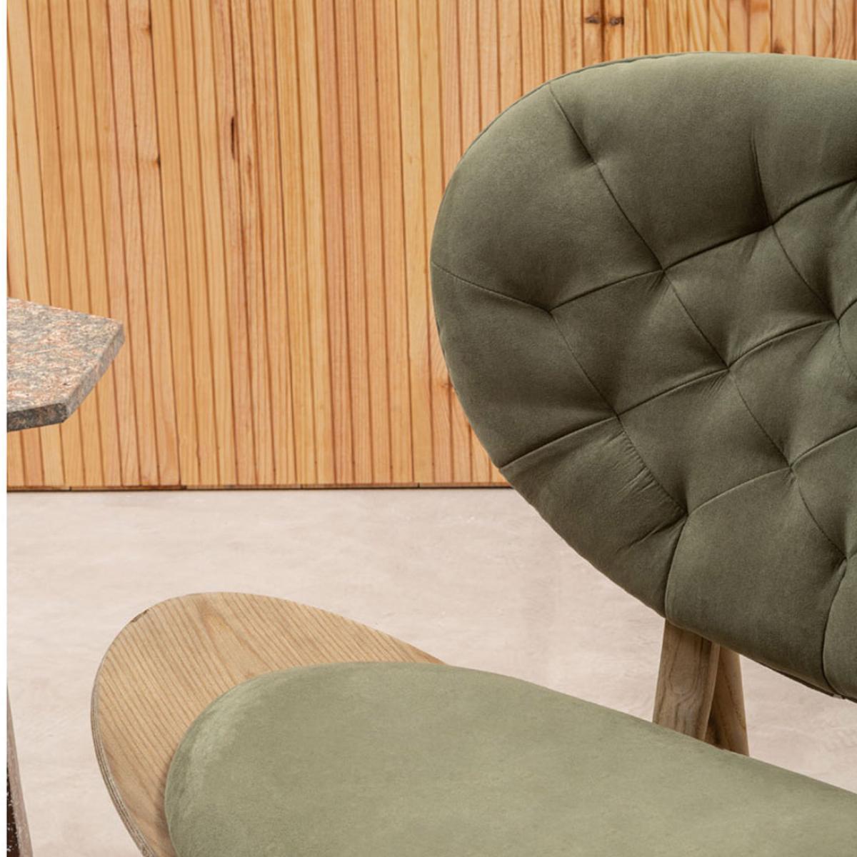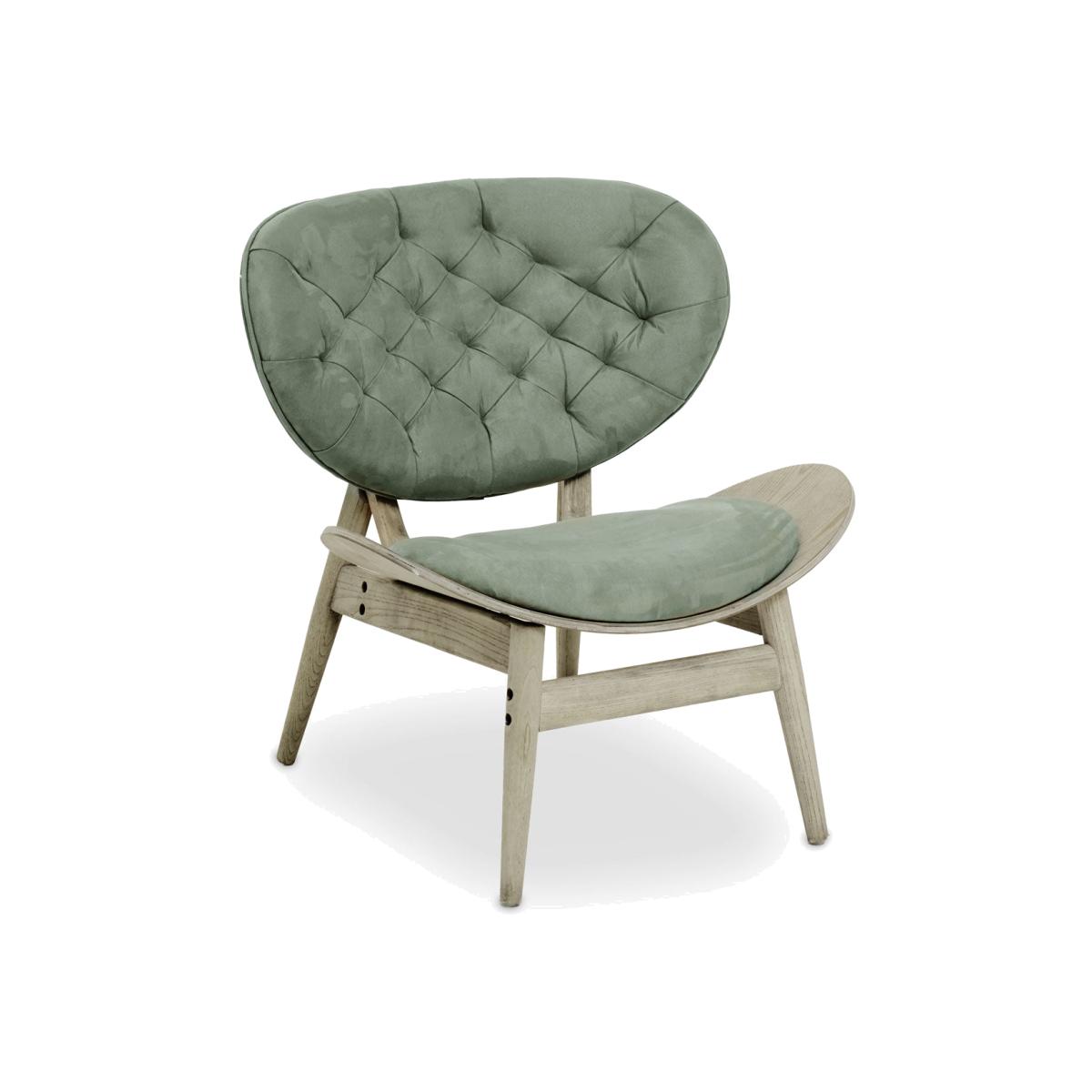 This chair's back and seat tilt angle puts the chair in a unique position. This high quality production features tufted upholstered back in green velvet with button detail based on a sturdy grey el. View More. This chair's back and seat tilt angle puts the chair in a unique position. This high quality production features tufted upholstered back in green velvet with button detail based on a sturdy grey elm wood frame reassuring quality construction and adding a modern aesthetic element.