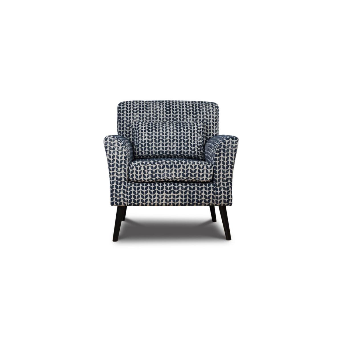 I love this chair because of its versatile pattern and rich blue colour, which can add a welcoming touch to various interiors. It works particularly well in cosy living rooms, reading nooks, or even as a statement piece in a modern bedroom. For styling, try pairing it with neutral or muted tones to let the blue and pattern stand out, or combine it with textured accessories like cushions or throws in complementary colours. Practical tips include placing it near good lighting for reading or in a corner to create a comfortable, stylish retreat. Its compact size makes it ideal for smaller spaces, adding personality and function without overwhelming the room.