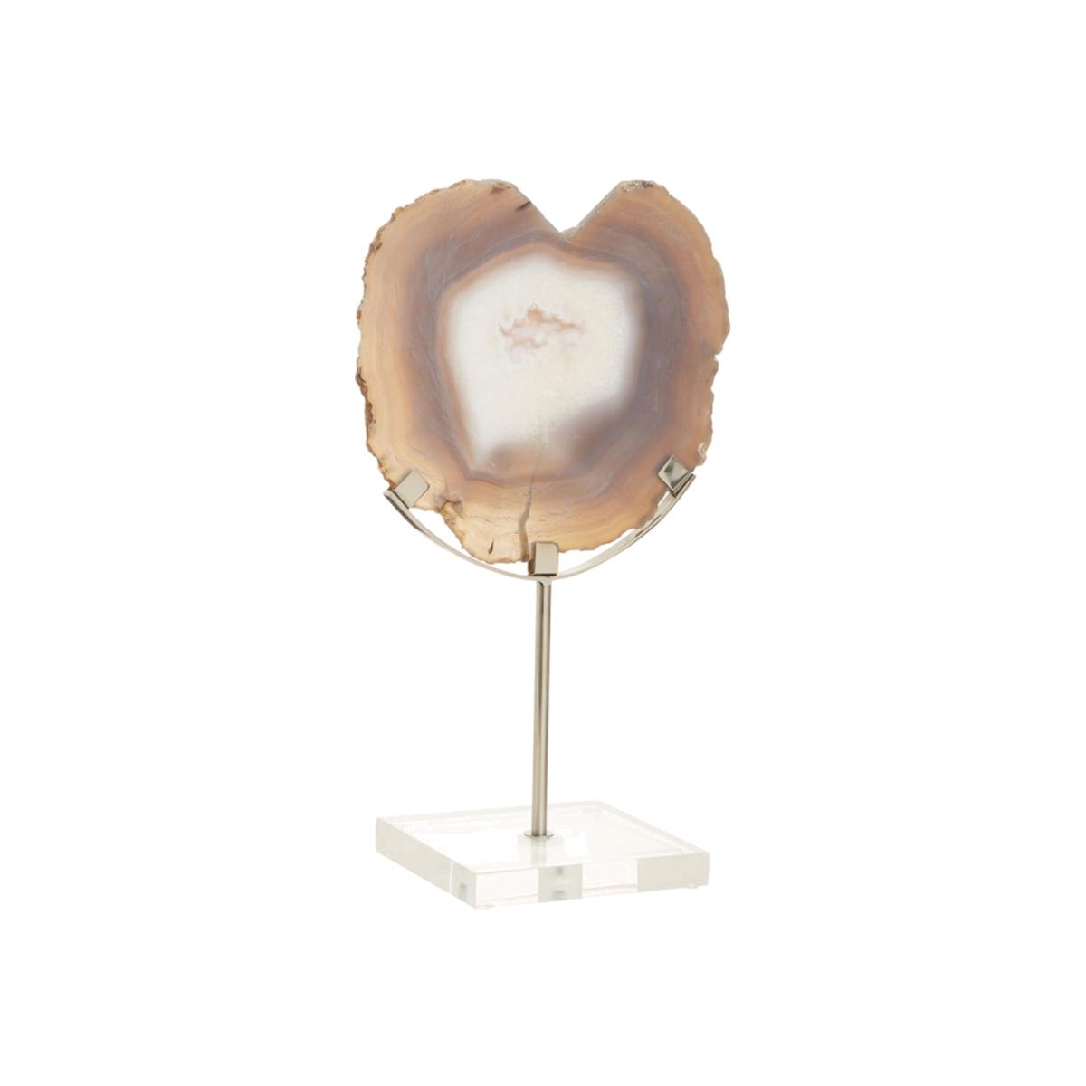 The Olivia's white and silver agate on stand is a stunning sculpture that will turn any contemporary home into a model of sophistication. The silver stand is thin and elegant, all the better for displaying the magnificent piece of agate above. It looms their with artistic style and distinctive, and fascinating colours. It looks almost like the intersection of a tree trunk with its rings of different but earthy tones. The uneven shape and tone add character, setting it apart from any similar design and making sure your home as a whole is equally unique and special. *Moot Trading Ltd is not a lender and acts only as an introducer. The credit product is provided by Klarna Bank AB (publ). Credit is only available to permanent UK residents aged 18 and over, subject to status. Terms and conditions apply. Please note that the following products are not regulated by the FCA: Pay in 30 days and Pay in 3 instalments. Read More.