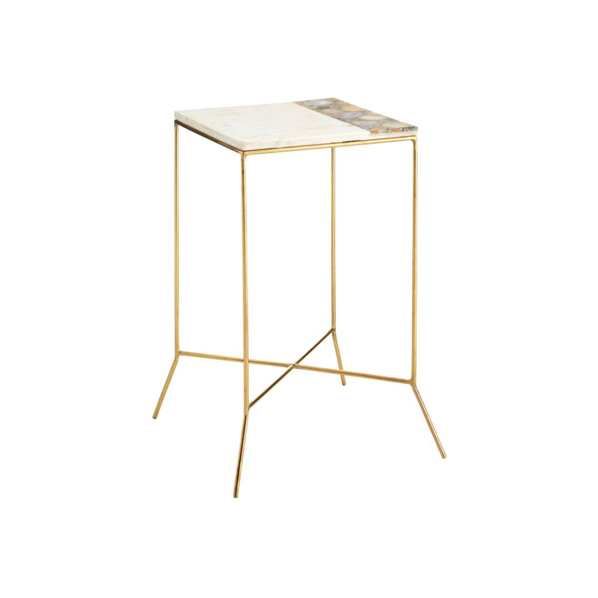Celebrate neutral tones and natural beauty with this white marble and agate side table from Olivia's. The unbelievably gorgeous marble and agate table top is positioned on gleaming brass-hued legs. The open structure allows plenty of light to permeate the piece, giving it a vivacious vibe that will suit all contemporary homes. From light and airy living rooms to calm and serene sleeping spaces, this sweet side table will work seamlessly with similarly warm-toned pieces. But wherever you choose to position it, be sure not to over-style the top so that you allow the beautiful tones and textures to be seen and admired. *Moot Trading Ltd is not a lender and acts only as an introducer. The credit product is provided by Klarna Bank AB (publ). Credit is only available to permanent UK residents aged 18 and over, subject to status. Terms and conditions apply. Please note that the following products are not regulated by the FCA: Pay in 30 days and Pay in 3 instalments. Read More.