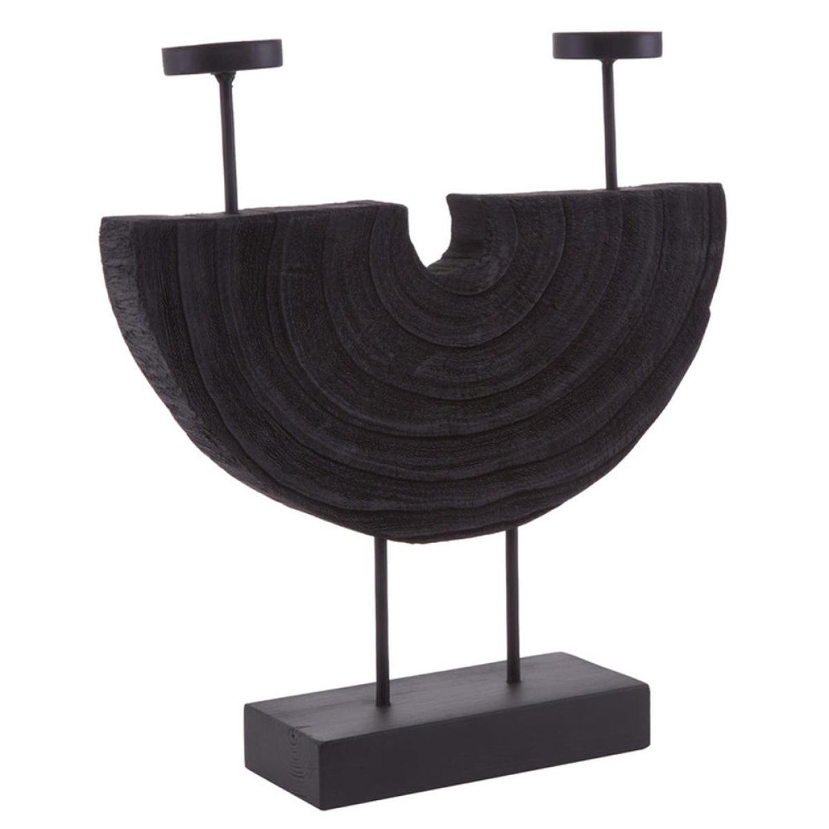 This striking wooden black two-candle holder is a piece of art that can take centre stage on any mantlepiece, sideboard or table. It is naturally an eye-catching focal point that will never fail to. View More. This striking wooden black two-candle holder is a piece of art that can take centre stage on any mantlepiece, sideboard or table. It is naturally an eye-catching focal point that will never fail to be talked about. It will be noticed for its 39cm striking wooden form even before its candles are lit. Add flickering candlelight and this 34cm wide piece will be transformed again. The soft light of the candles adds to the fluidity of the lines of this design and enhances the natural appeal of the piece. This is a tactile candle holder than can add beauty to any domestic or commercial space.