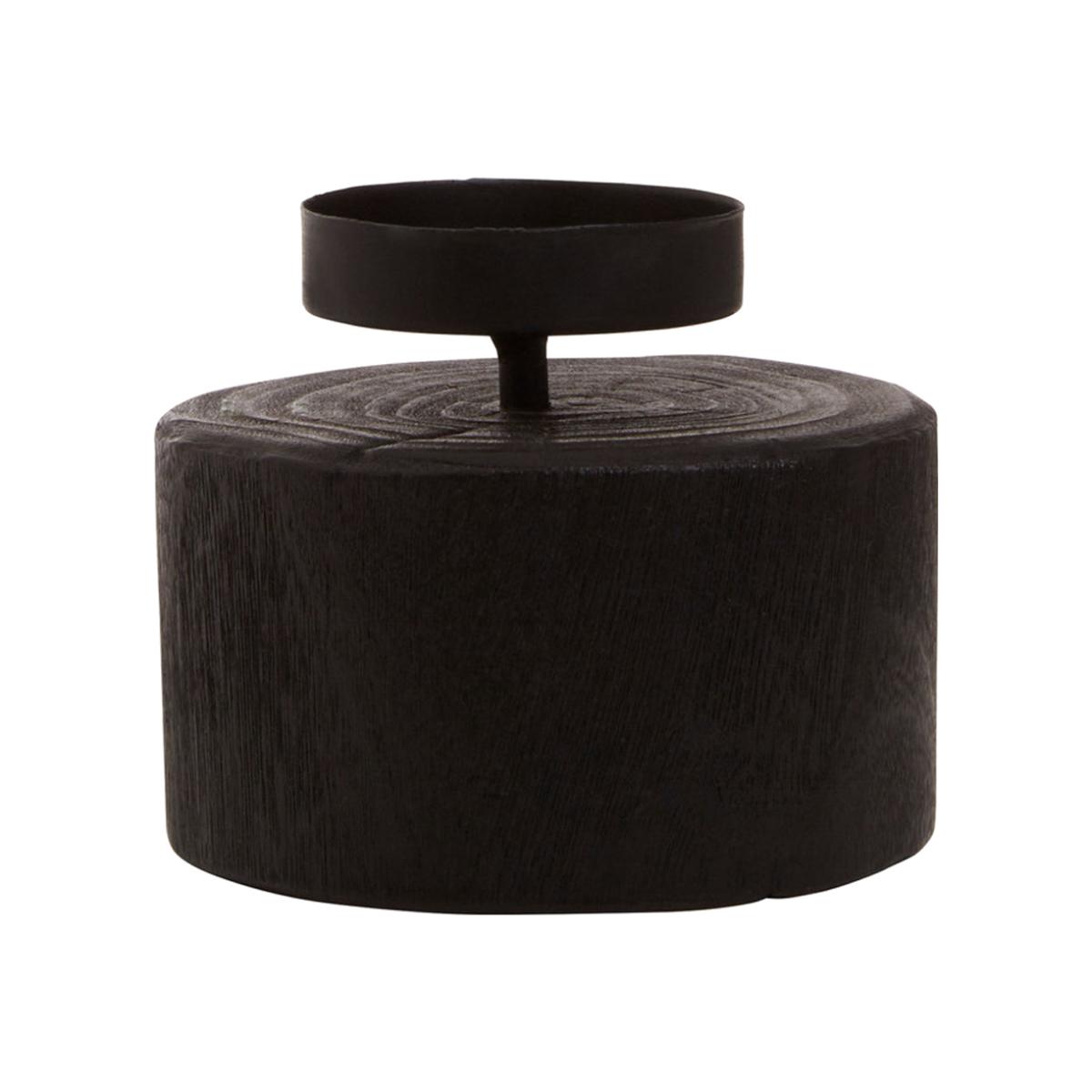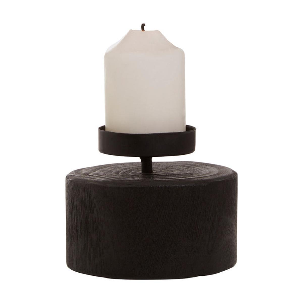 Bring some simple rustic charm to your home with this natural-style small black candle holder from Olivia's. Made from black camphor wood, this piece features a very simple round base with a raised. View More. Bring some simple rustic charm to your home with this natural-style small black candle holder from Olivia's. Made from black camphor wood, this piece features a very simple round base with a raised round metal candle holder to holder a chunky-sized candle. This candle holder has lots of rustic charm, especially from the grains of the wood in the base. Adding a chunky candle enhances the simplicity of the design, so light the candle and relax in the cosy candlelit glow of your room. You can use just one of these candle holders or several to turn your room into something magical.