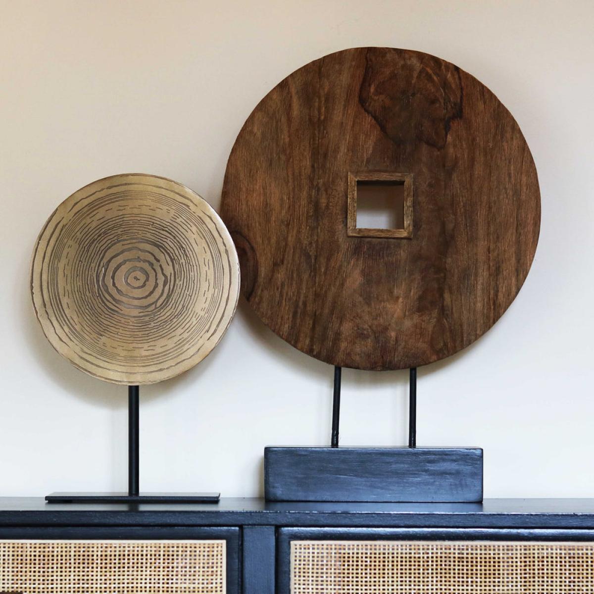 Create a beautiful design-led centrepiece for your sideboard or an interesting piece of art for a mantelpiece with the intriguing Olivia's Wooden Disc On Stand. This tactile wooden disc has been carefully crafted from natural wood, with a wonderful mix of smooth and rough tactile edges shaped into a bold disc. With all of the wood's natural beauty and individuality retained, the disc is suspended above a narrow support for a wonderfully contrasting finish. This decorative piece measures H: 540 x W: 400 x D: 90 cm, and it will look beautiful in all interior designs and styles, from traditional to contemporary. *Moot Trading Ltd is not a lender and acts only as an introducer. The credit product is provided by Klarna Bank AB (publ). Credit is only available to permanent UK residents aged 18 and over, subject to status. Terms and conditions apply. Please note that the following products are not regulated by the FCA: Pay in 30 days and Pay in 3 instalments. Read More.