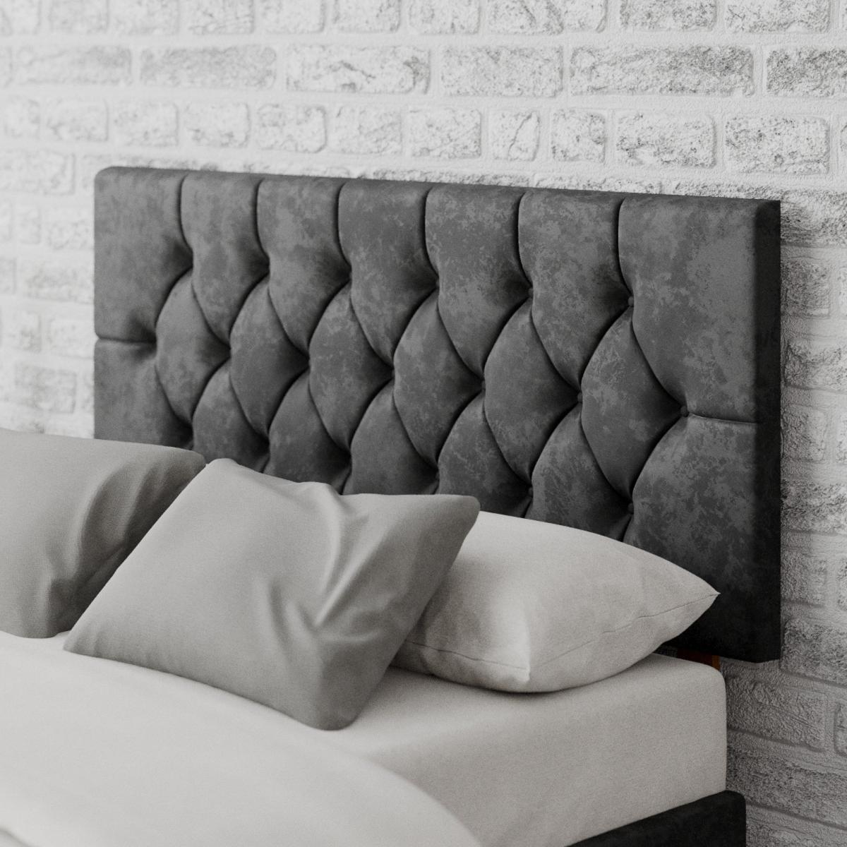 * Velvet fabric headboard* Deep buttoned headboard design* Timeless Olivier range* Hand upholstered with deep padding* Solid mahogany struts* 60cm headboard panel height* 40mm deep polyester padding* Compatible with standard size UK bed bases and divans* Manufactured in the UK Whether you’re reading a book or resting up in bed, this stylish headboard from the Olivier range offers a comfortable and relaxing recline while enhancing your bedroom décor. Creating a decorative feature, this headboard is hand upholstered in a velvet fabric with timeless deep buttoned design details and deep padding for added comfort. Handcrafted with a 15mm thick panel and with solid mahogany struts ensure your headboard is sturdy and long lasting for years to come and the deep polyester padding will add a comfortable and supported surface. Available from single to super king sizes, this headboard is suitable for all standard bed bases making it a convenient and simple upgrade to your existing bed frame and a range of elegant colours make it a versatile choice for various bedroom aesthetics.