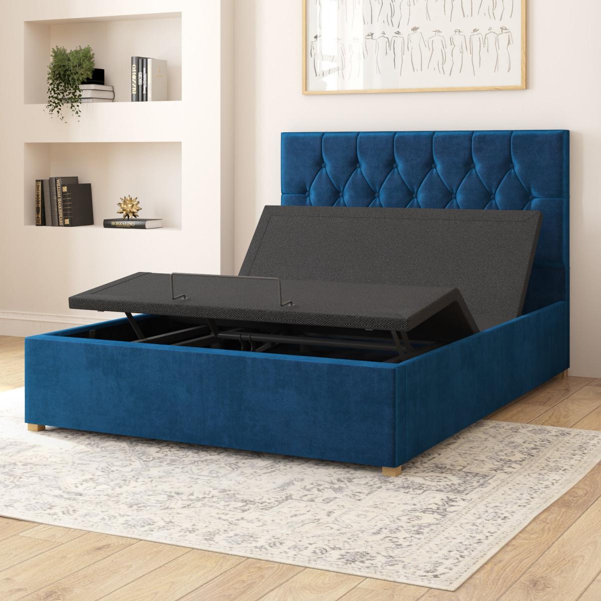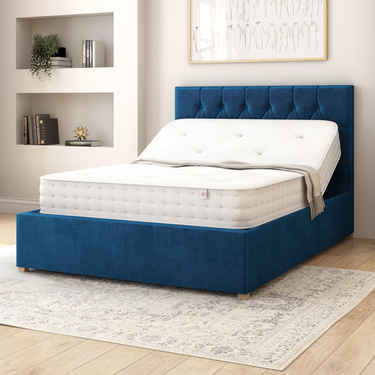 * Electronic Adjustable Bed* Wireless remote control for easy adjustments* Two Programmable memory positions* Available in Single, Double, Kingsize and Super Kingsize* Plush Velvet Upholstered Finish Introducing the Aspire Olivier Plush Velvet Electronic Adjustable Bed Frame. Meticulously upholstered by hand in the UK, this fabric bed features a sleek diamond headboard design, exuding both contemporary elegance and personalized comfort. Designed to cater to your individual needs, this bed frame boasts an advanced 4-part action system with a dual-motor setup. Whether you're adjusting the back, head, legs, or feet, each movement is smooth and seamless, enhancing your overall sleep quality. Operate your bed with ease using the wireless remote control, complete with a torch feature for effortless navigation in low-light conditions. The backlit keypad adds a modern touch and enhances visibility during night-time adjustments. Experience the perfect sleep setup at the touch of a button with two programmable memory positions, allowing you to save your preferred sleeping and relaxing configurations. Assembling your dream bed is simple and straightforward, ensuring that you spend less time setting up and more time enjoying the comfort and convenience of your personalized sleep haven. NOTE:The single and double bed sizes use a single platform meaning they take one mattress for the whole bed, while the king and super king sizes feature a split mechanism with independently controllable sides. This means that the king and super king will require two mattresses, one for each side of the bed, to ensure that you and your partner can enjoy personalised comfort without compromise.**Please Note:** A wire framed mattress can not be used on this style of bed. This bed s compatible with any fully foam or pocket-sprung mattress that doesn't have an outer wire frame. The single and double bed sizes use a single platform meaning they take one mattress for the whole bed, while the king and super king sizes feature a split mechanism with independently controllable sides. This means that the king and super king will require two mattresses, one for each side of the bed, to ensure that you and your partner can enjoy personalised comfort without compromise.