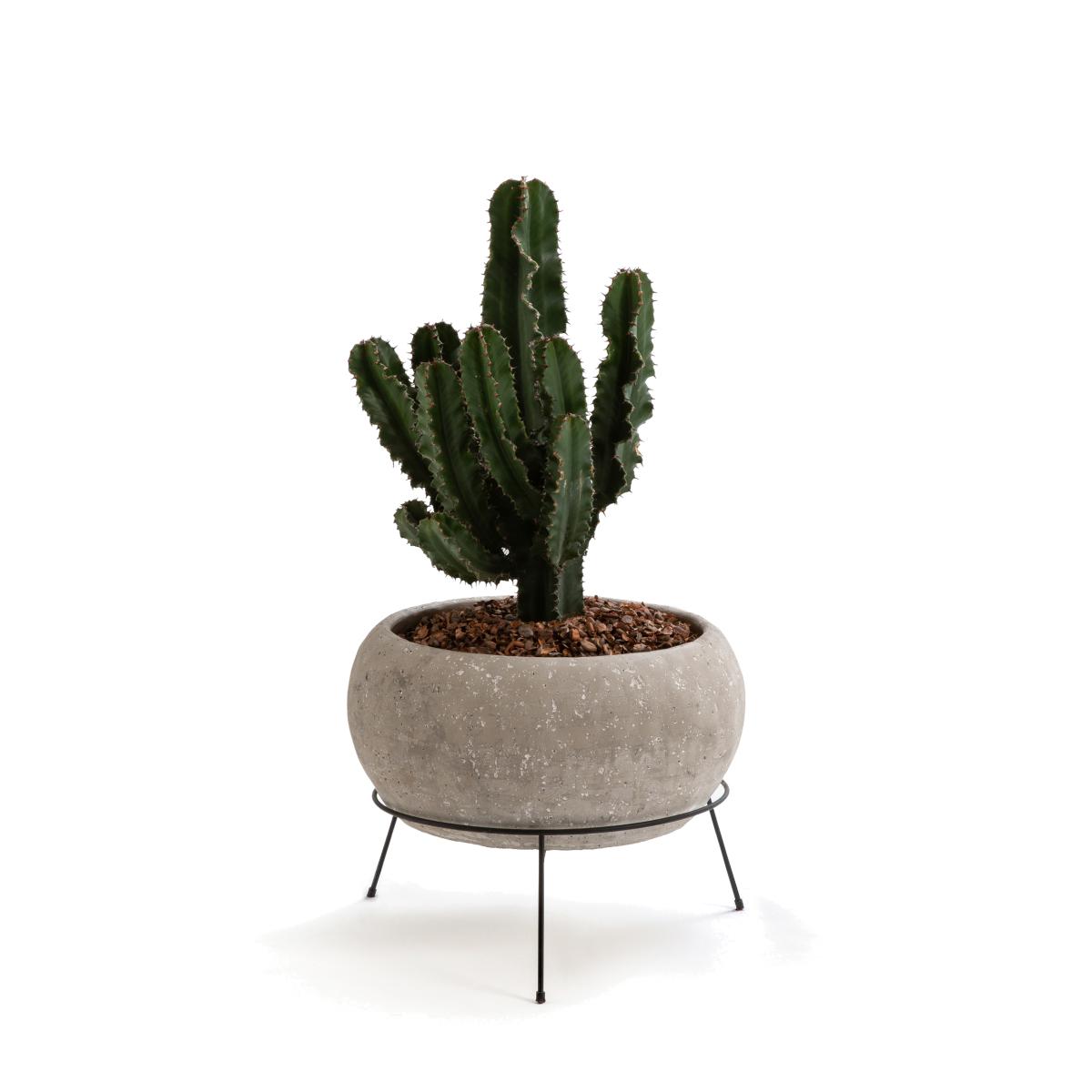 Simple and original, our Ollam plant pot offers a striking contrast between the raw, weightiness of cement and tough, slender metal. Lightly balanced on its minimalist support, the pot appears to defy gravity! Use it to showcase your most prized indoor plants, wherever you need a point of interest.