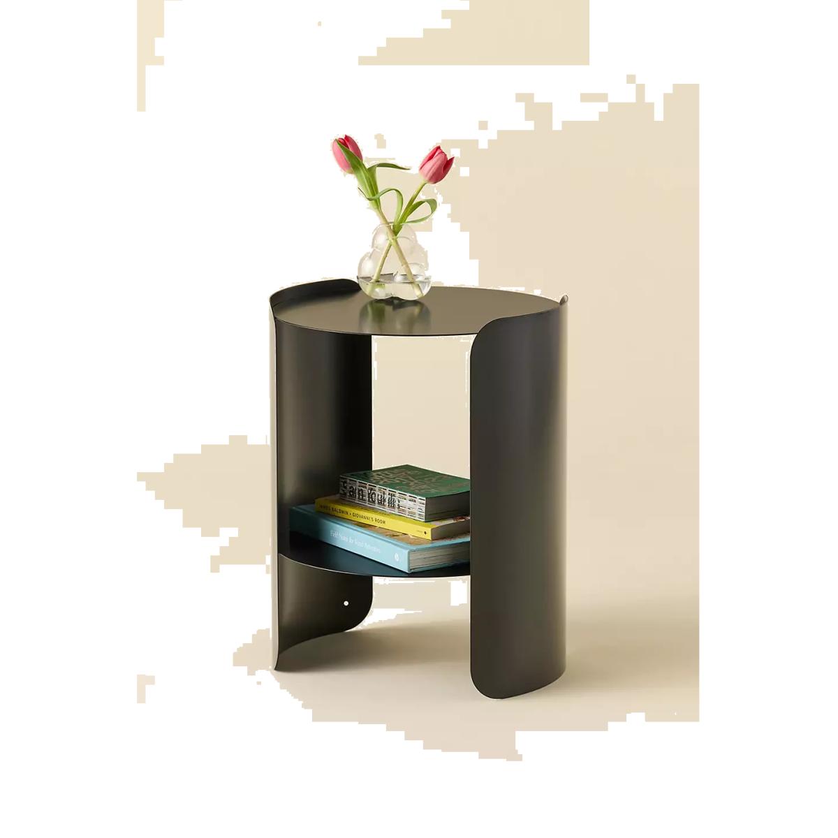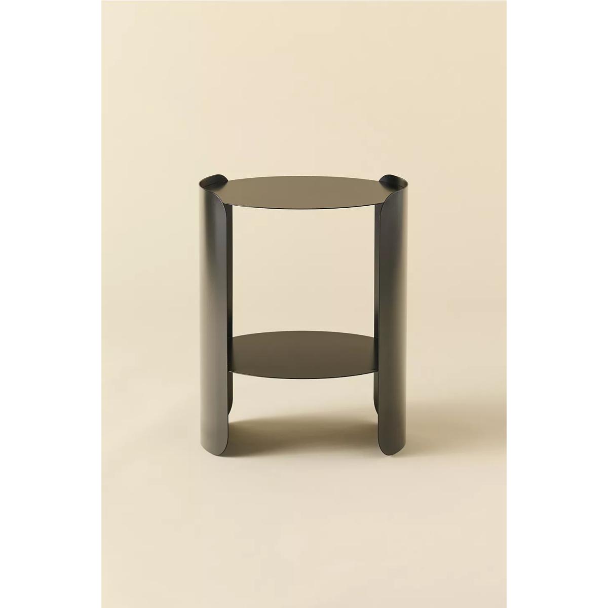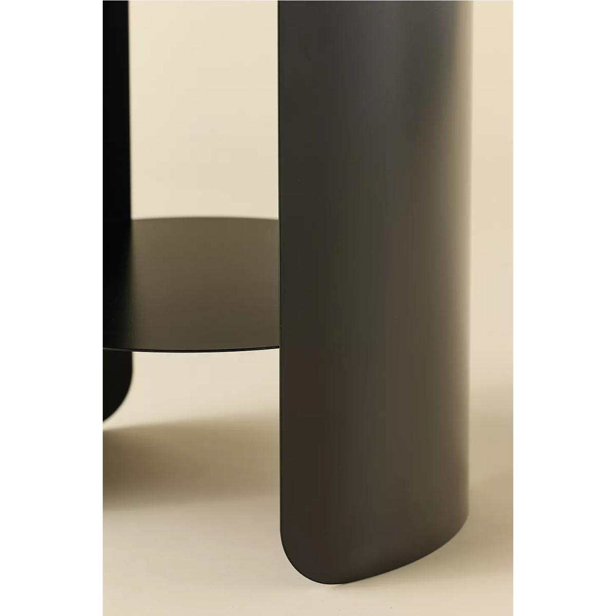 Contemporary side table with curved lines and rounded edges. Crafted from sleek black metal with an inner shelf, perfect as a contemporary bedside or accent piece. *Online return only. This item cannot be returned instore. Please note furniture items currently cannot be shipped to Northern Ireland or The Republic of Ireland. Delivery of large furniture items may take 1-2 weeks and are therefore not eligible for Next Day Delivery.* **Content + Care** \- 100% Iron \- Wipe clean **Size** \- Dimensions:Dia: 35.6cm x H: 44.7cm \- Leg height: 44.7cm \- Shelf dimensions: L: 24.6cm x H: 27.9cm \- Weight limit: Top shelf: 4kg \- Bottom shelf: 2.5kg \- Weight: 5.17kg \- Shipping package dimensions: l: 40cm x W: 40cm x H: 52.3cm \- Shipping package weight: 8.2 kg