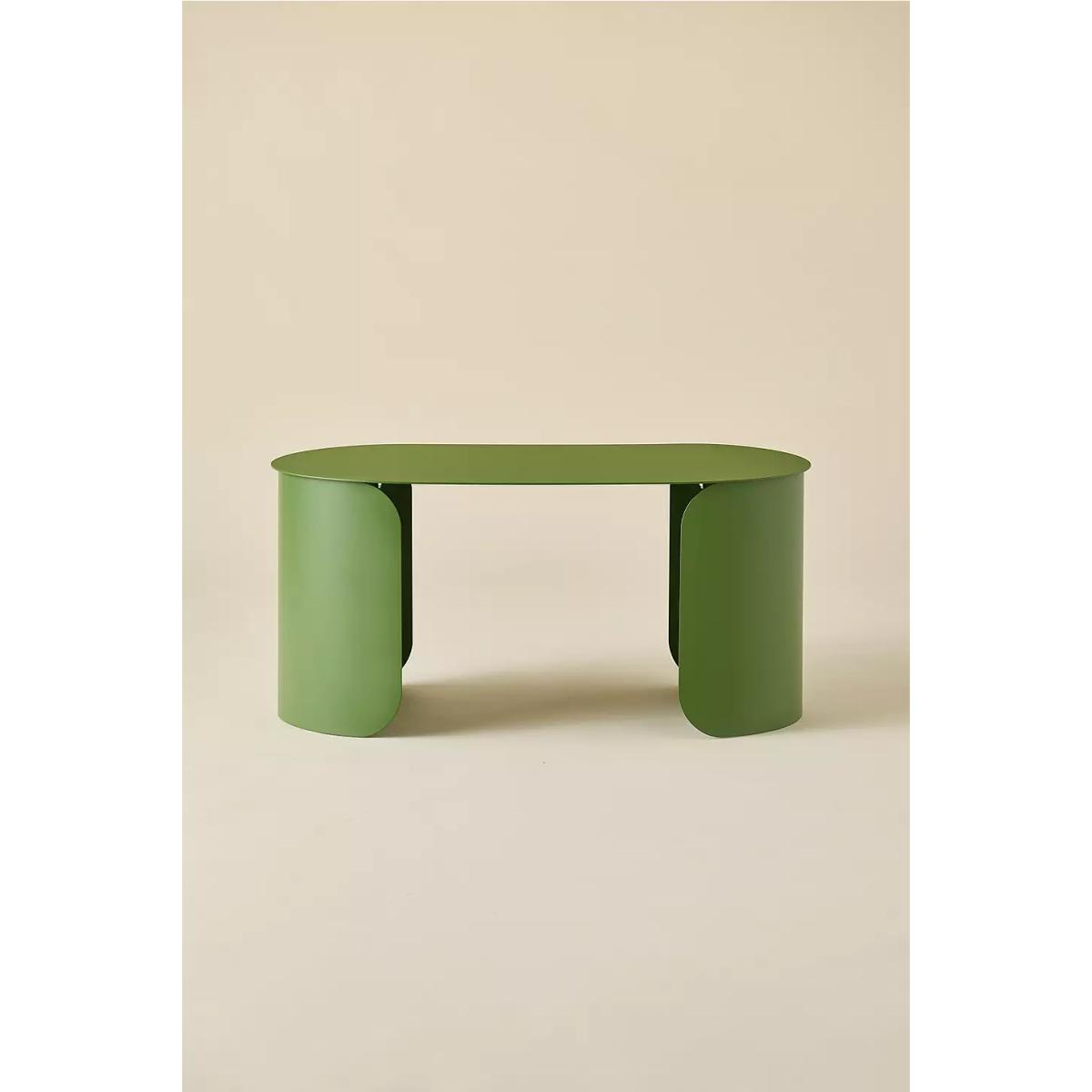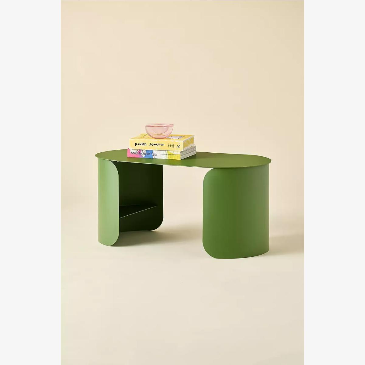 Add a contemporary flair to your space with this curved coffee table. Crafted from metal with an oval-shaped tabletop supported by two cylindrical bases that double as open storage compartments. *Online return only. This item cannot be returned instore. Please note furniture items currently cannot be shipped to Northern Ireland or The Republic of Ireland. Delivery of large furniture items may take 1-2 weeks and are therefore not eligible for Next Day Delivery.* **Content + Care** \- 100% Iron \- Wipe clean **Size** \- Dimensions: L: 40.6cm x W: 81.3cm x. H: 36.8cm \- Leg height: 36.6 cm \- Weight: 12.7kg \- Shipping package dimensions estimate: 90.8cm x 50.5cm \- Shipping package weight: 16.5kg