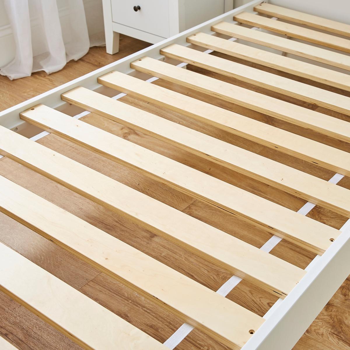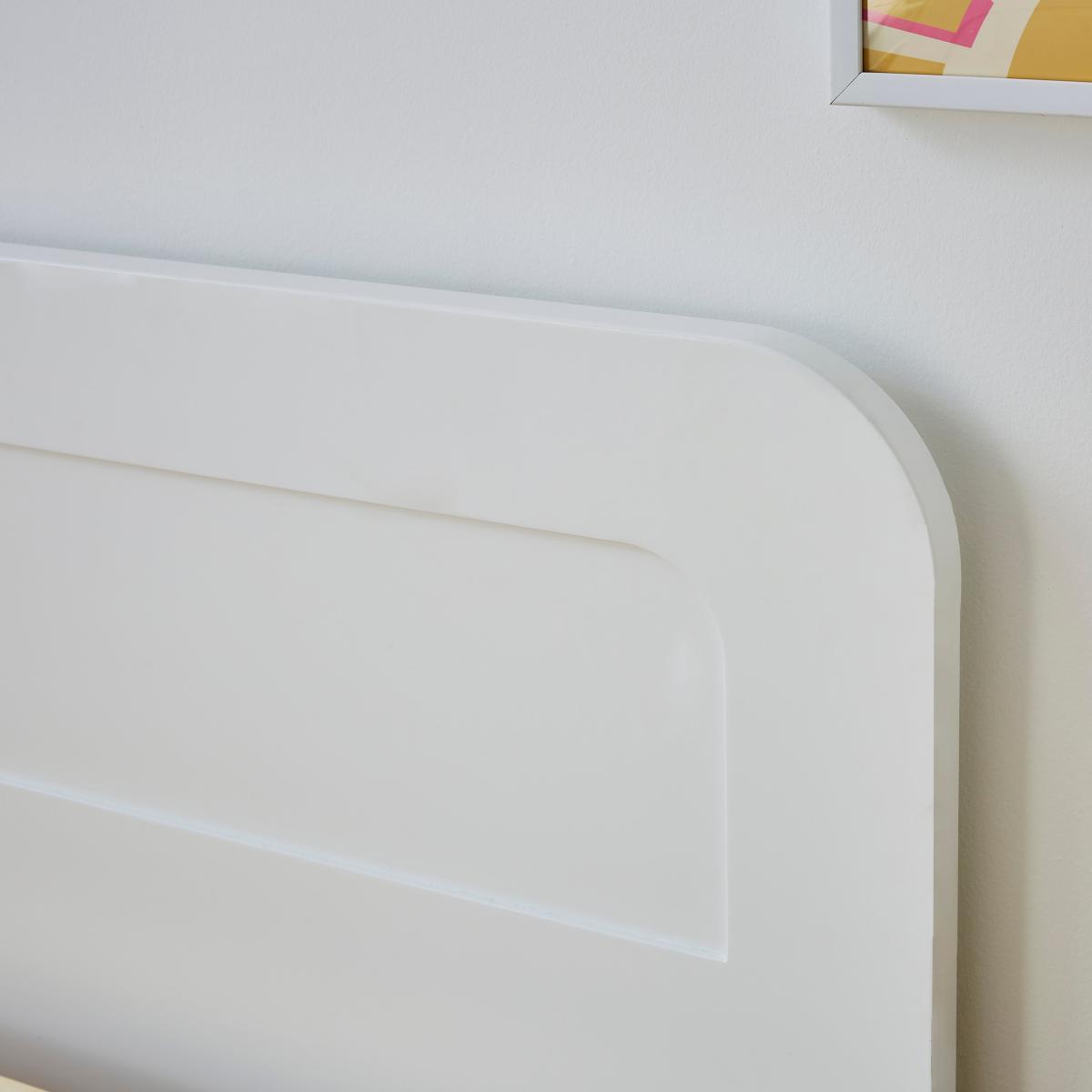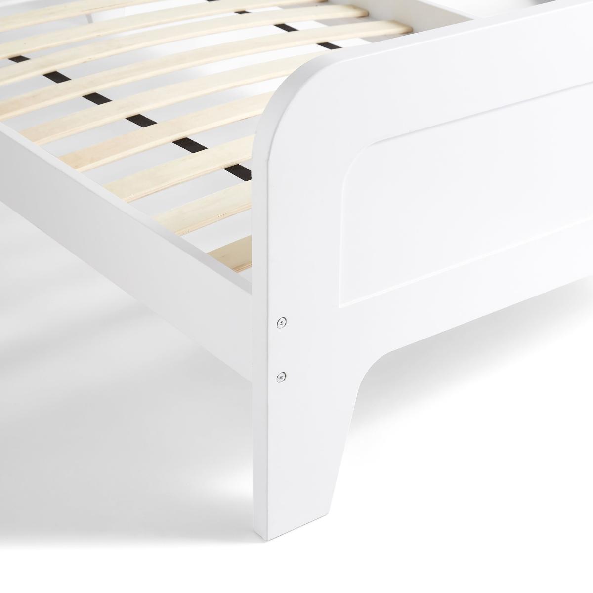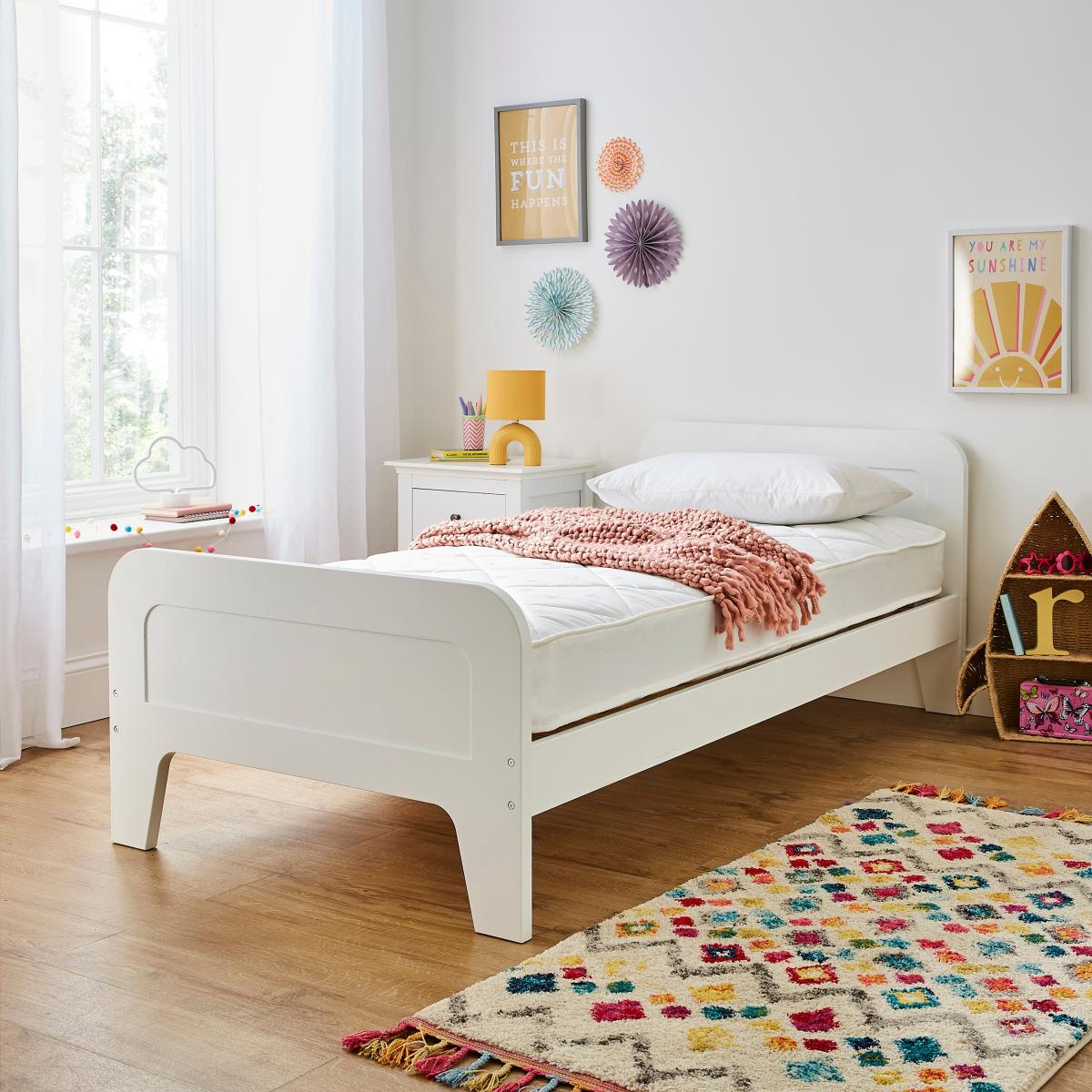 This white toddler bed frame offers a clean, versatile look that fits well in both traditional and modern kids’ rooms. I love its simple design, which makes it easy to style with colourful bedding or playful decor accents. It works particularly well in nurseries or bedroom schemes aiming for a light, airy feel. To enhance the space, try layering with patterned cushions or a cosy throw, or add colourful storage baskets underneath to maximise function without cluttering the aesthetic. Its neutral tone allows it to seamlessly blend with various colour palettes, making it a practical yet stylish choice for growing children’s rooms.