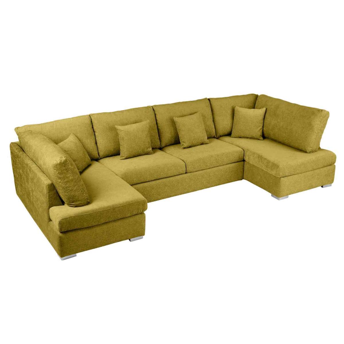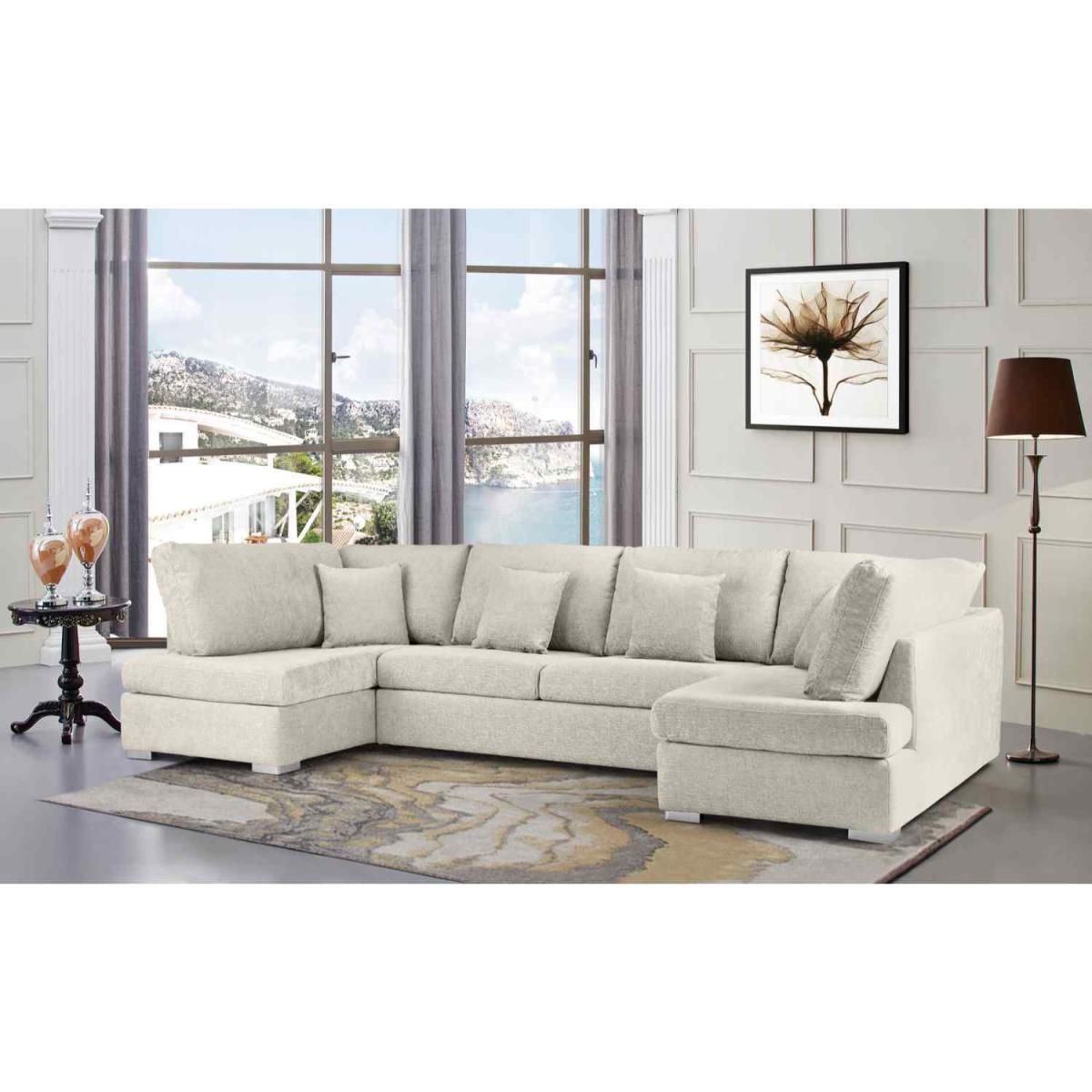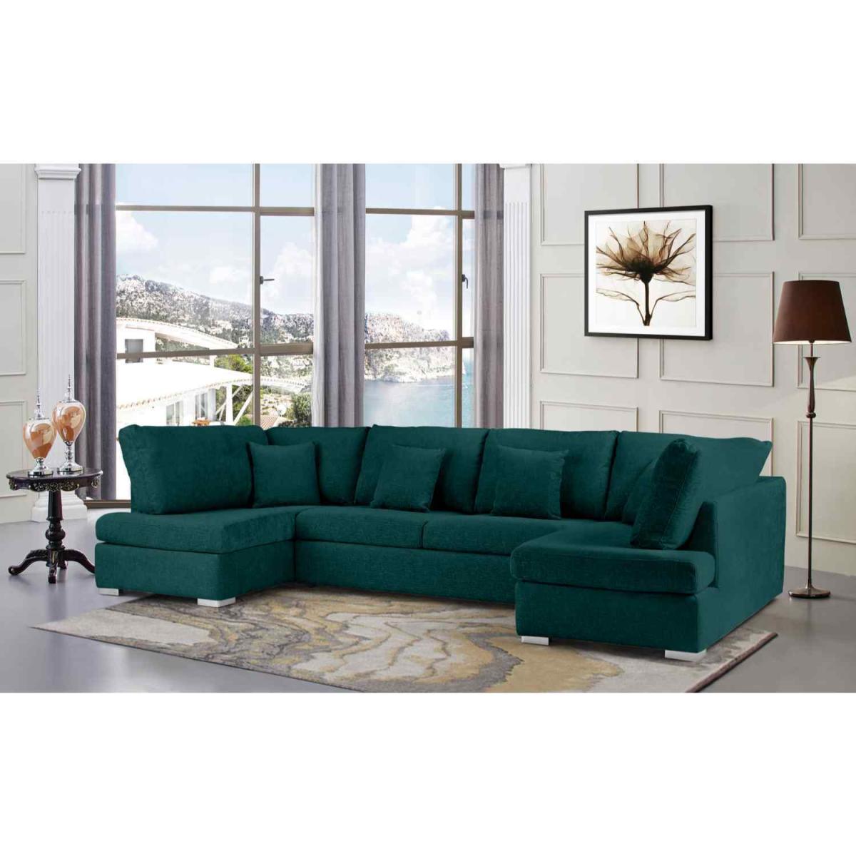 This stunning Large U Shape Sofa has been expertly handcrafted and made in Britain, available in a new plush velour fabric! This beautiful U Shape sofa has 2 chaises at each end! This elegantly designed sofa is sure to leave a statement in your living room. Solid Hardwood frame used and chrome metal feet, this sofa is sure to be a crowd-pleaser!