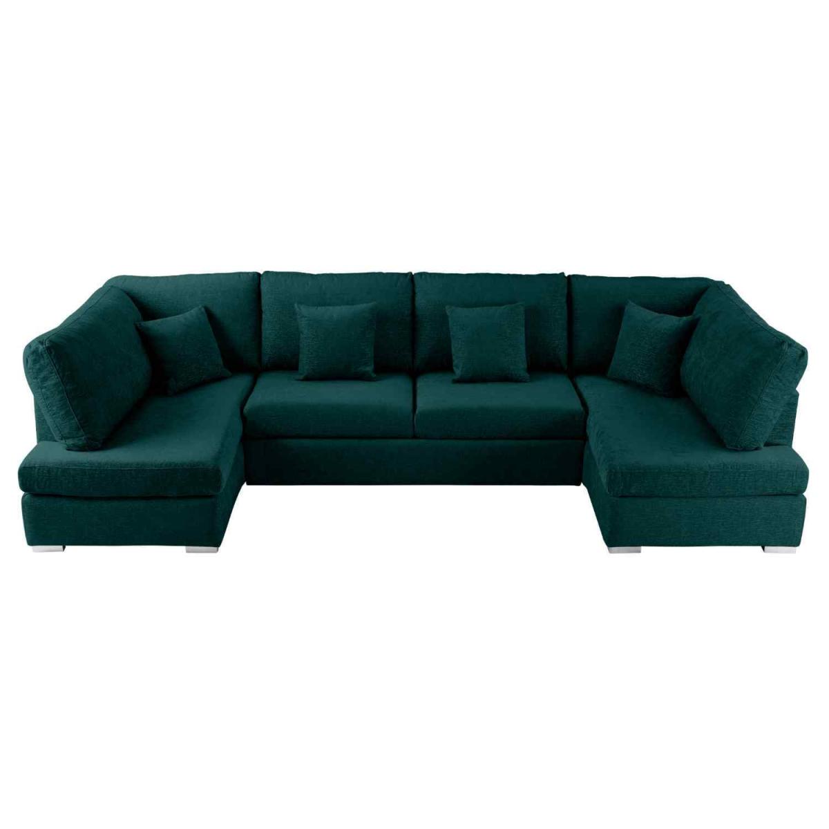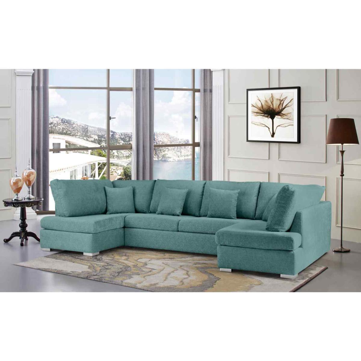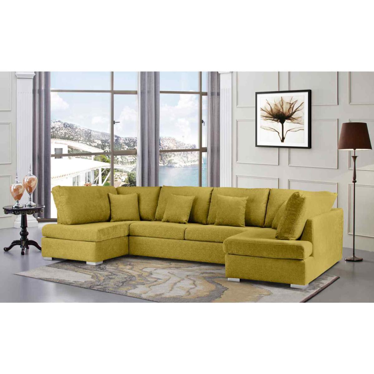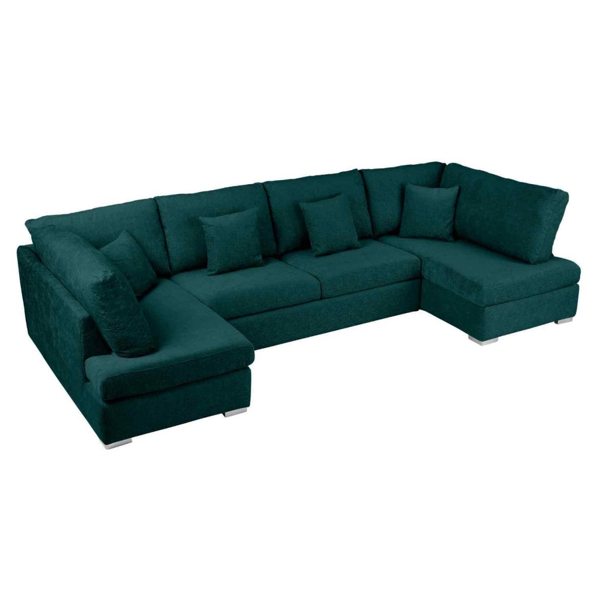 This stunning Large U Shape Sofa has been expertly handcrafted and made in Britain, available in a new plush velour fabric! This beautiful U Shape sofa has 2 chaises at each end! This elegantly designed sofa is sure to leave a statement in your living room. Solid Hardwood frame used and chrome metal feet, this sofa is sure to be a crowd-pleaser!