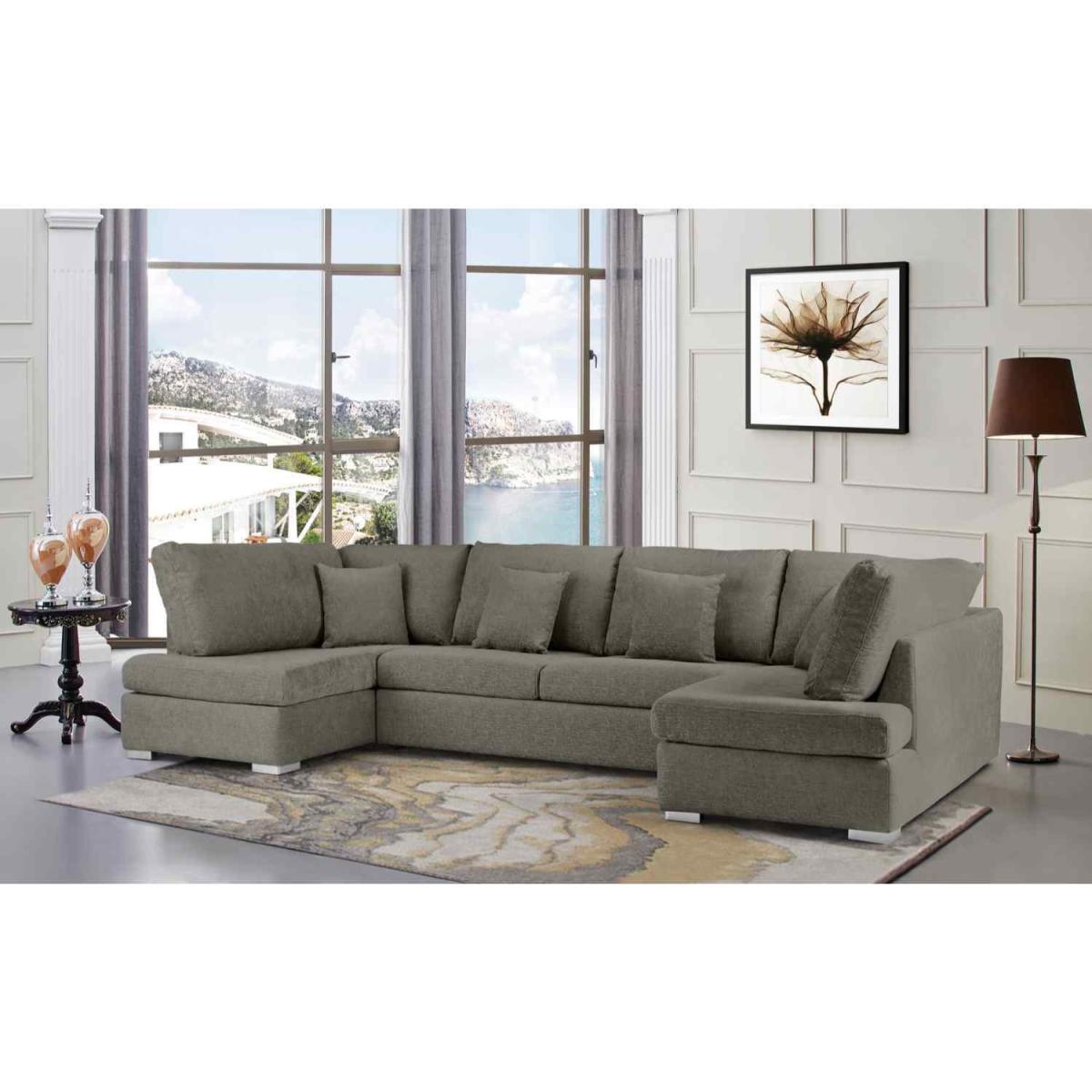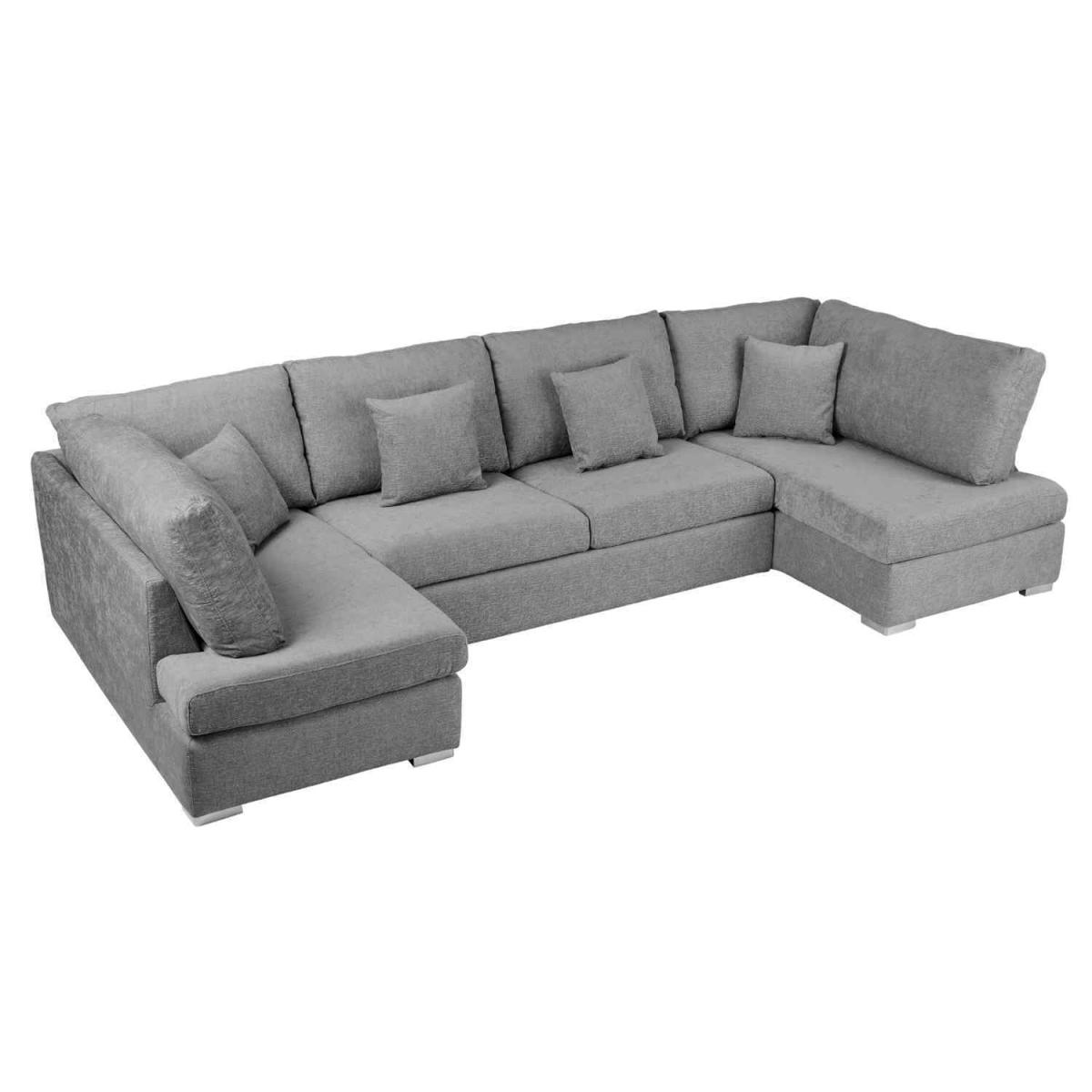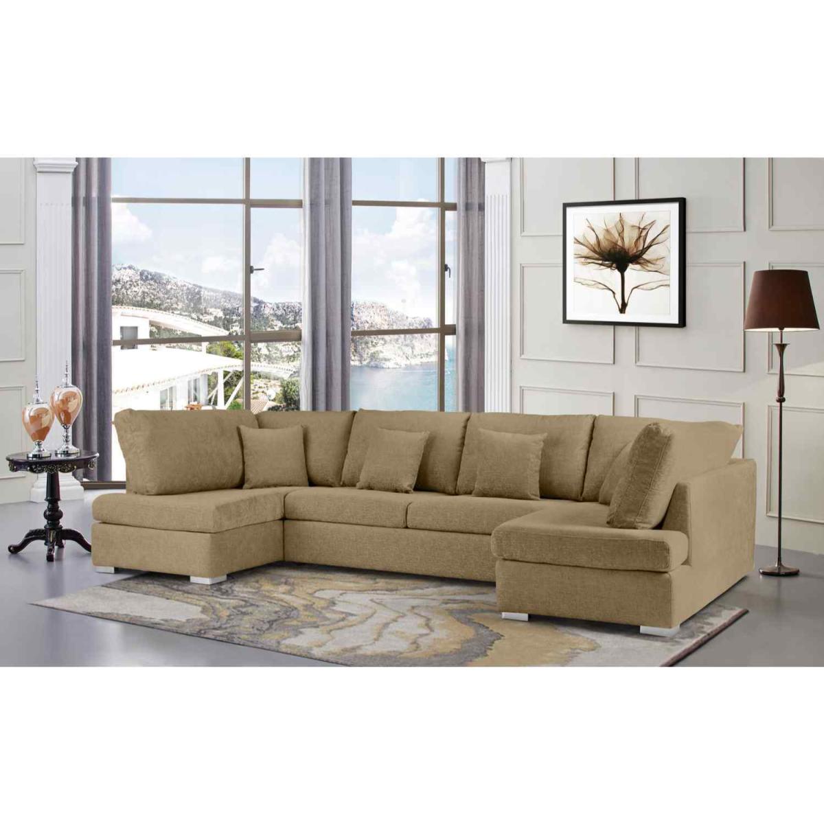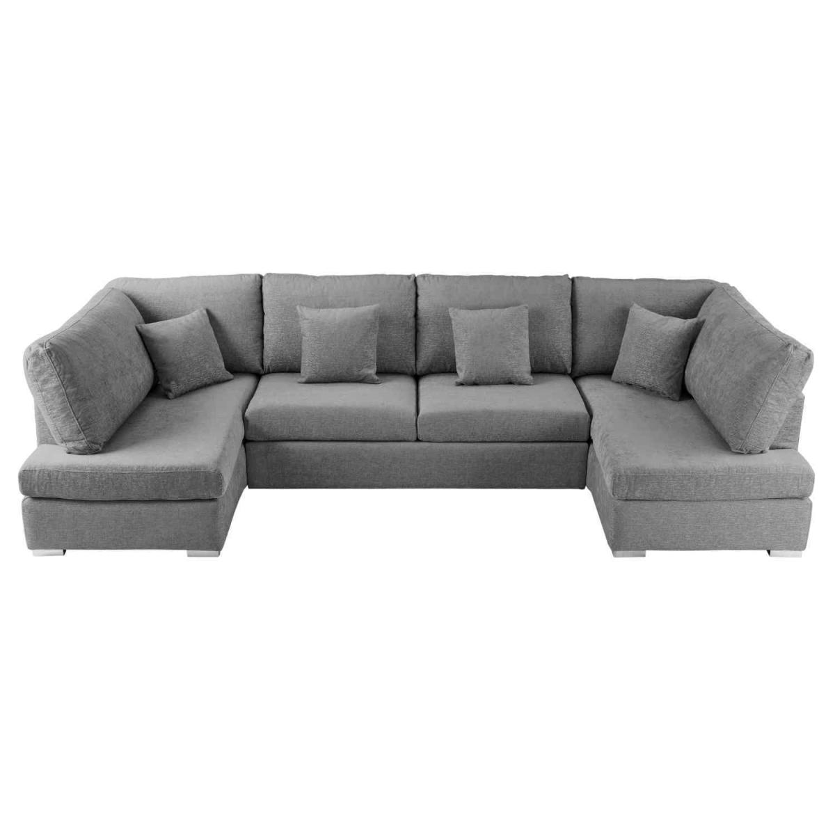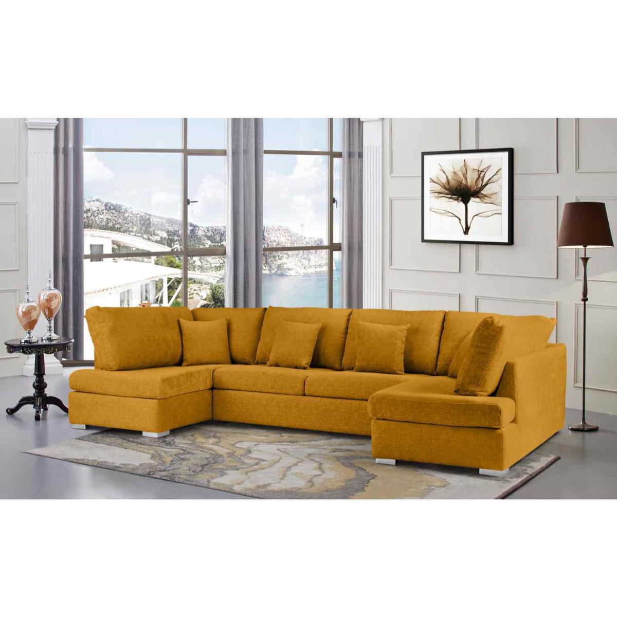 This stunning Large U Shape Sofa has been expertly handcrafted and made in Britain, available in a new plush velour fabric! This beautiful U Shape sofa has 2 chaises at each end! This elegantly designed sofa is sure to leave a statement in your living room. Solid Hardwood frame used and chrome metal feet, this sofa is sure to be a crowd-pleaser!