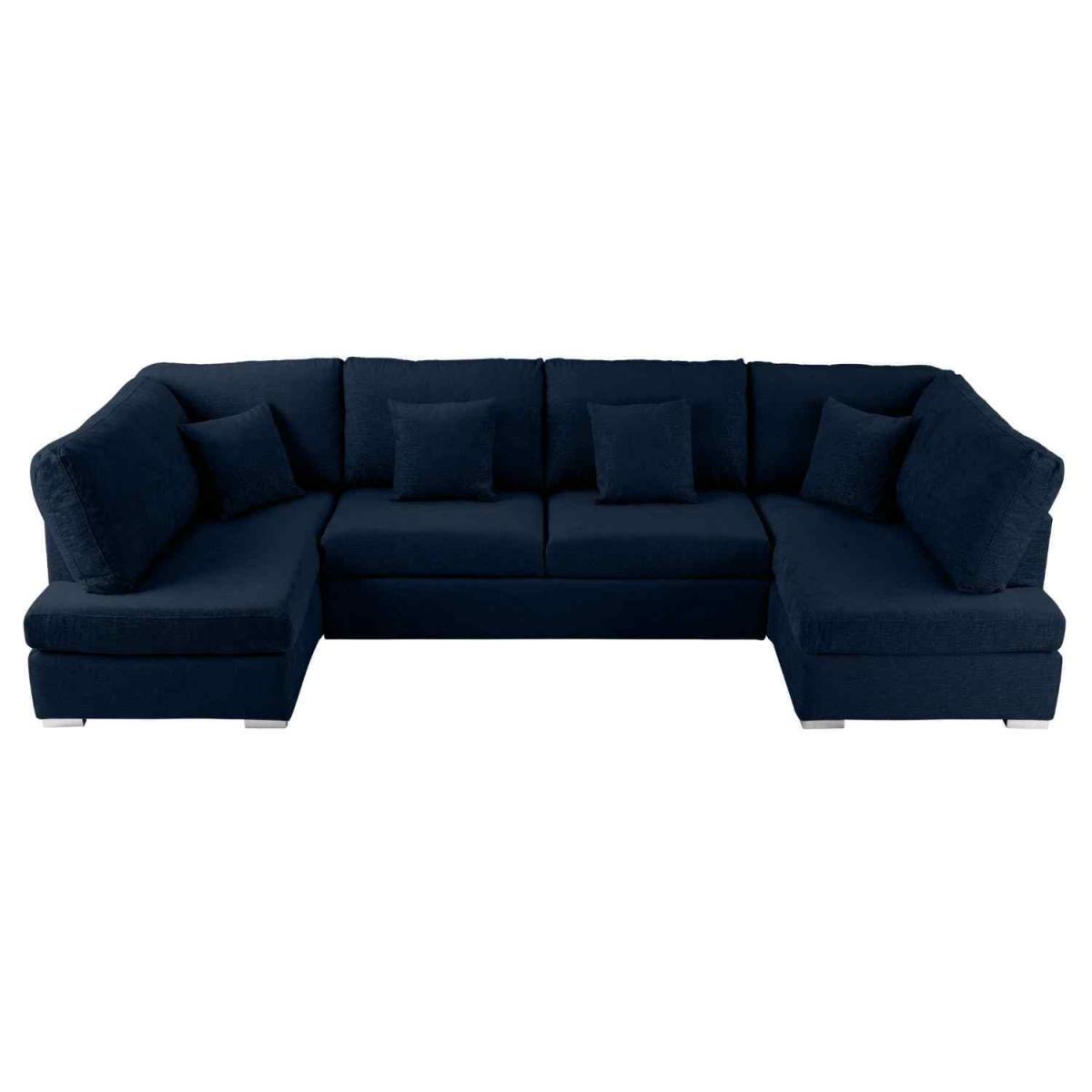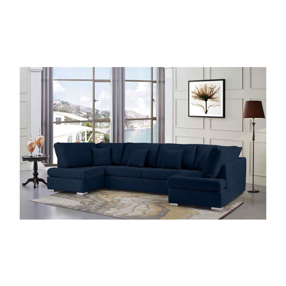 Ollie Large U Shape Sofa Velour Velvet Fabric - Navy