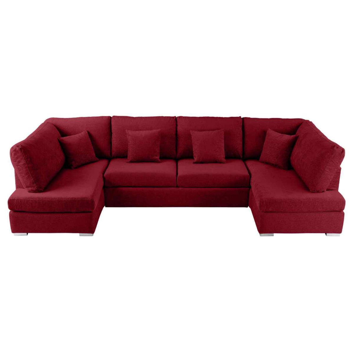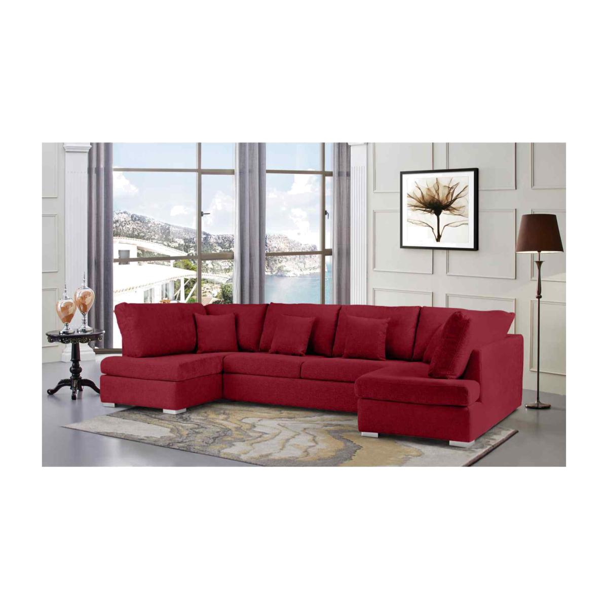 Ollie Large U Shape Sofa Velour Velvet Fabric - Red