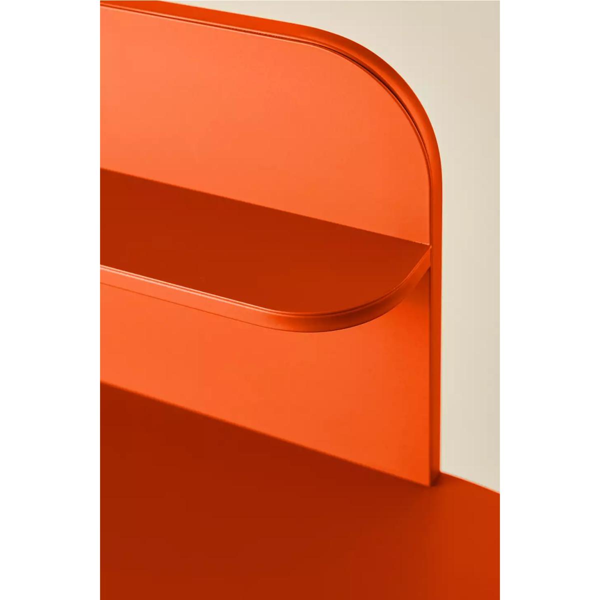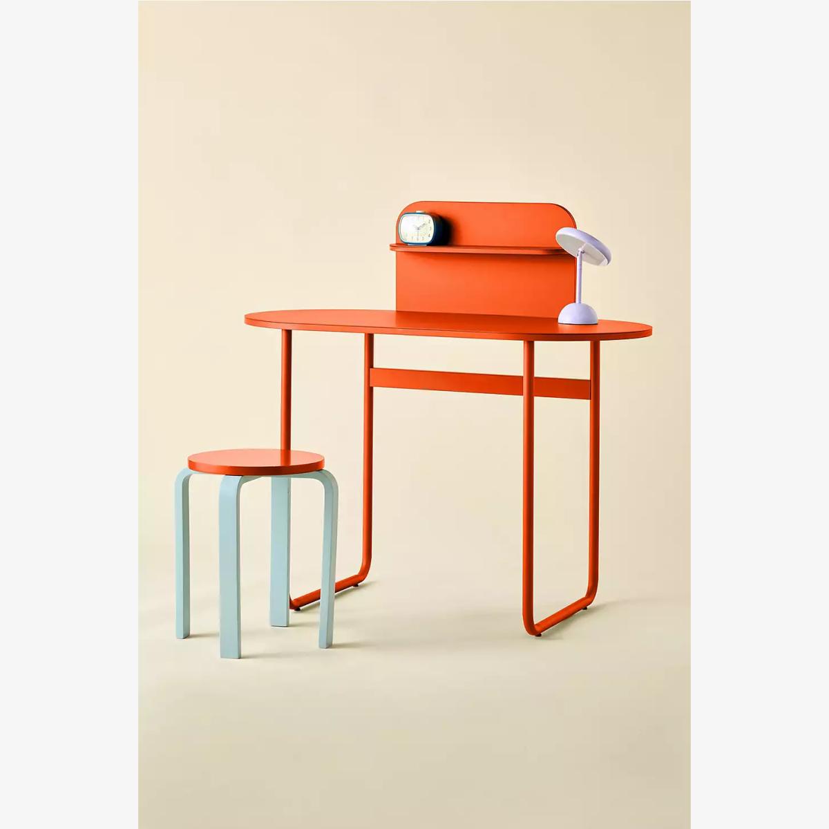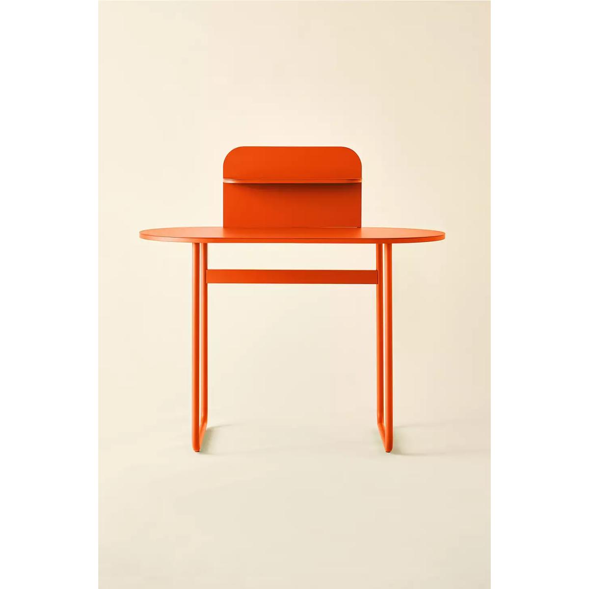 Vibrant orange Ollie desk, perfect for compact spaces. Features a minimalist design crafted from metal with curved lines, a raised back panel for added storage, and slender tubular legs. *Online return only. This item cannot be returned instore. Please note furniture items currently cannot be shipped to Northern Ireland or The Republic of Ireland. Delivery of large furniture items may take 1-2 weeks and are therefore not eligible for Next Day Delivery.* **Content + Care** \- 100% Iron \- Wipe clean **Size** \- Product dimensions: L : 106.7cm x W: 55.92cm x H: 103.9cm \- Shipping dimensions: L: 62.9cm x W: 13.4cm x 116.2cm
