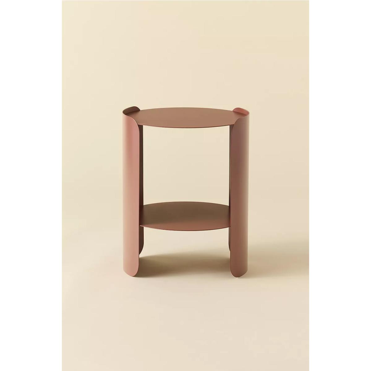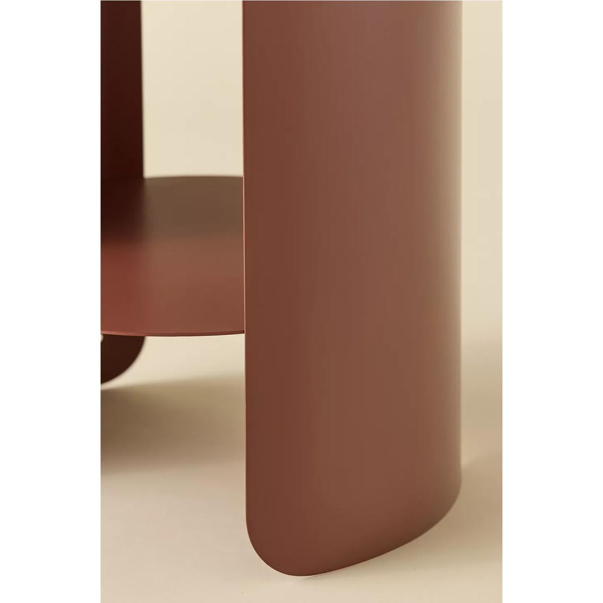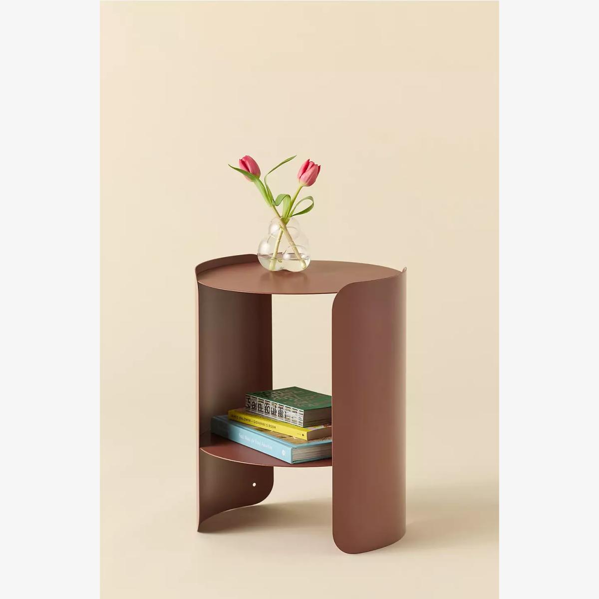 Contemporary side table with curved lines and rounded edges. Crafted from brown metal with an inner shelf, perfect as a contemporary bedside or accent piece. *Online return only. This item cannot be returned instore. Please note furniture items currently cannot be shipped to Northern Ireland or The Republic of Ireland. Delivery of large furniture items may take 1-2 weeks and are therefore not eligible for Next Day Delivery.* **Content + Care** \- 100% Iron \- Wipe clean **Size** \- Dimensions:Dia: 35.6cm x H: 44.7cm \- Leg height: 44.7cm \- Shelf dimensions: L: 24.6cm x H: 27.9cm \- Weight limit: Top shelf: 4kg \- Bottom shelf: 2.5kg \- Weight: 5.17kg \- Shipping package dimensions: L: 40cm x W: 40cm x H: 52.3cm \- Shipping package weight: 8.2 kg