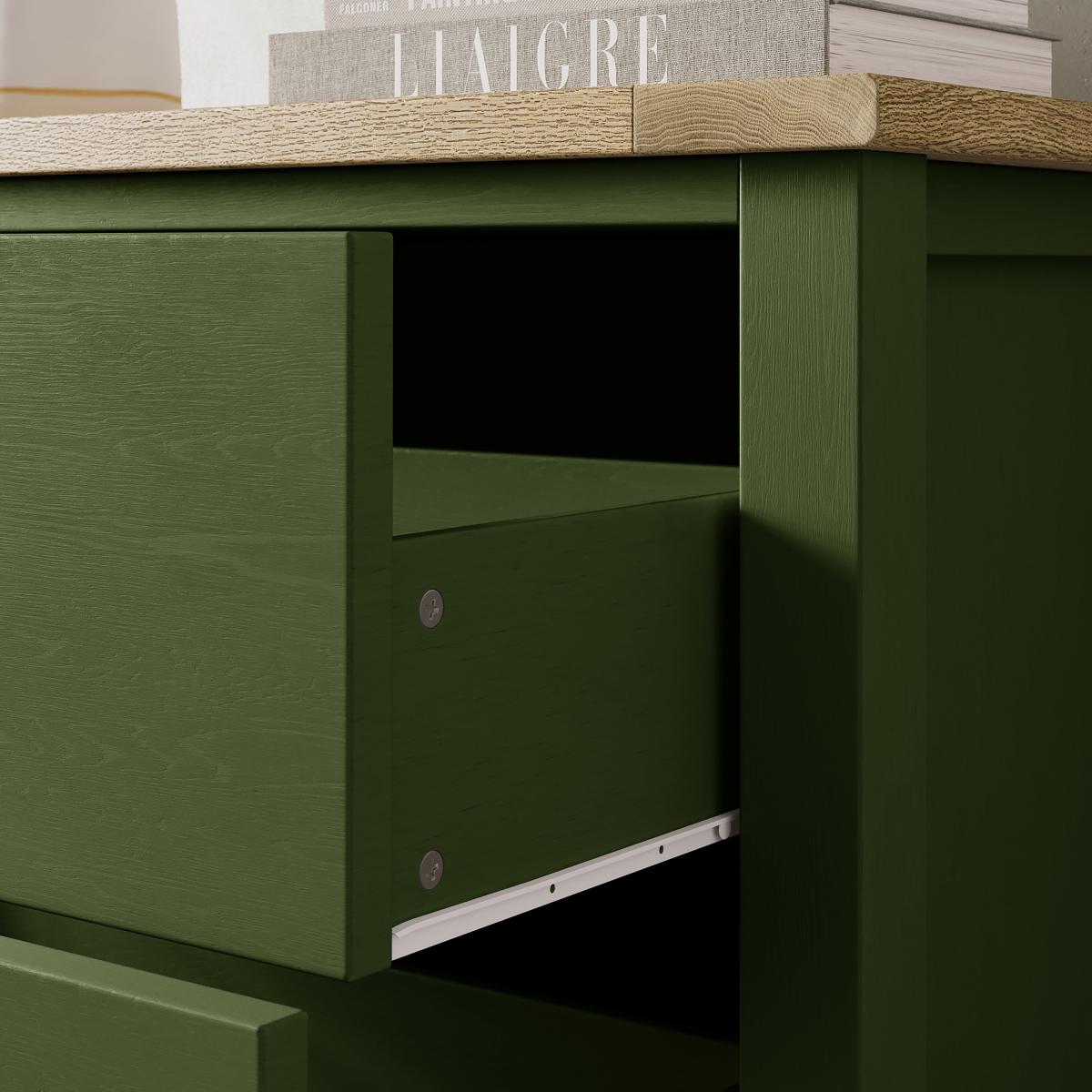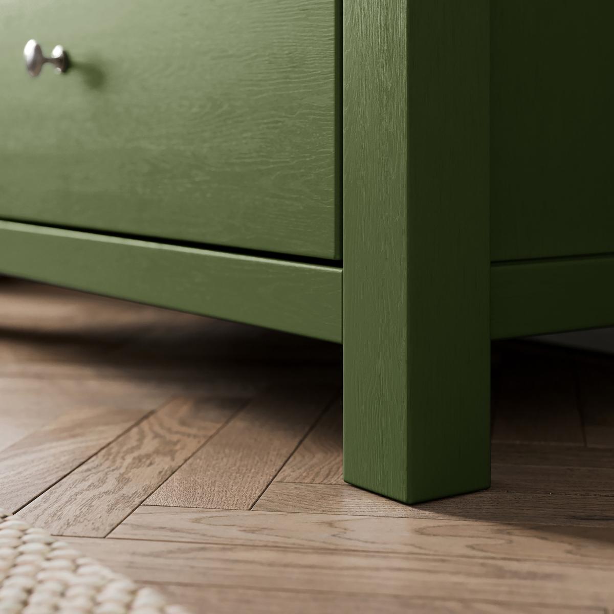 I’m a fan of this olive-green three-drawer chest for its clean lines and muted colour - it brings a subtle pop without overwhelming a room. It works particularly well in Scandi-inspired or modern-farmhouse interiors, pairing easily with natural woods and soft neutrals. Styling tip: keep the top clear except for a low tray or bowl for everyday essentials, then add a small lamp or potted plant to balance height. Inside, use organisers to separate accessories or stationery, and tuck away extra throws or cushions in the lower drawers. A woven basket beside it completes the look and adds extra storage.