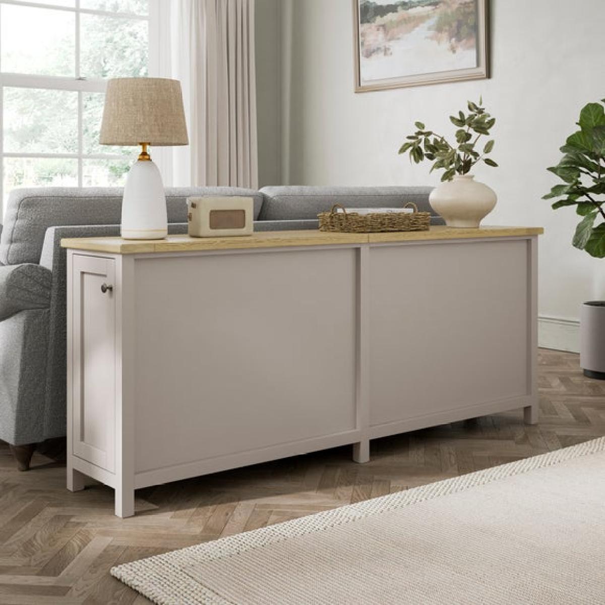 I love this sideboard for its versatile and functional design, making it a great addition to both classic and contemporary interiors. Its neutral tone allows it to blend seamlessly with various colour schemes, while the behind-opening doors add a sleek, clutter-free look. It works well in living rooms or hallways for storage, but can also be styled practically by adding decorative bowls, books, or plants on top. For styling tips, consider pairing it with a statement lamp, art piece, or greenery to create visual interest and personalise your space. Its understated elegance makes it a reliable choice for enhancing both storage and aesthetic appeal in any room.