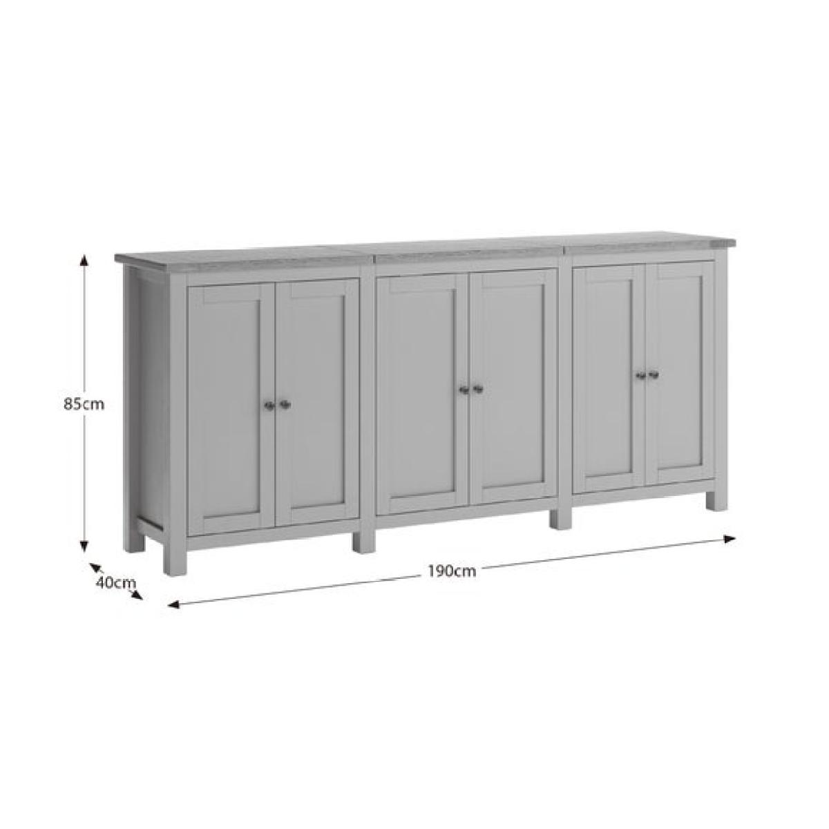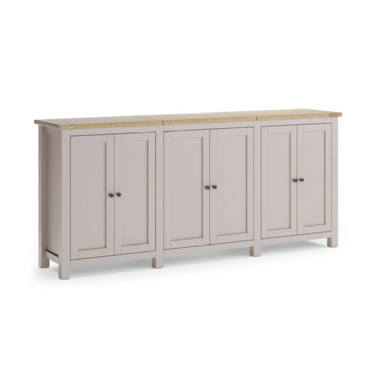 I really like this sideboard desk because of its versatile, spacious design and neutral tone, making it a great piece for various interior styles. It works particularly well in modern, Scandi-inspired spaces due to its clean lines and understated elegance, but can also be styled to suit more rustic or traditional schemes with the right accessories. Practical styling tips include using the top surface for decorative lamps, plants, or organisational trays, while the storage compartments are ideal for hiding clutter and keeping the space tidy. Pairing it with soft textiles and natural materials can add warmth, or contrast it with bold colours for a more contemporary feel. This piece’s wide design makes it perfect for home offices, dining rooms, or even as a statement sideboard in a living area.