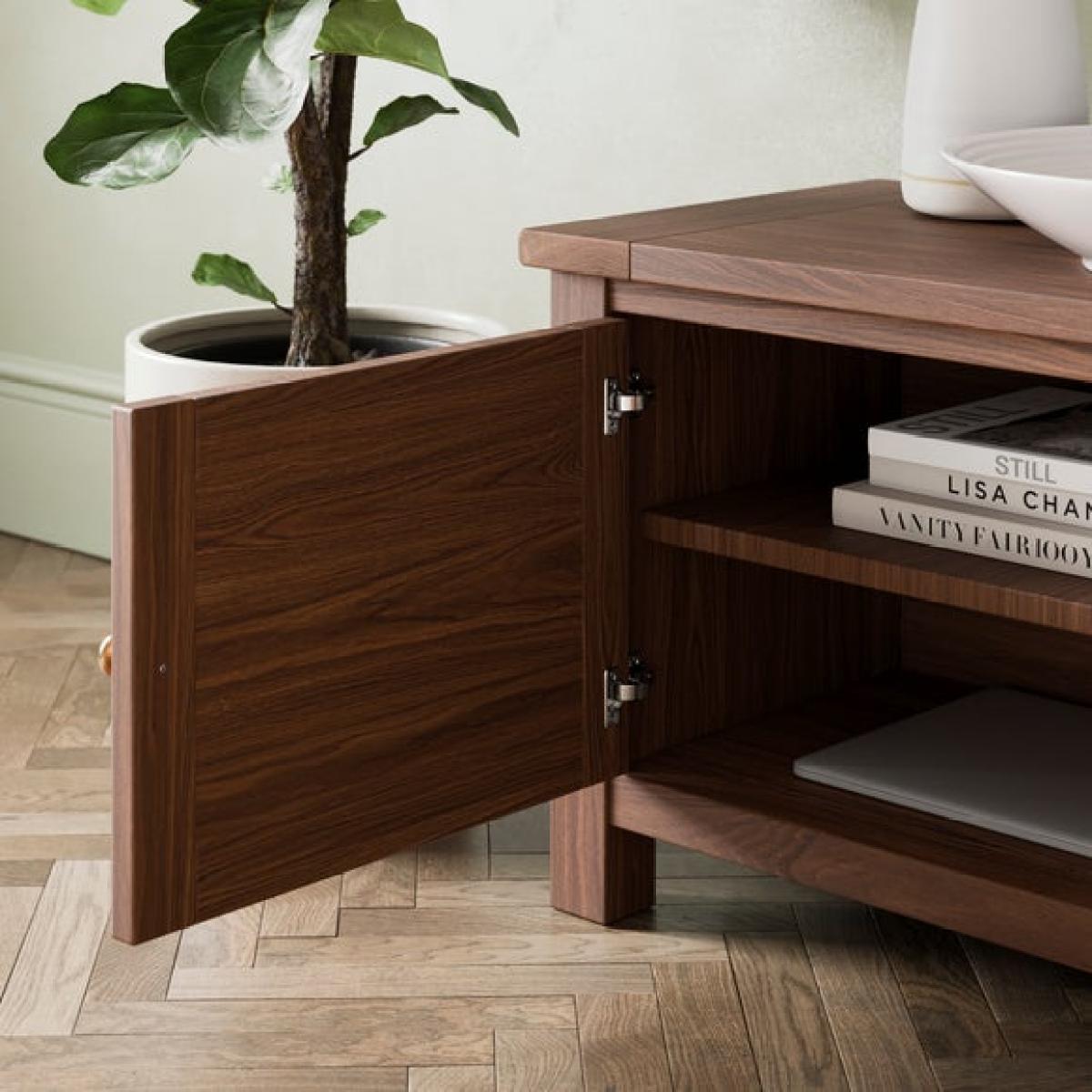 The Olney is a fantastic choice for those looking for a practical yet stylish media piece. Its wide, low profile lends itself well to contemporary, Scandinavian, or even rustic interiors, offering plenty of storage for media equipment and accessories without dominating the space. I love pairing it with minimalist decor to keep the look sleek, but it also works well styled with decorative trays, vases, or books to add personality. For practical styling tips, consider layering your tech with some subtle decorative items on top, ensuring cords are kept tidy behind or within the unit. Its neutral, warm wood tone makes it versatile across various colour schemes, making it a great foundation for creating a balanced and inviting living room.