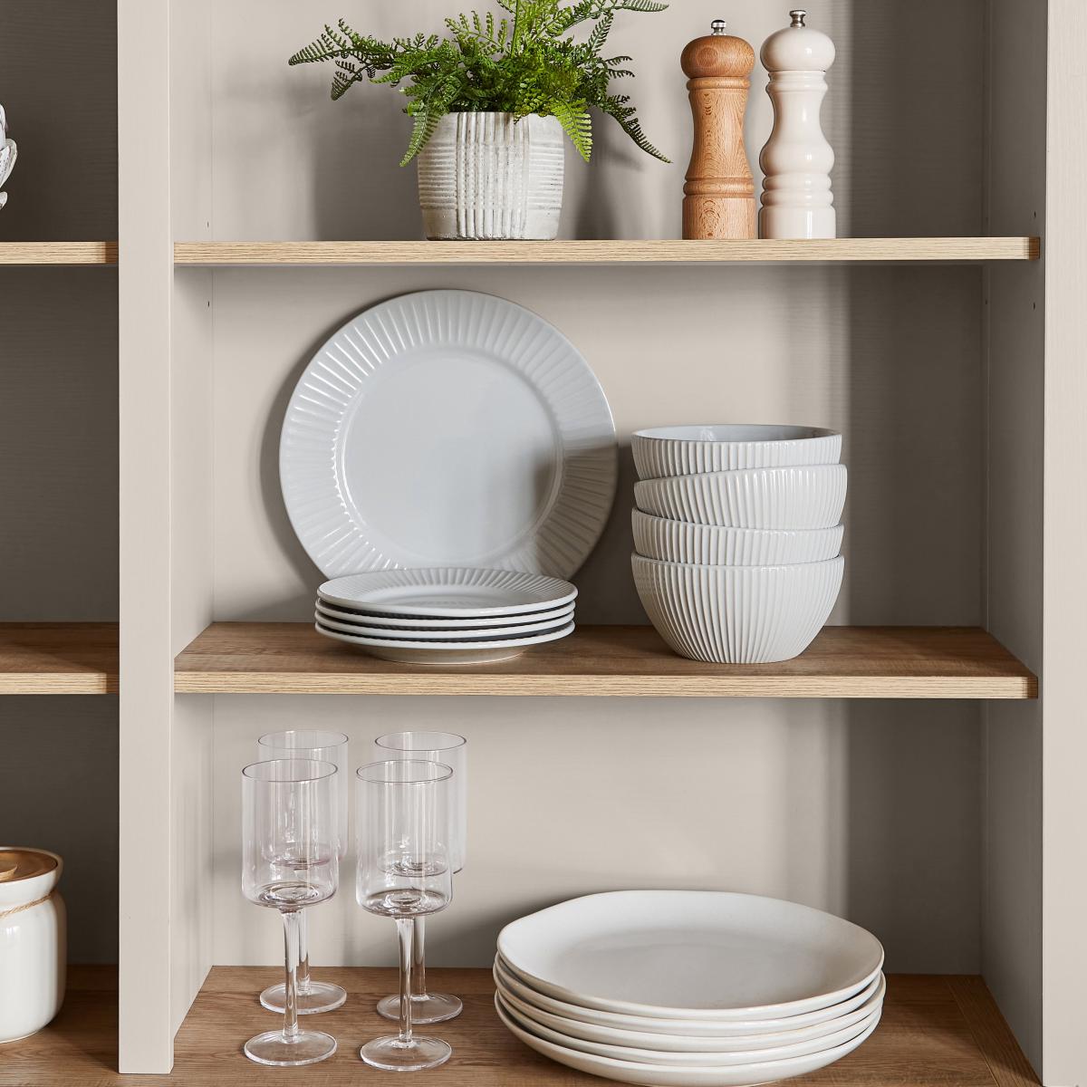 The Olney Kitchen Dresser offers a versatile and practical addition to both traditional and modern interiors, thanks to its neutral stone finish that complements a range of colour schemes. I love it for its generous display space, which is perfect for showcasing crockery, glassware, or decorative pieces, while the drawers provide handy storage for smaller items. It works particularly well in country kitchens or cosy dining rooms, but can also add a charming touch to more contemporary spaces. To style it effectively, consider grouping items in neutral tones with occasional natural accents, and keep the top looking tidy with a mix of functional and decorative pieces. Using baskets or boxes on the lower shelves is a practical way to hide clutter while maintaining a clean aesthetic.