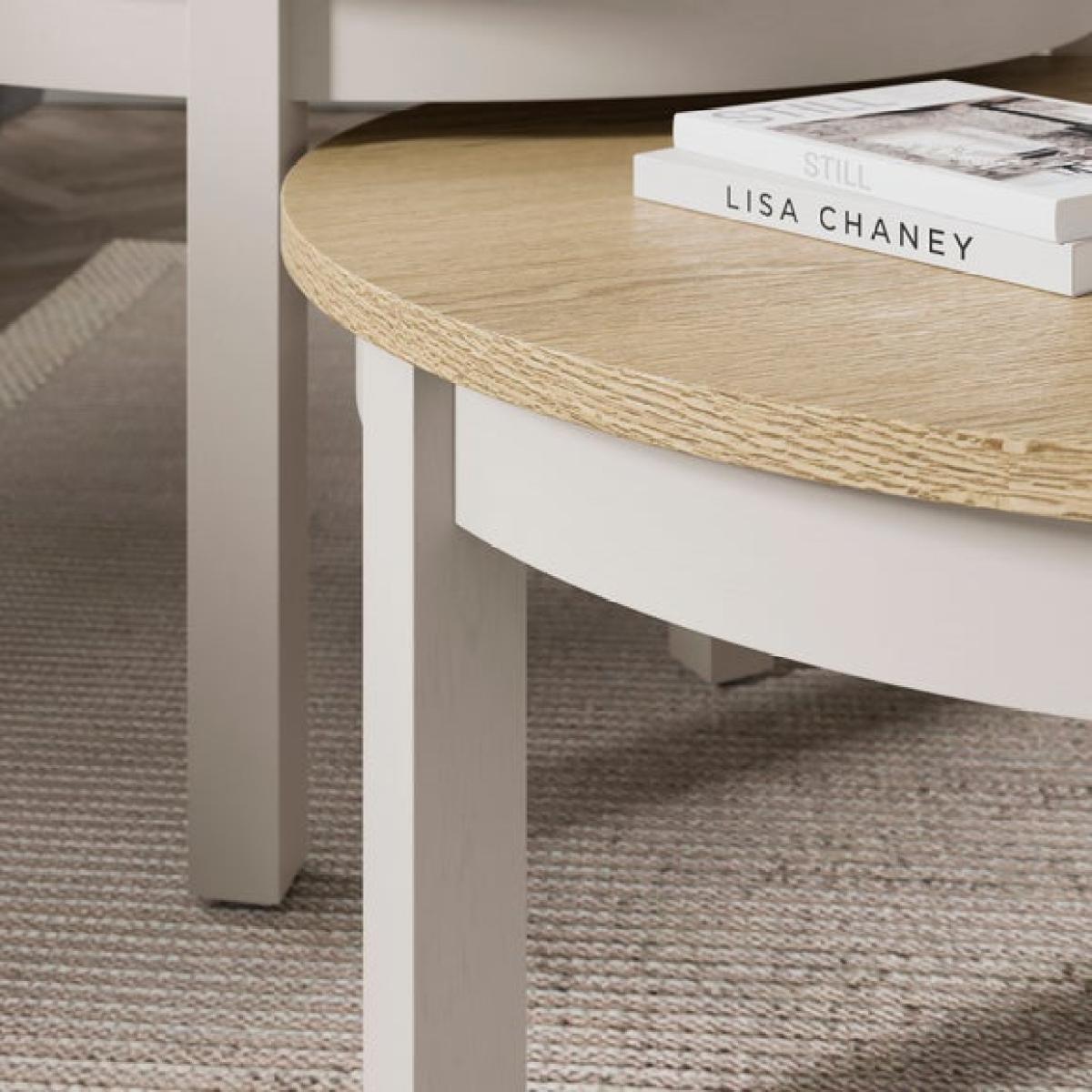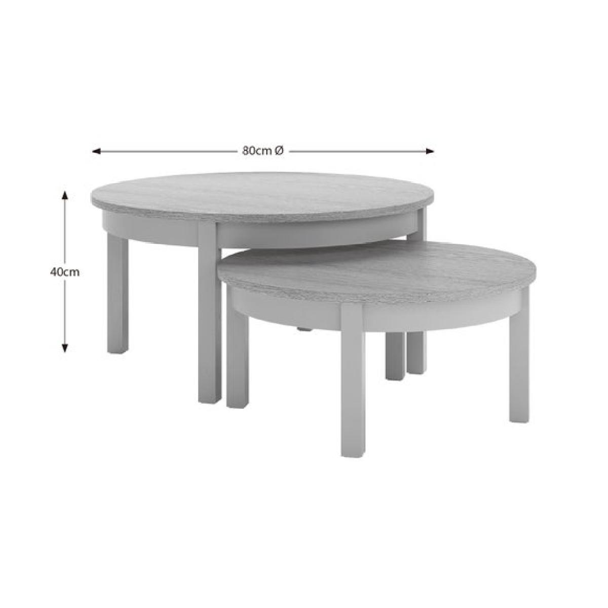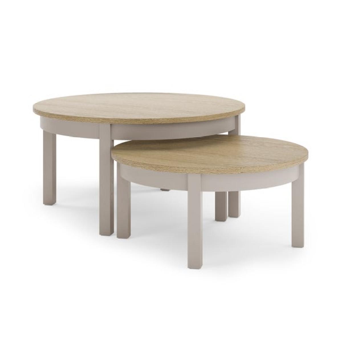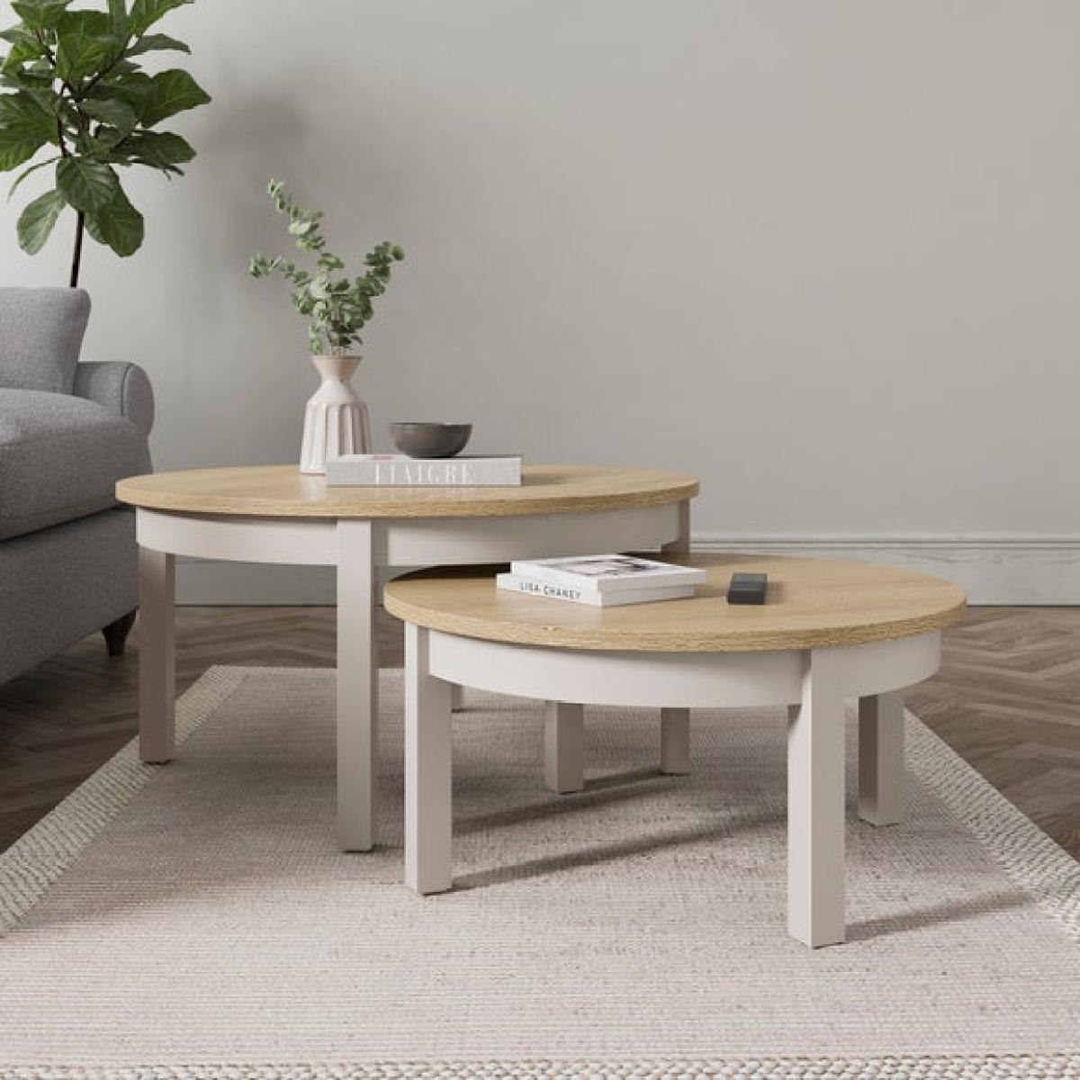 * Set of 2 coffee tables * Nesting for space saving * Wooden frames * Painted finish The Olney nest of coffee tables offers a practical and stylish solution for flexible living. This set of nesting tables features a clean, rounded design that’s easy to style in any room. Use them together for a layered look or separate them when you need extra surface space for drinks, snacks, or décor. When not in use, the smaller table tucks neatly underneath, saving valuable floor space.
