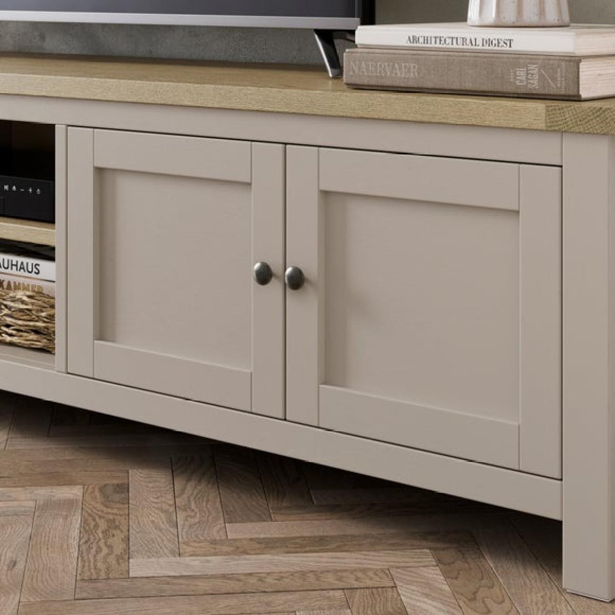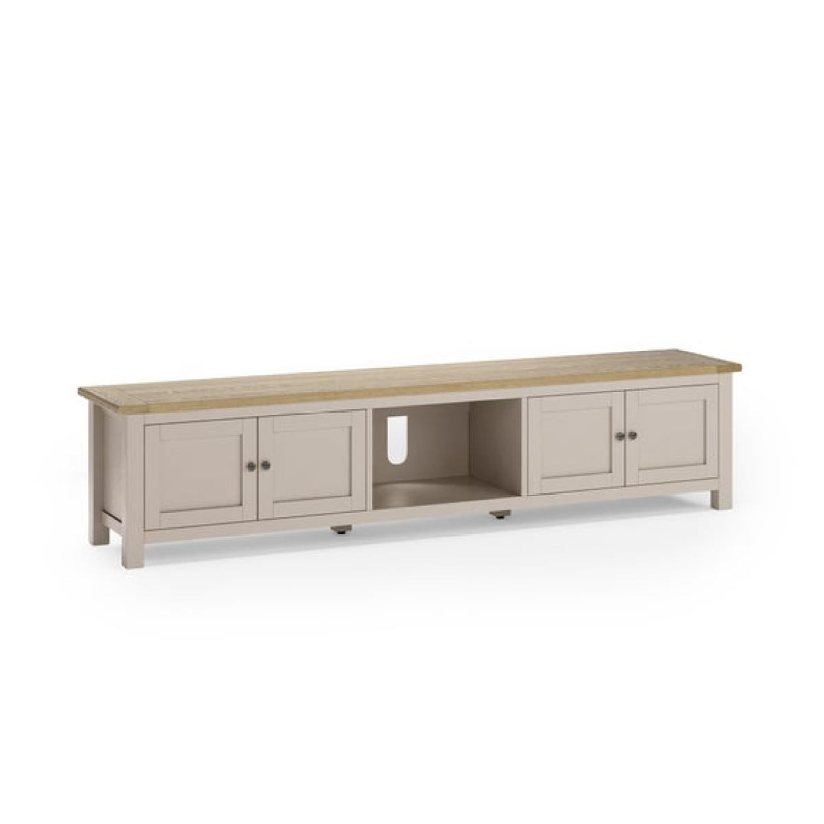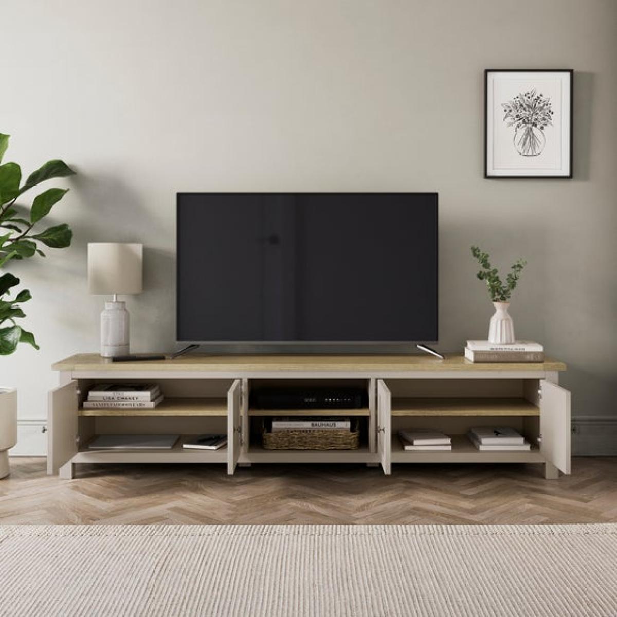 I really like the Olney superwide TV unit for its versatility and its neutral tone, which makes it a flexible piece for various interiors. It works particularly well in contemporary and Scandi-style spaces, adding a subtle touch of elegance without overpowering the room. For styling, I’d recommend keeping the top surface relatively uncluttered-perhaps a statement lamp or a few decorative books-to maintain a balanced look. The open shelf is perfect for storing media devices or baskets, helping to keep cords concealed and the area looking tidy. This unit’s size makes it suitable for larger living rooms or open-plan spaces, but it can also anchor a more compact area if styled thoughtfully with vertical accessories or artwork on the wall above to create visual interest.