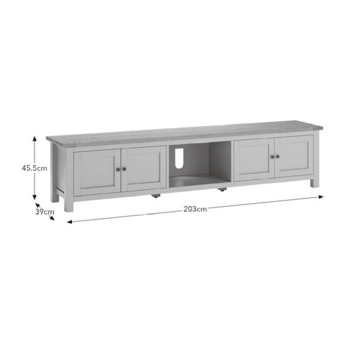 Dunelm Exclusive - Designed and Developed by Dunelm * Wooden TV unit * Brushed Brass Handles * Full Assembly Required The Olney superwide TV unit is a statement piece for any living room. Featuring four doors and a spacious interior, it provides ample storage for media equipment, accessories, and more. Its sturdy construction ensures durability, while the elegant design reflects the signature Olney style.