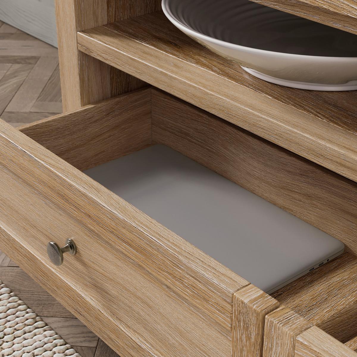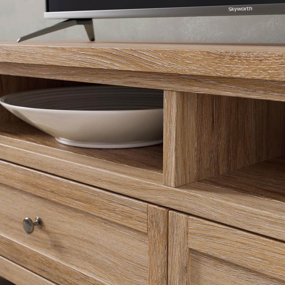 Dunelm Exclusive - Designed and Developed by Dunelm* TV unit* Oak effect finish* Brushed metal brass handles* Shelf and drawer storage* Hole for cable management Get the perfect look for your living room with this stylish TV unit. With its oak effect finish, brushed metal brass handles and shelf and drawer storage, you have everything you need to make entertaining a breeze.