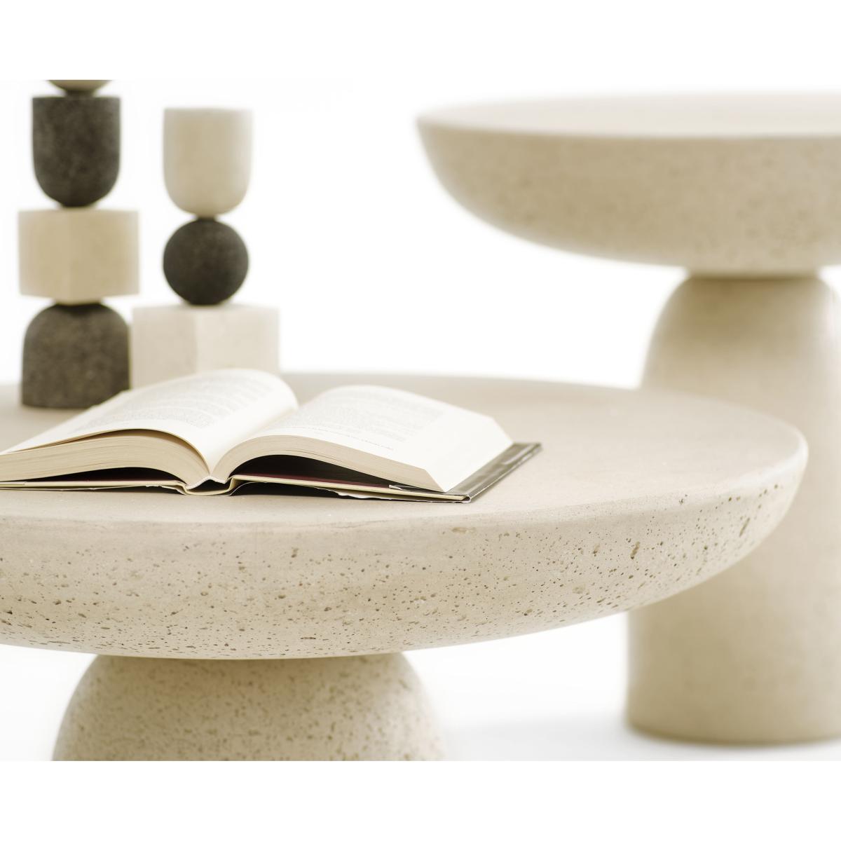 Olo is a family of monolithic Coffee tables in waxed Concrete. This assembly of pure, massive forms is a primitive aesthetic that draws a link between the present and the past. The soft, curved lines create a break with the strict, linear environments that make up our everyday lives. These modern sculptures, essential in their forms, possess maximum expressive power.