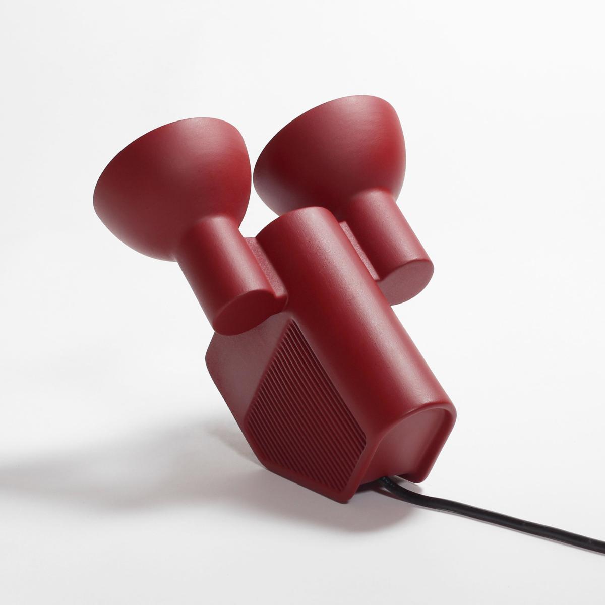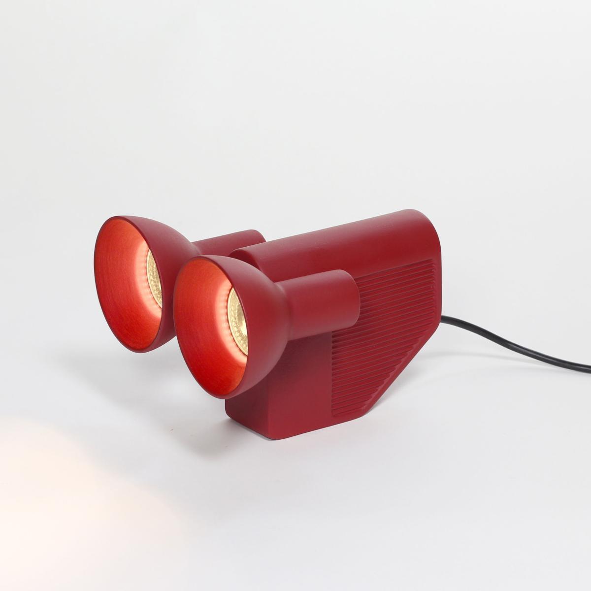 With its two small spotlight like curious eyes watching us, this little lamp attracts attention! Its enigmatic and playful design stimulates our imagination and creates an immediate sympathy!.
