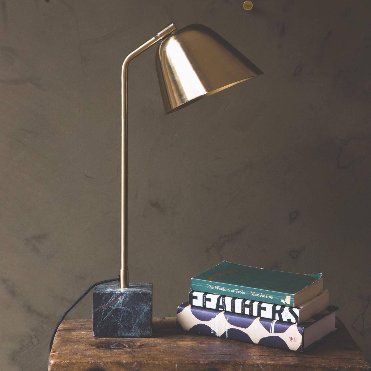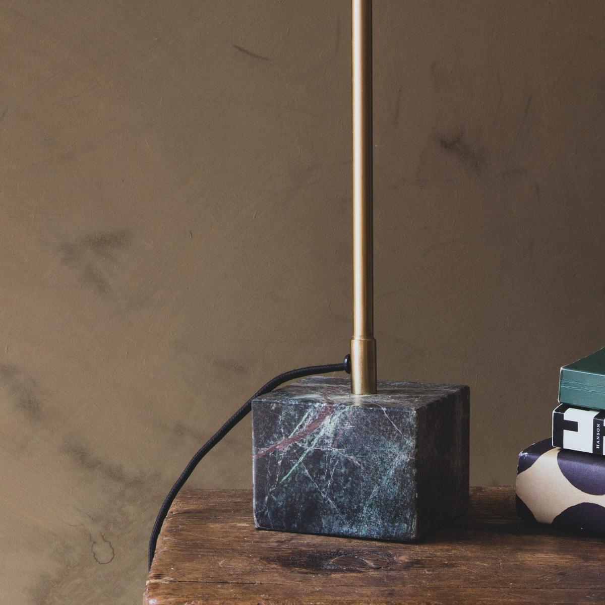 Harmoniously marrying form with function, our Olsen lamps feature a slim brass stand, tapered metal shade and a solid marble base. H54 x W26 x D18cm. Base: H8 x W10 x D10cm. Cord: L195cm. Requires 1 x E14 bulb (not included). Made of iron and marble. Adjustable shade. Features a black fabric cord with in-line switch. Sold individually. Due to the natural properties of marble and handmade nature of this product, the exact colour and finish may vary.