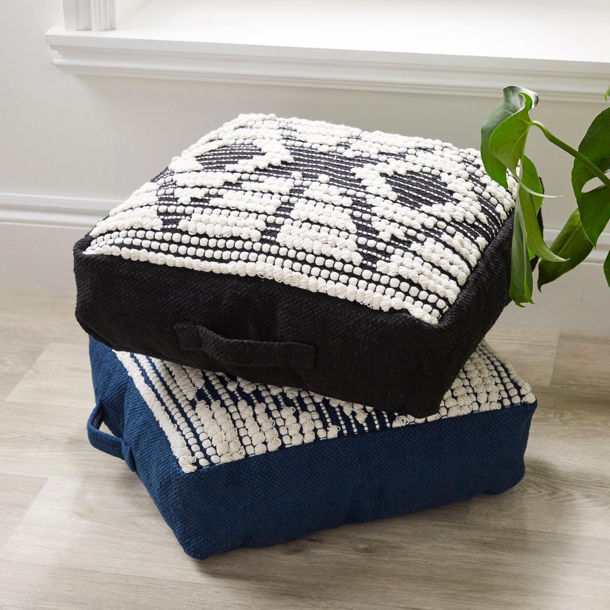 This stylish geometric designed floor cushion with bobble detailing has a woven texture and recycled polyester fibre fill. Made from 100% cotton this floor cushion provides great additional seating and will complement an array of home decors.
