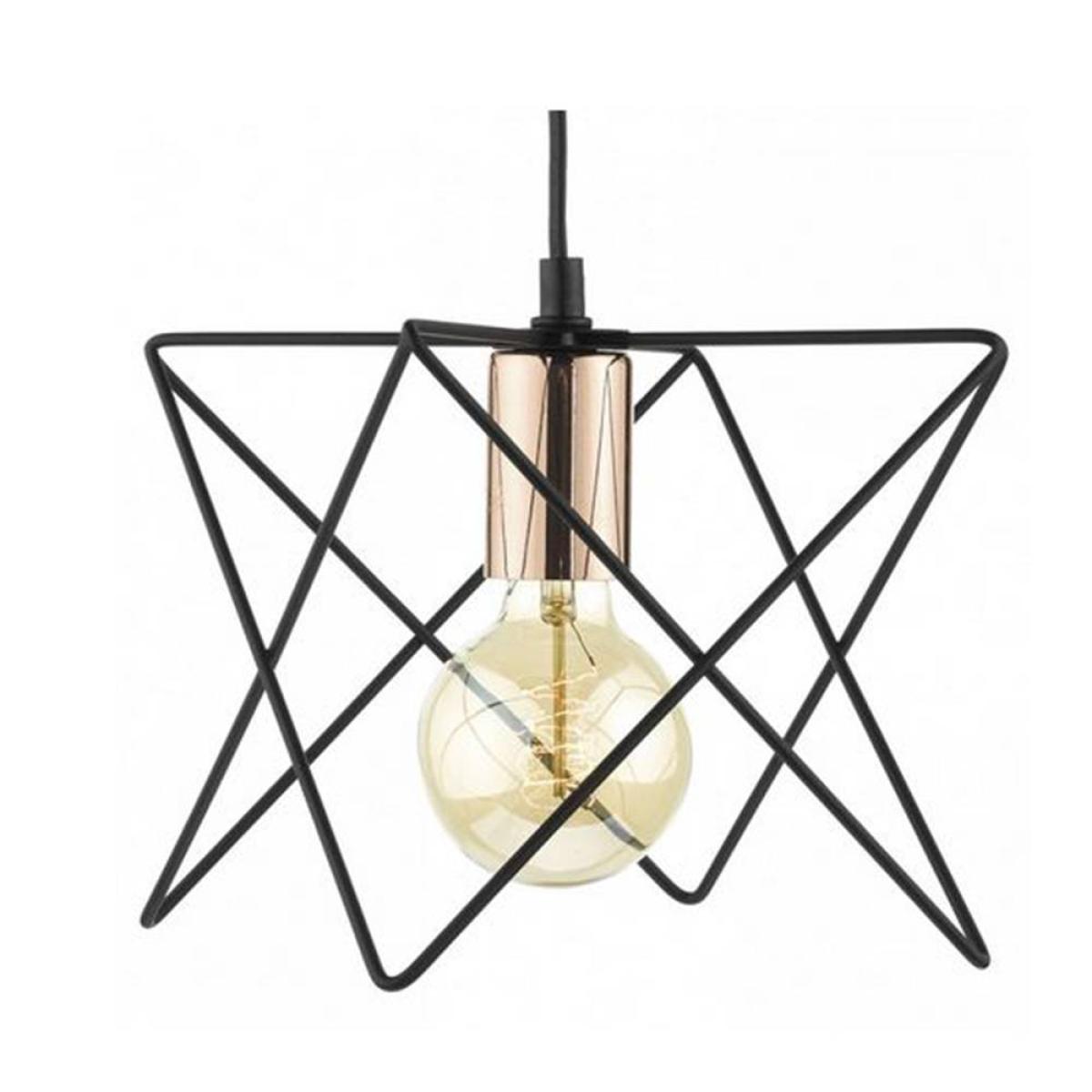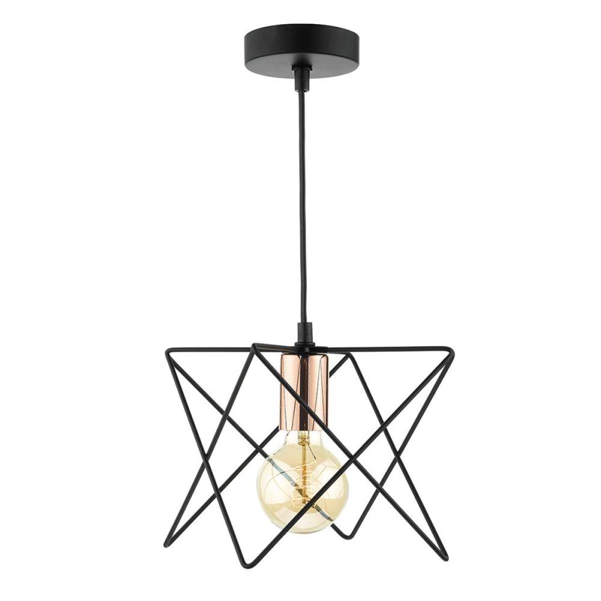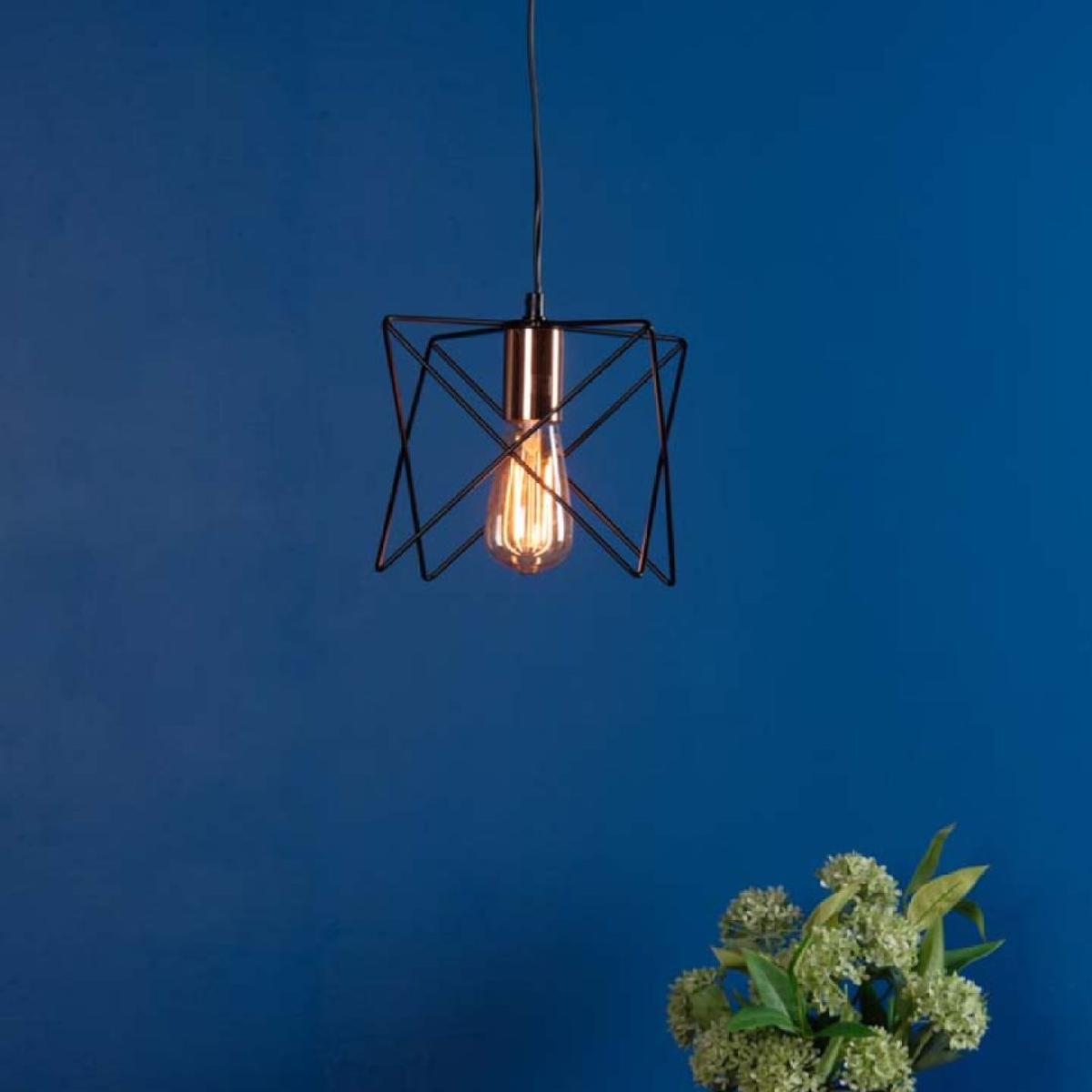 Industrial ceiling pendant boasting a black and copper finish. Add an industrial feel to your home with Olson 1 Ceiling Light from Pagazzi Lighting. This piece is suspended from a round ceiling plate with a gorgeous matt black finish throughout, complemented by copper detailing on the lamp holder. The open metal work frame showcases the decorative light bulb housed within. Height adjustable, it is perfect for use above your dining table, breakfast bar and hallway. Pair this light with our 4w LED Vintage bulbs for a rustic and industrial glow Industrial ceiling pendant boasting a black and copper finish. Add an industrial feel to your home with Olson 1 Ceiling Light from Pagazzi Lighting. This piece is suspended from a round ceiling plate with a gorgeous matt black finish throughout, complemented by copper detailing on the lamp holder. The open metal work frame showcases the decorative light bulb housed within. Height adjustable, it is perfect for use above your dining table, breakfast bar and hallway. Pair this light with our 4w LED Vintage bulbs for a rustic and industrial glow