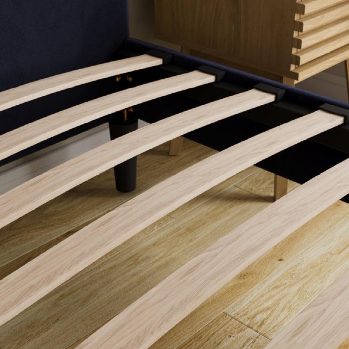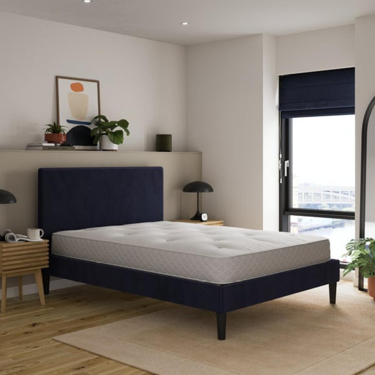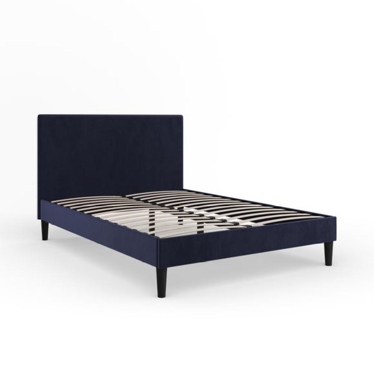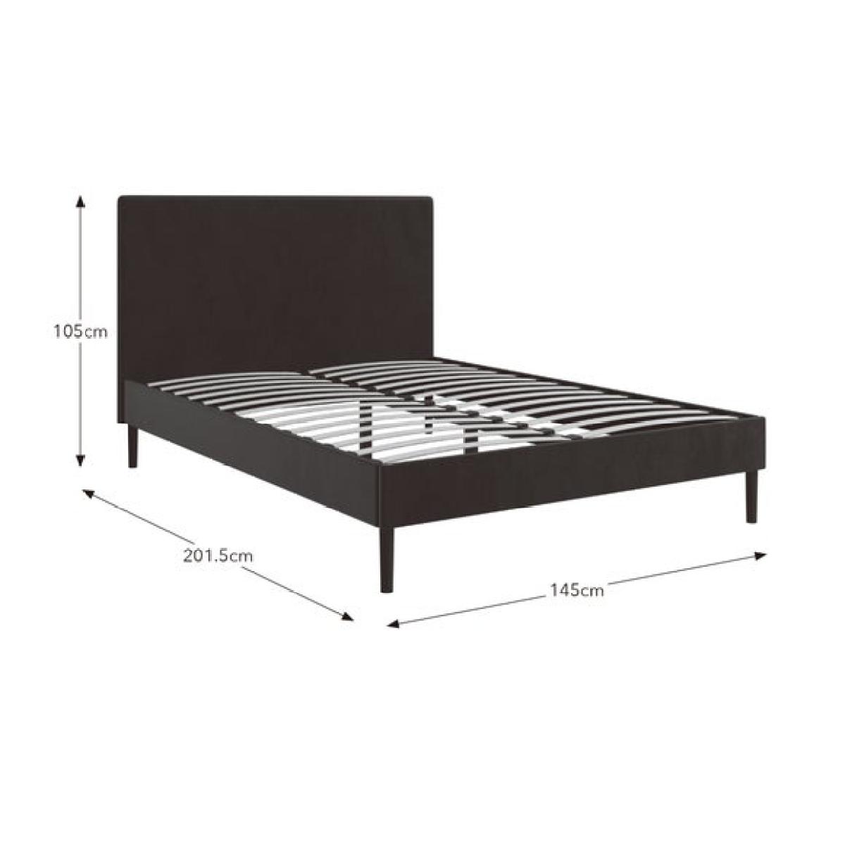 * Soft velvet upholstery * Contemporary headboard with seam detail * Sprung slat base for added support * Finished in a rich single colour The Olton Velvet Bed Frame brings a modern edge to a classic bedroom staple. Its tall headboard features a clean silhouette with subtle standing seam detail for added texture. The plush velvet finish adds a soft touch, while the sprung slat base offers comfort and helps your mattress stay in good shape. Finished in a deep, rich tone that works well across a range of styles. Built with a sturdy frame and smooth lines for a neat look. A practical choice for everyday living.