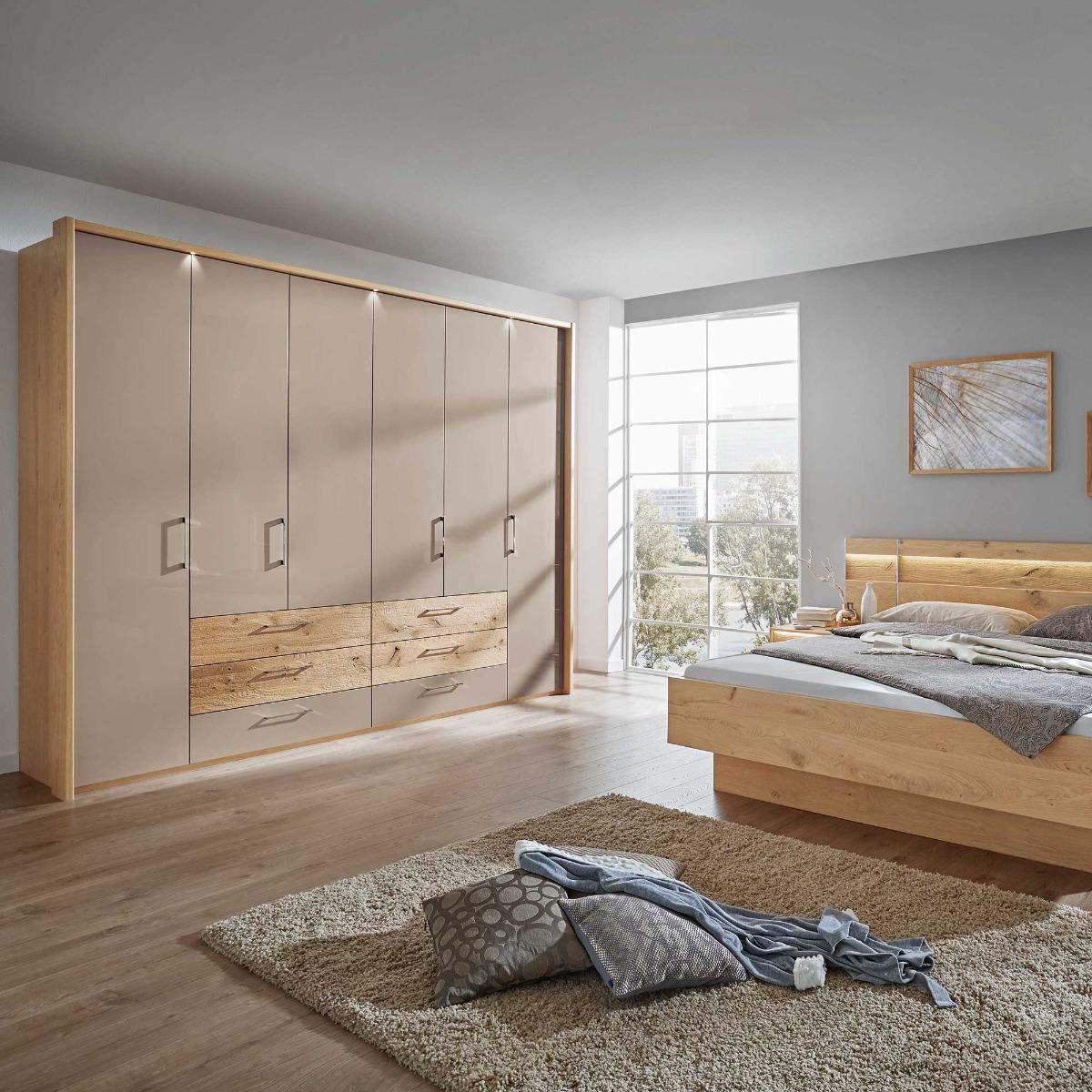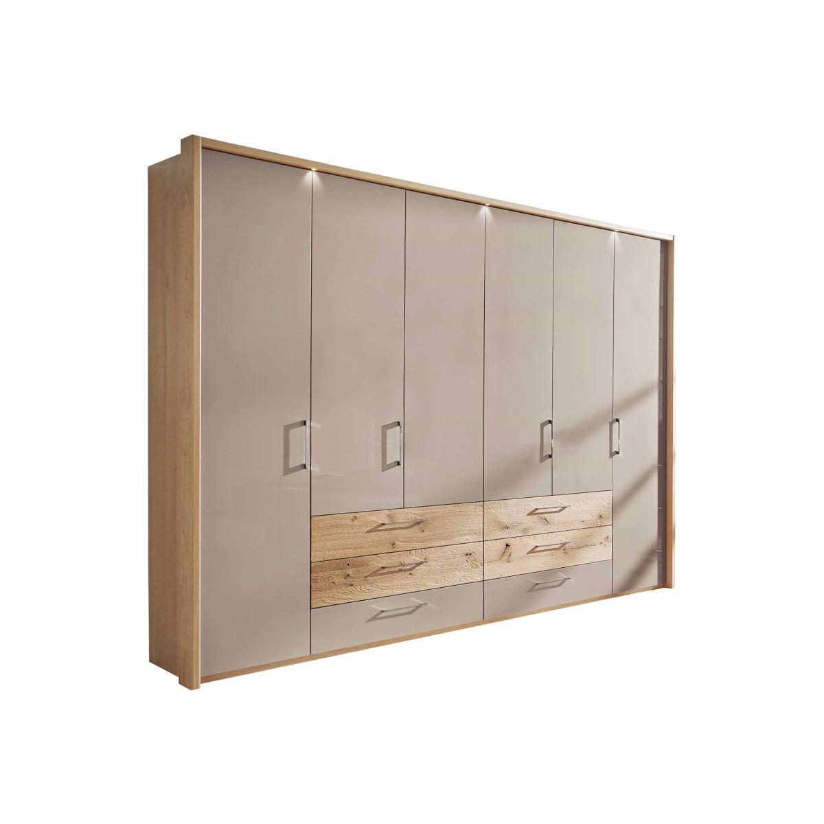 Olvera 6 Door Hinged Wardrobe, Balken Oak and High Gloss Taupe, available online at Barker & Stonehouse. Browse our fabulous range today! Olvera 6 Door Hinged Wardrobe, Taupe Oak Wood | Barker & Stonehouse