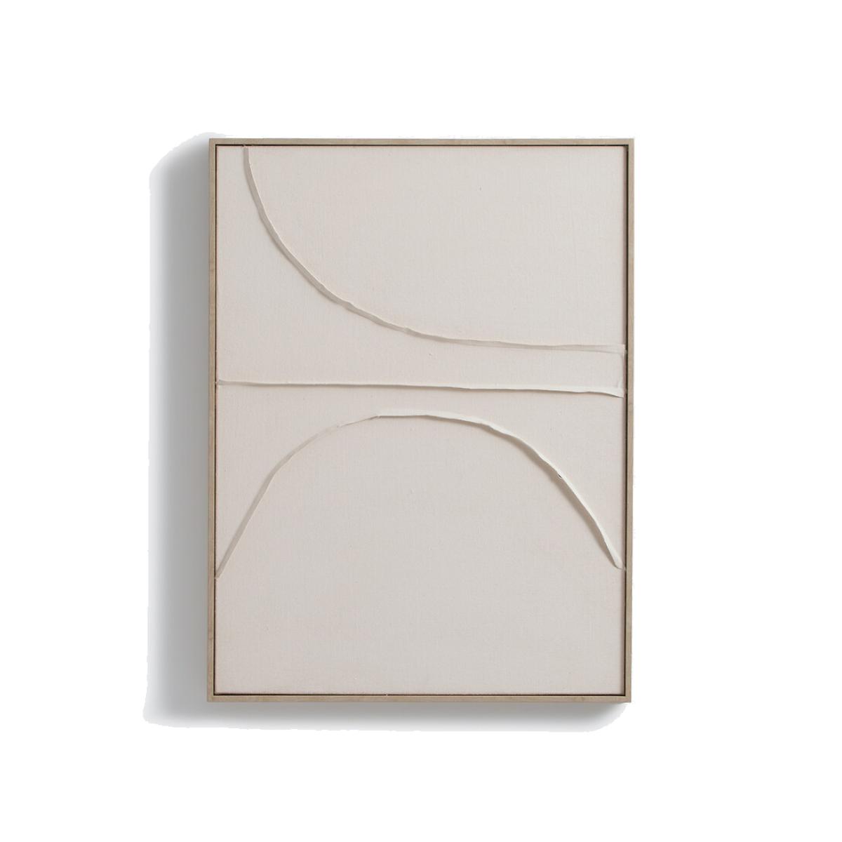 Olymo or the elegance of minimalism. This monochrome linen wall art, with its pure geometric shapes, will add a touch of sophistication to your home. Group several pieces of wall art together to personalise your space. Product Details •  In linen •  Wood-effect polystyrene frame •  Wall fixing (screws and plugs not supplied)Dimensions •  Width: 60cm •  Height: 80cm •  Thickness: 4.5cm/2"Dimensions and weight of parcels •  1 parcel •  L67 x H87 x D6.5cm. 3.2kg.