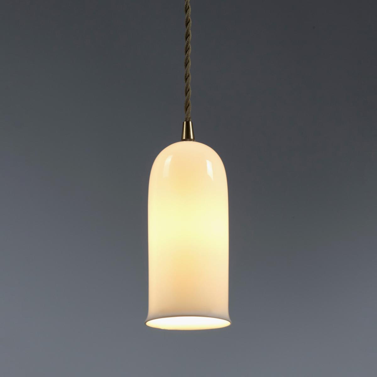 Discover the perfection of craftsmanship in the Olympia Pendant by Antwerp ceramist Anita Le Grelle. Ultra-fine Flecked China sublimates timeless forms. Stylish detail: the twisted cable in Gold fabric and the brass cable clamp add a refined retro dimension to these Pendant lights. Translucent Ceramic provides concentrated, diffused, warm light.