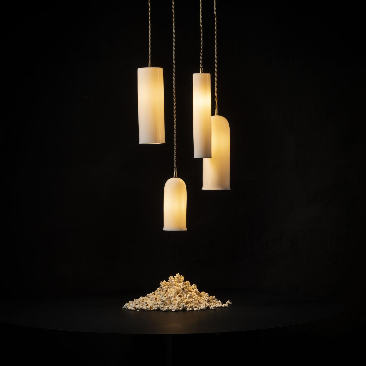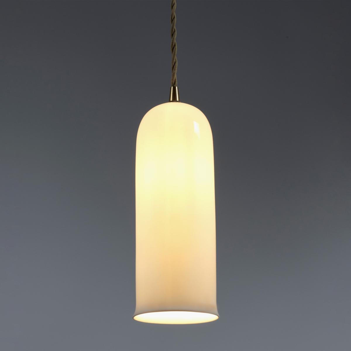 Discover the perfection of craftsmanship in the Olympia Pendant by Antwerp ceramist Anita Le Grelle. Ultra-fine Flecked China sublimates timeless forms. Stylish detail: the twisted cable in Gold fabric and the brass cable clamp add a refined retro dimension to these Pendant lights. Translucent Ceramic provides concentrated, diffused, warm light.